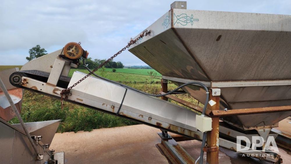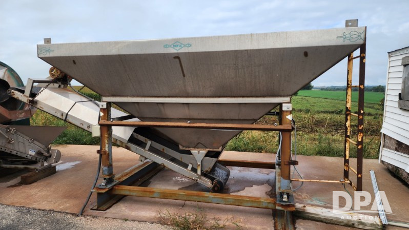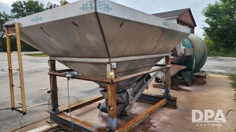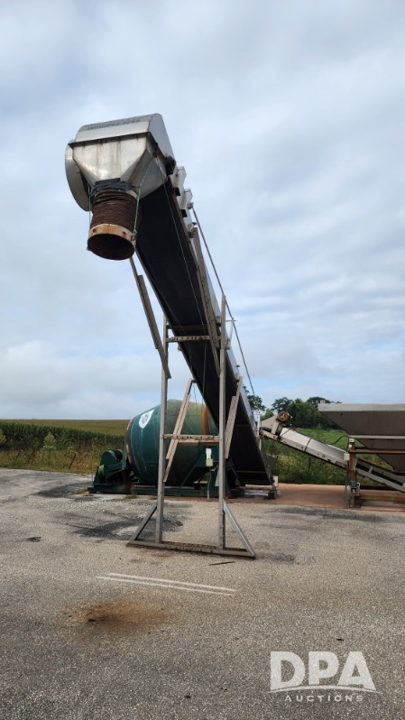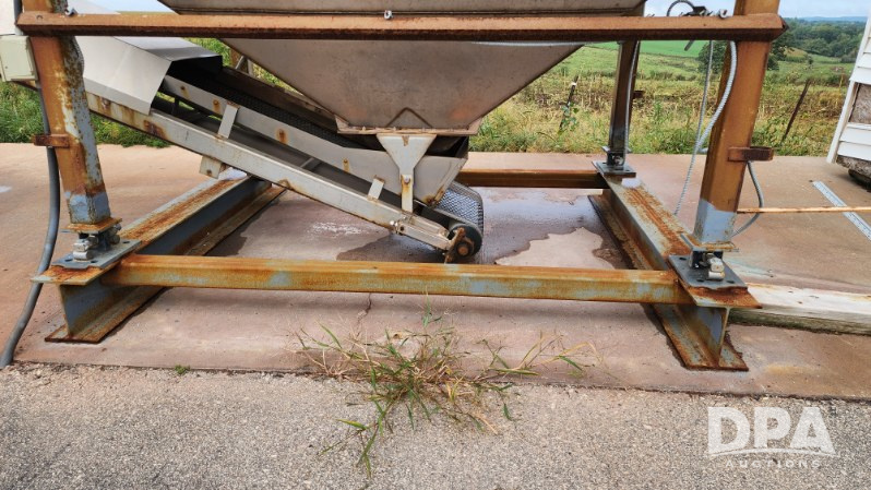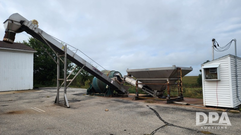 Fertilizer Blending System (CG406), 6 ton Doyle hopper with 24in belt conveyor, 5 ton stainless steel barrel, Adams load out conveyor 30x24.
