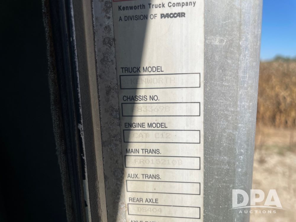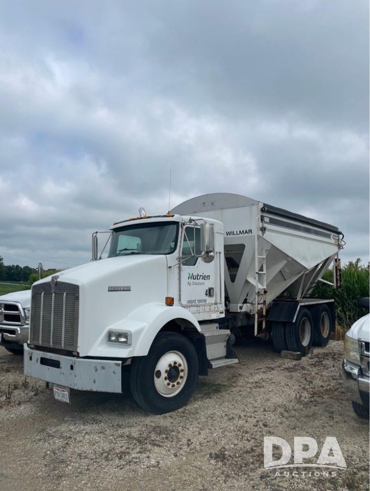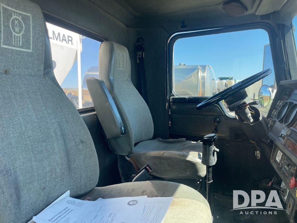 1999 Kenworth T800 Dry Tender Truck (PZ13930, Unit 01106), Cat C-12 diesel engine, Eaton Fuller 10 speed transmission, air conditioning, heat, Am/Fm CD radio, engine brake, tandem axle, full screw, air ride suspension, Willmar 16 ton dry tender box, rear discharge auger, all hydraulic, roll over tarp, 11R24.5 tires, shows 515,825 miles.
