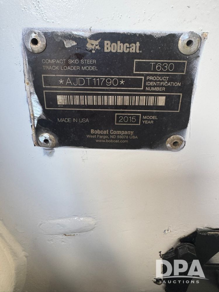 2015 Bobcat T-630 (CG407), diesel engine, 74 horsepower, joystick hand controls, front hydraulics, shows 1,959 hours.