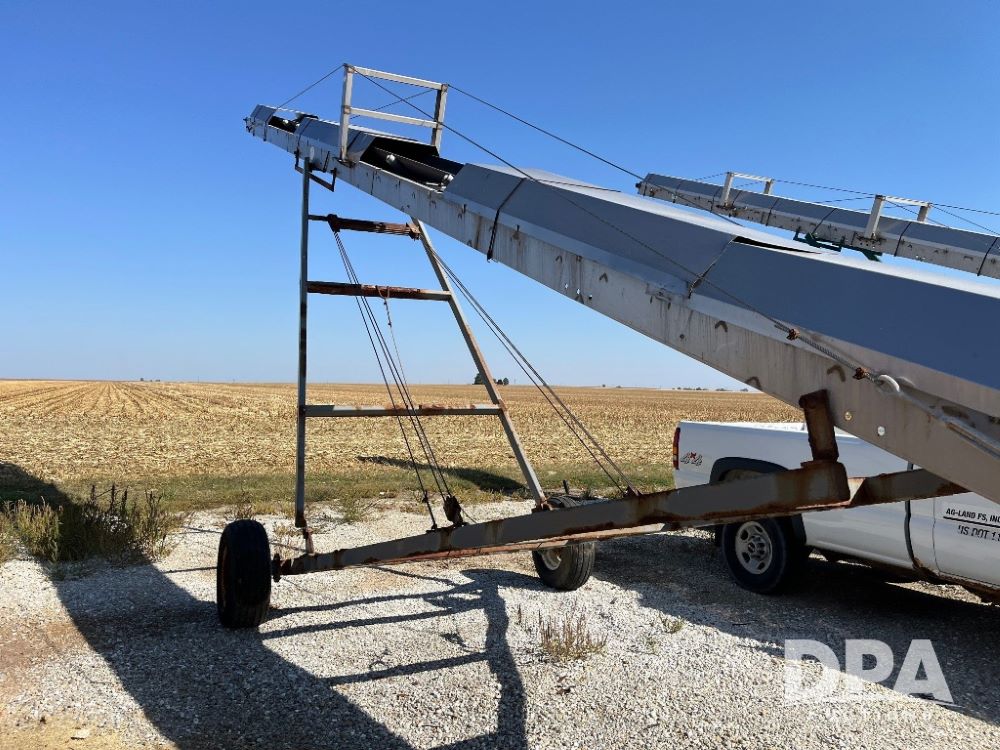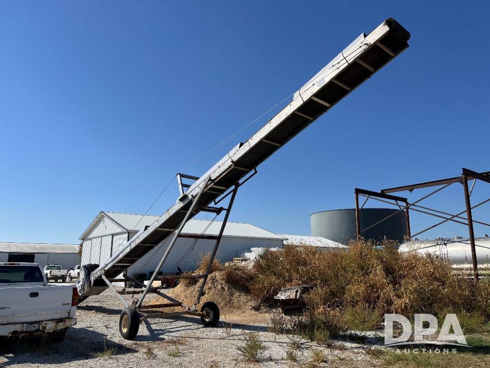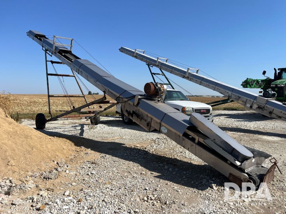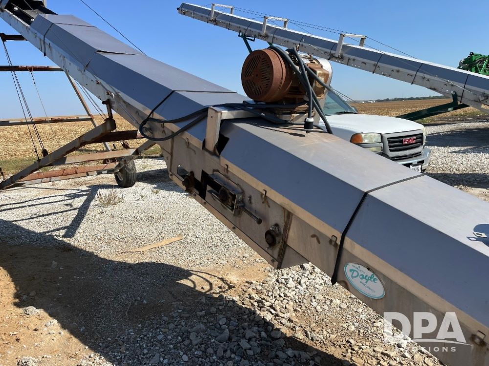 2009 Doyle Dry Conveyor (JN3127), 2009 Doyle stainless steel dry belt conveyor, Toshiba 15 hp electric motor, cord, portable, 11L-15 flotation tires.
