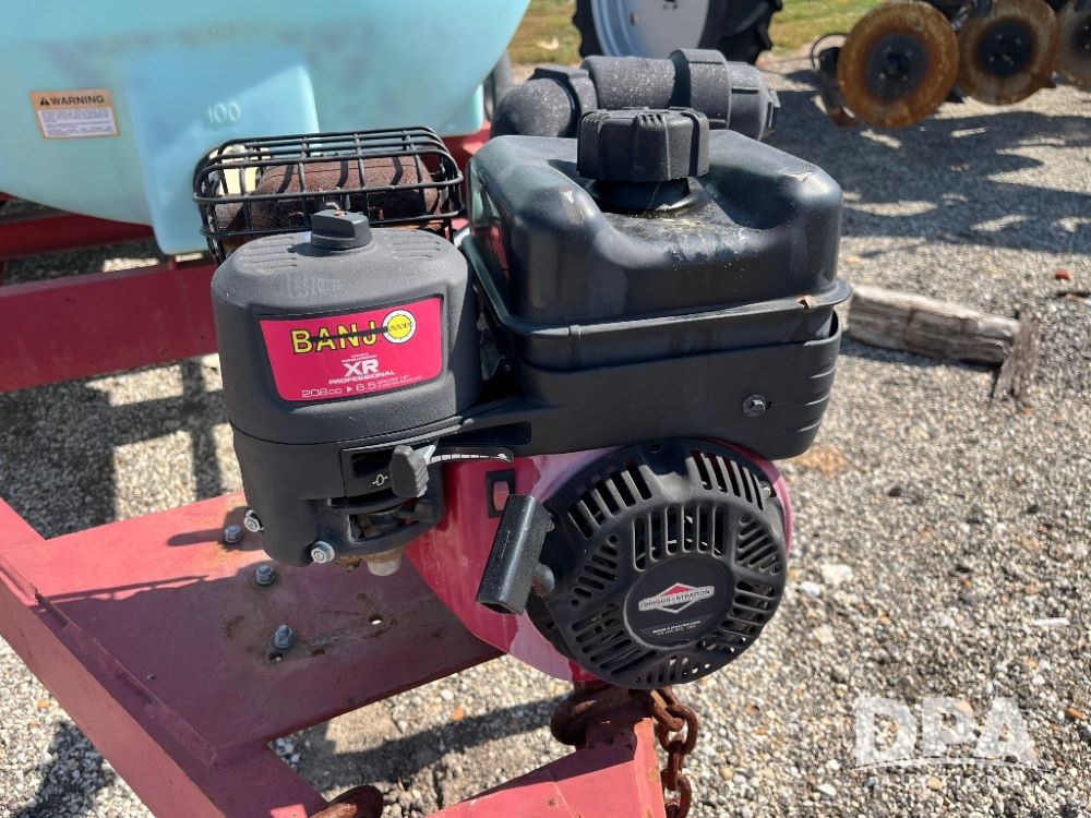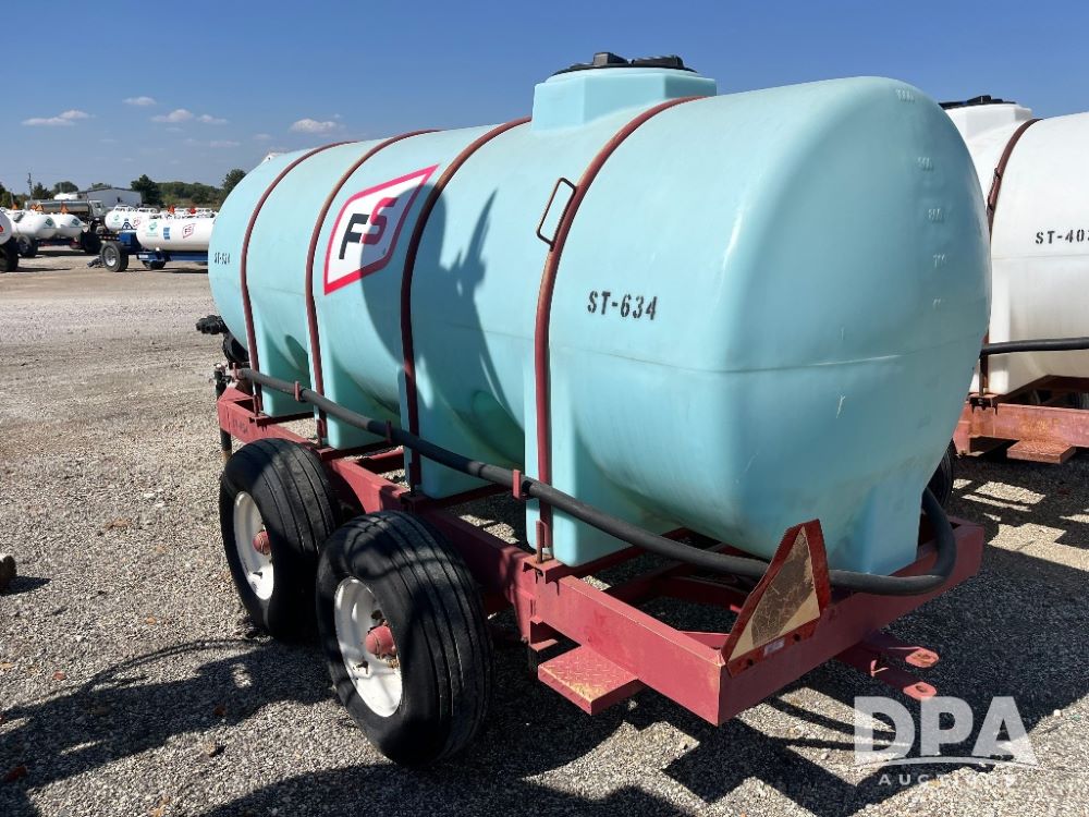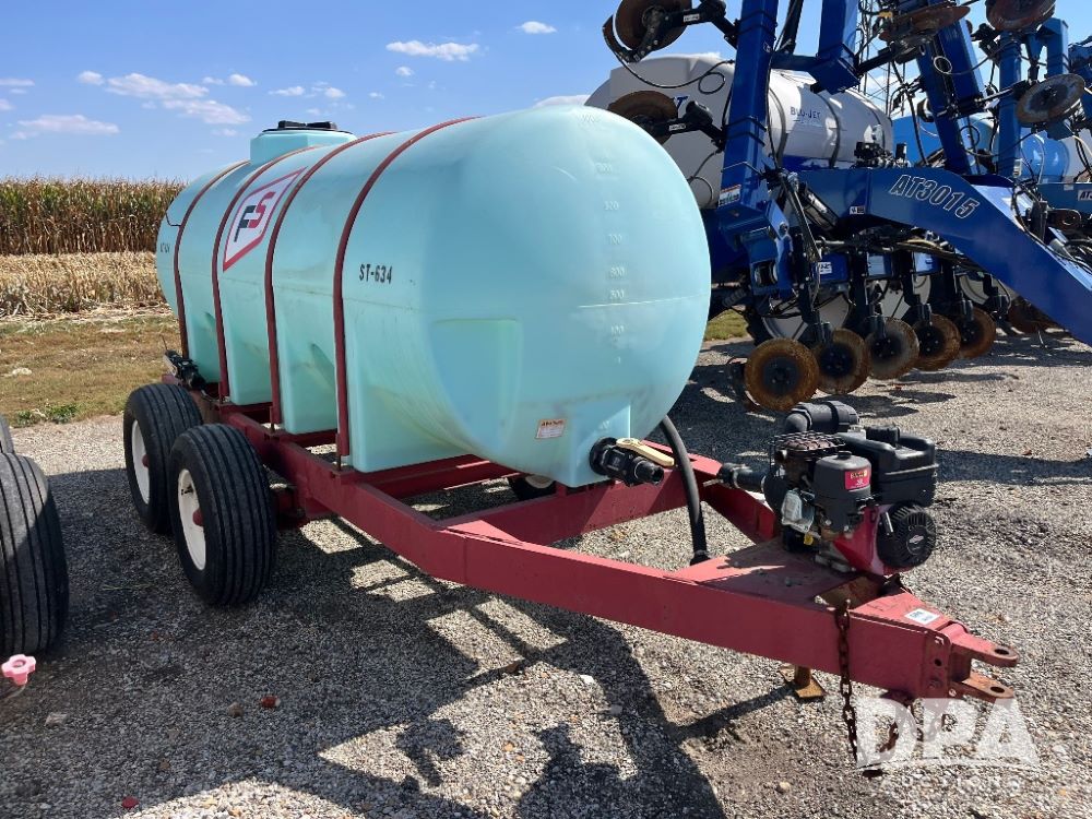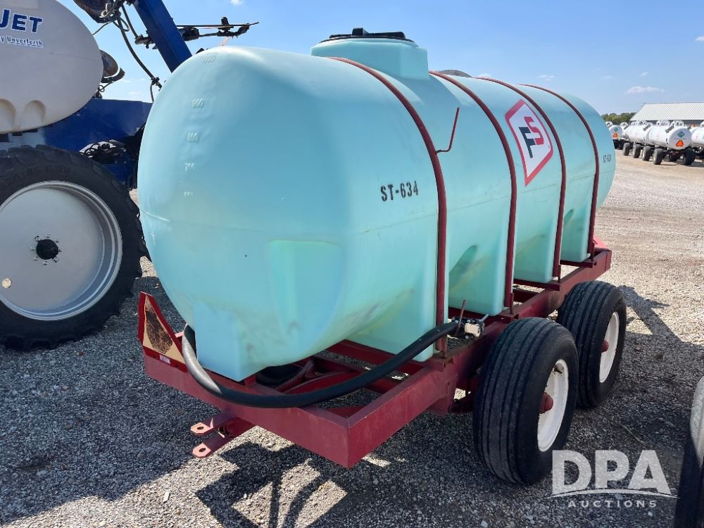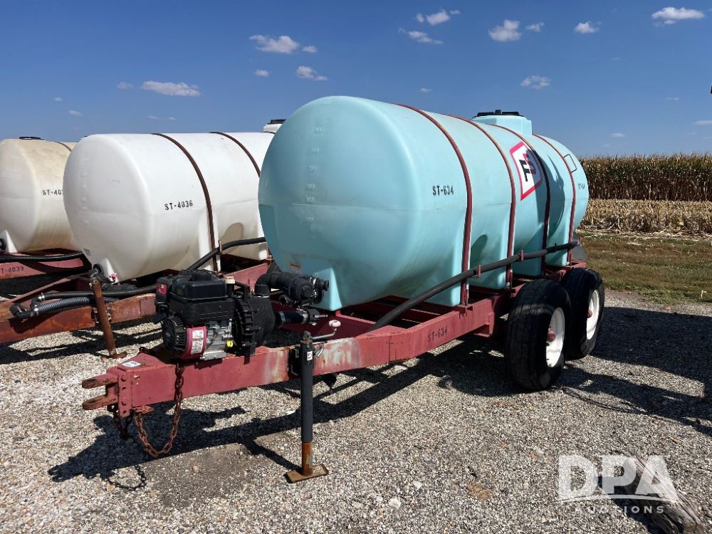Liquid Nurse Tank (JN3132, Unit ST-634), 1000 gallon poly liquid nurse tank, Briggs & Stratton gas engine, Banjo pump, tandem axle gear, 11L-15 flotation tires.