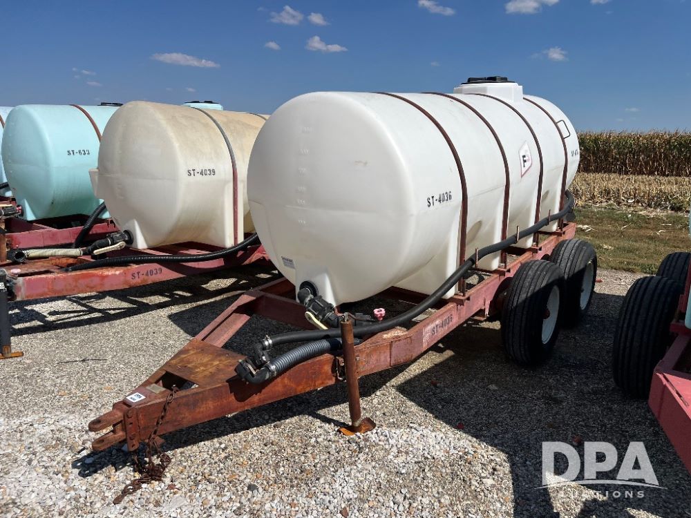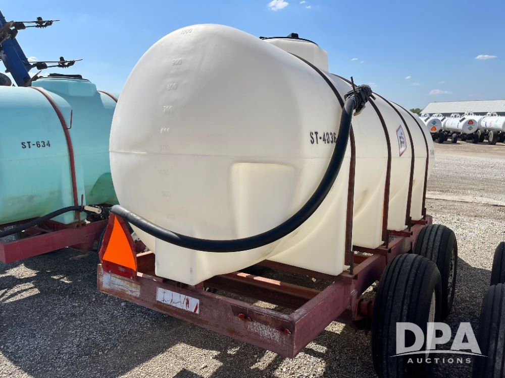 Liquid Nurse Tank (JN3133, Unit ST-4036), 1000 gallon poly liquid nurse tank, P & H tandem axle gear, 11L-15 flotation tires.