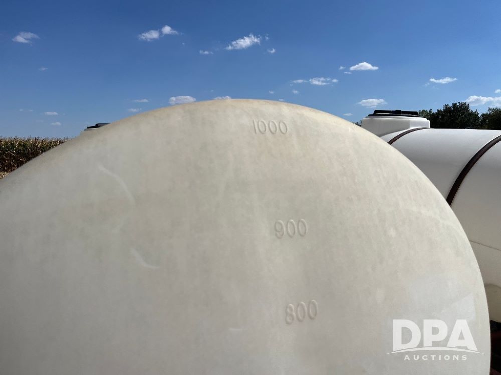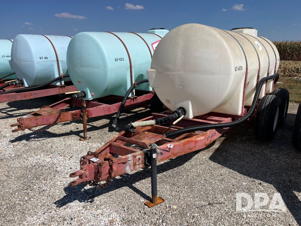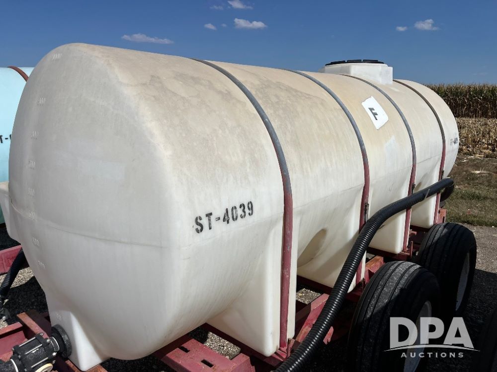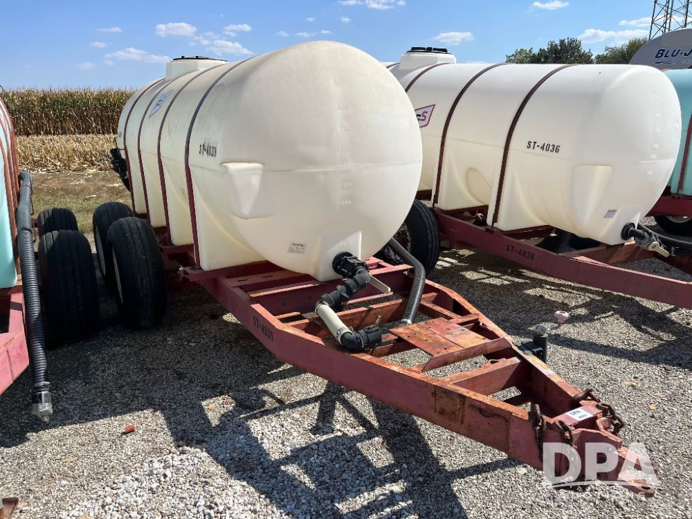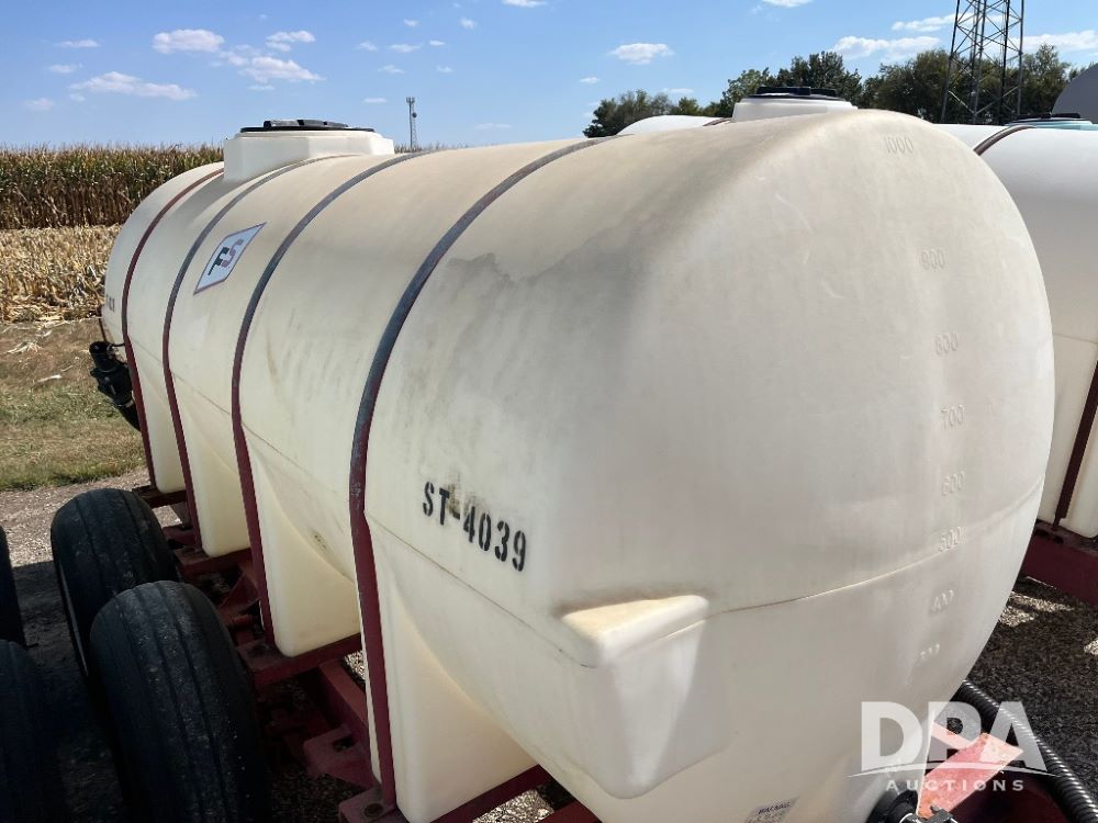 Liquid Nurse Tank (JN3134, Unit ST-4039), 1000 gallon poly liquid nurse tank, tandem axle gear, 11L-15 flotation tires.
