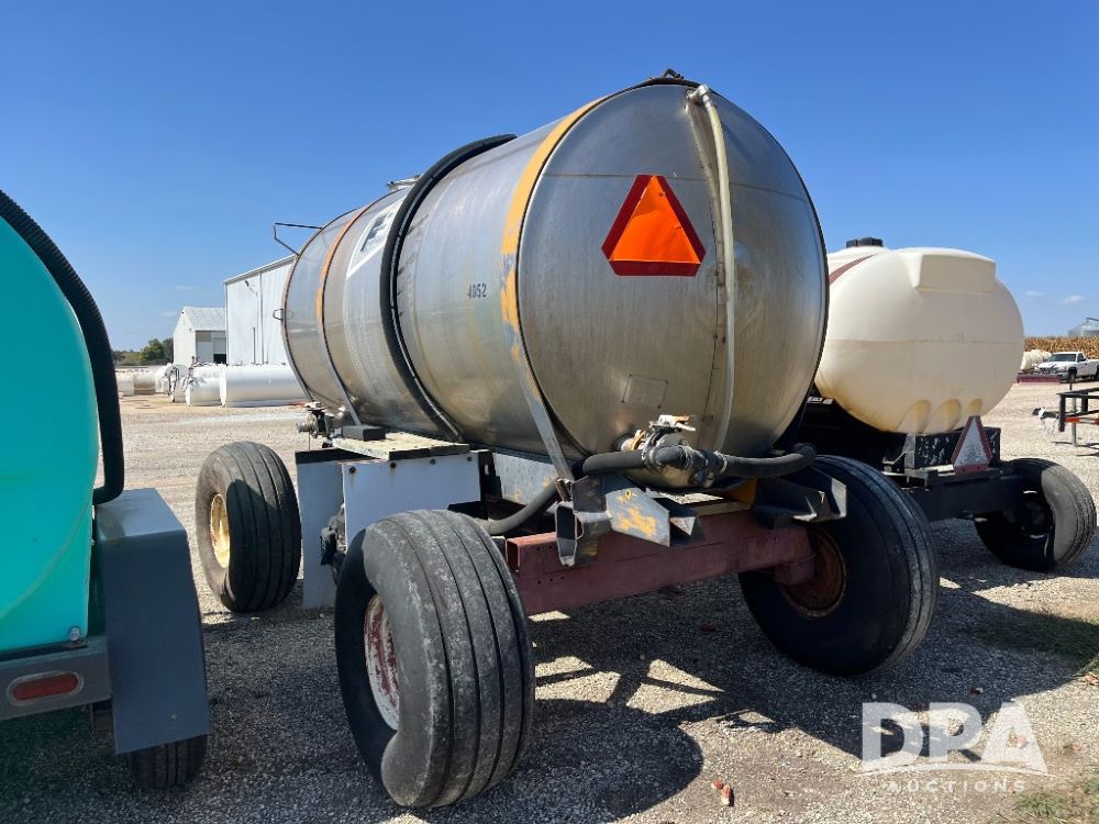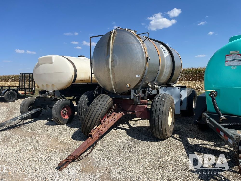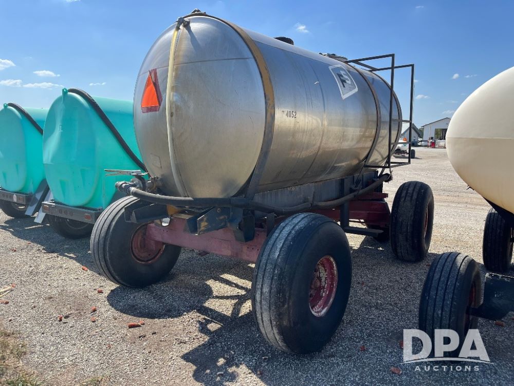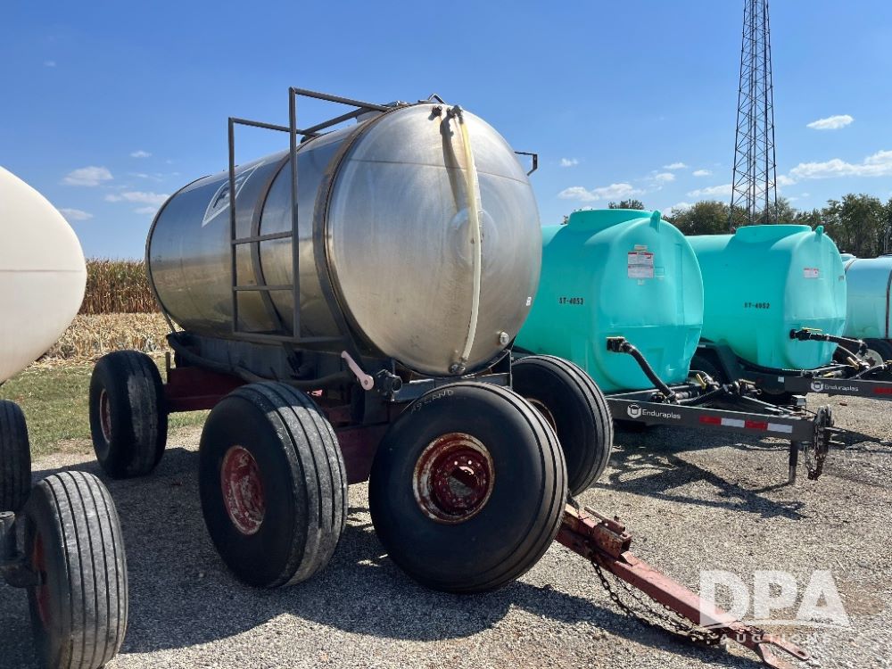 Liquid Nurse Tank (JN3137, Unit 4052), 1600 gallon stainless steel liquid nurse tank, Briggs & Stratton 5.5 hp gas engine, Banjo pump, auto steer running gear, 16.5L-16.1 flotation tires.