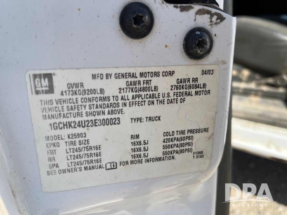 2003 Chevrolet 2500HD Pickup (JN3145, Unit 794), 4x4, Vortec 6.0L gas engine, automatic transmission, air conditioning, heat, Am/Fm radio, rear hitch, LT265/75R16 tires.