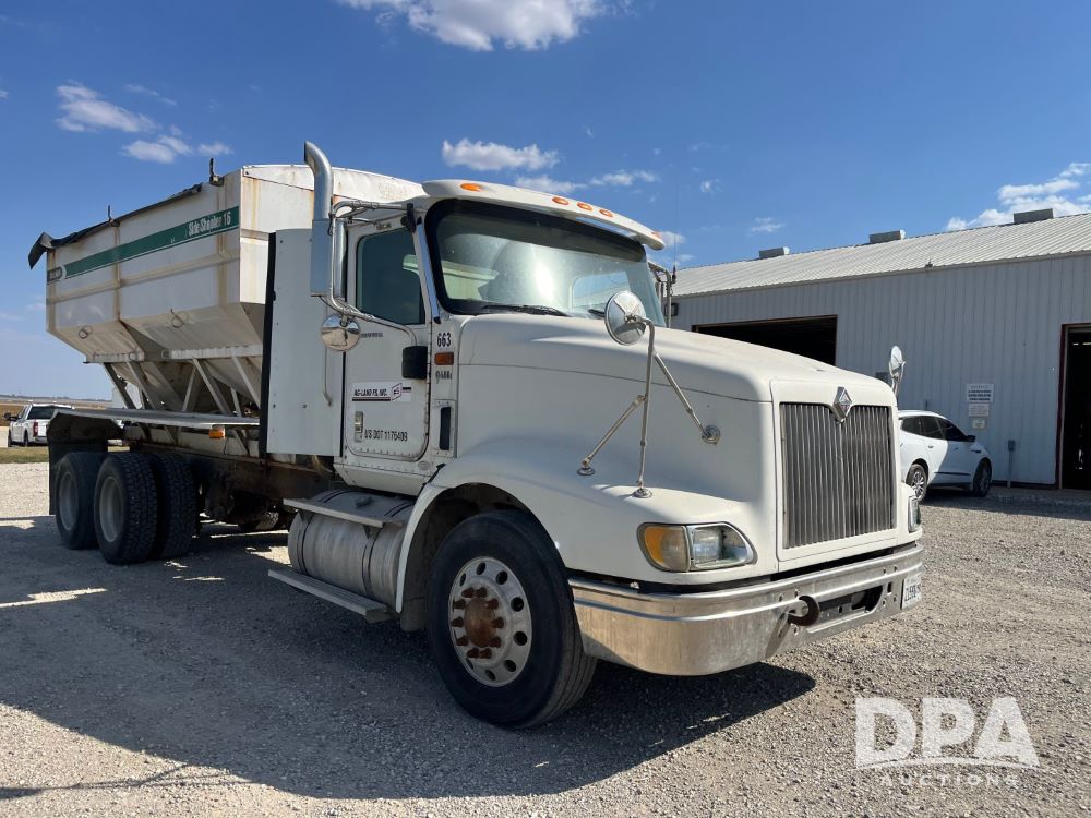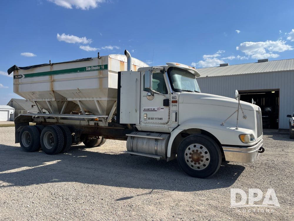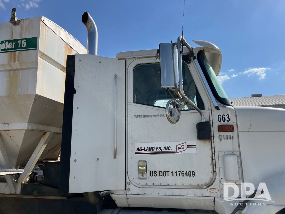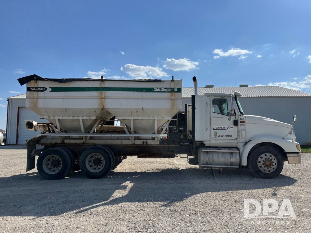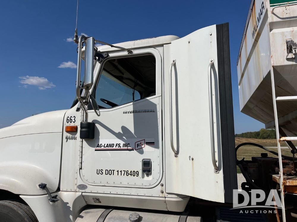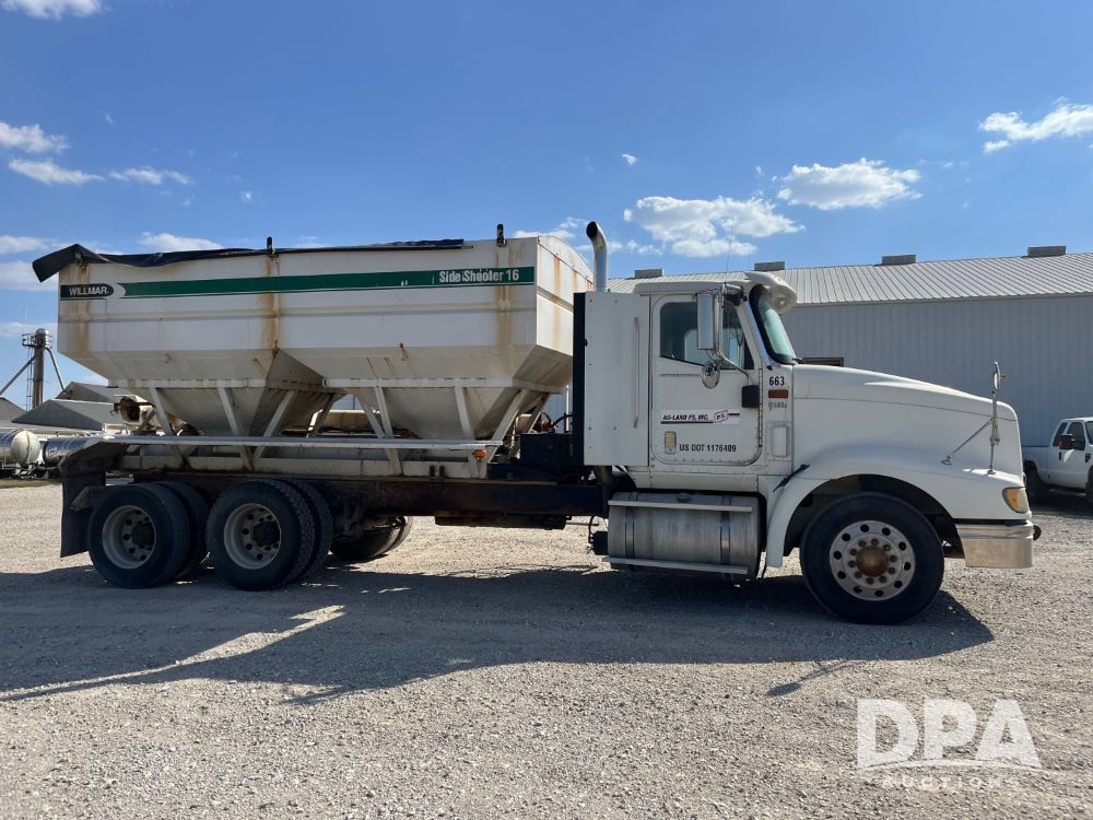 2007 IHC 9400i Dry Tender Truck (JN3147, Unit 663), Cummins diesel engine, Eaton Fuller 10 speed transmission, air conditioning, heat, Am/Fm CD radio, cruise control, engine brake, tandem axle, full screw, air ride suspension, Willmar 16 ton dry tender box, side discharge auger, all hydraulic, 295/75R22.5 tires, aluminum rims.