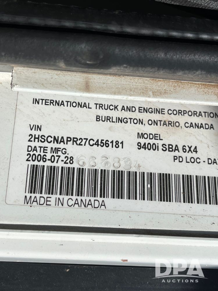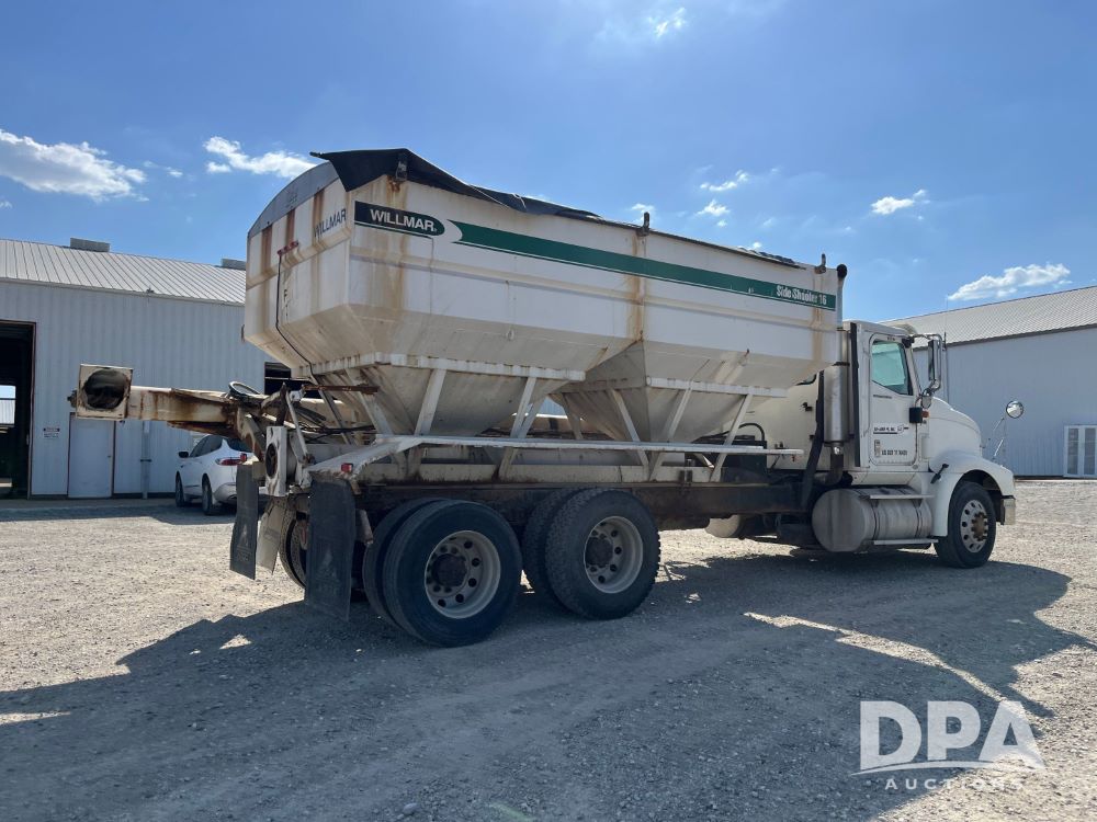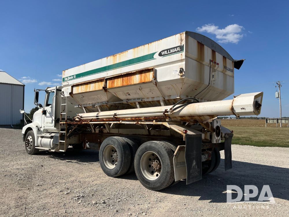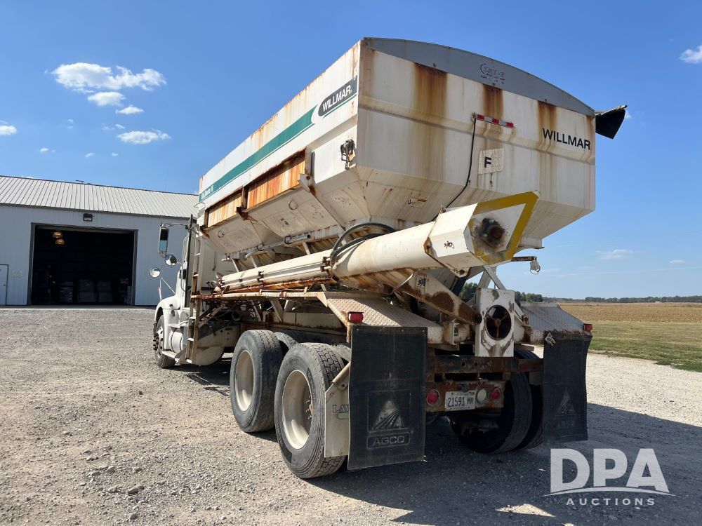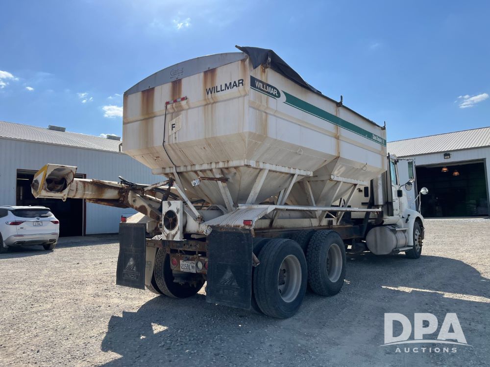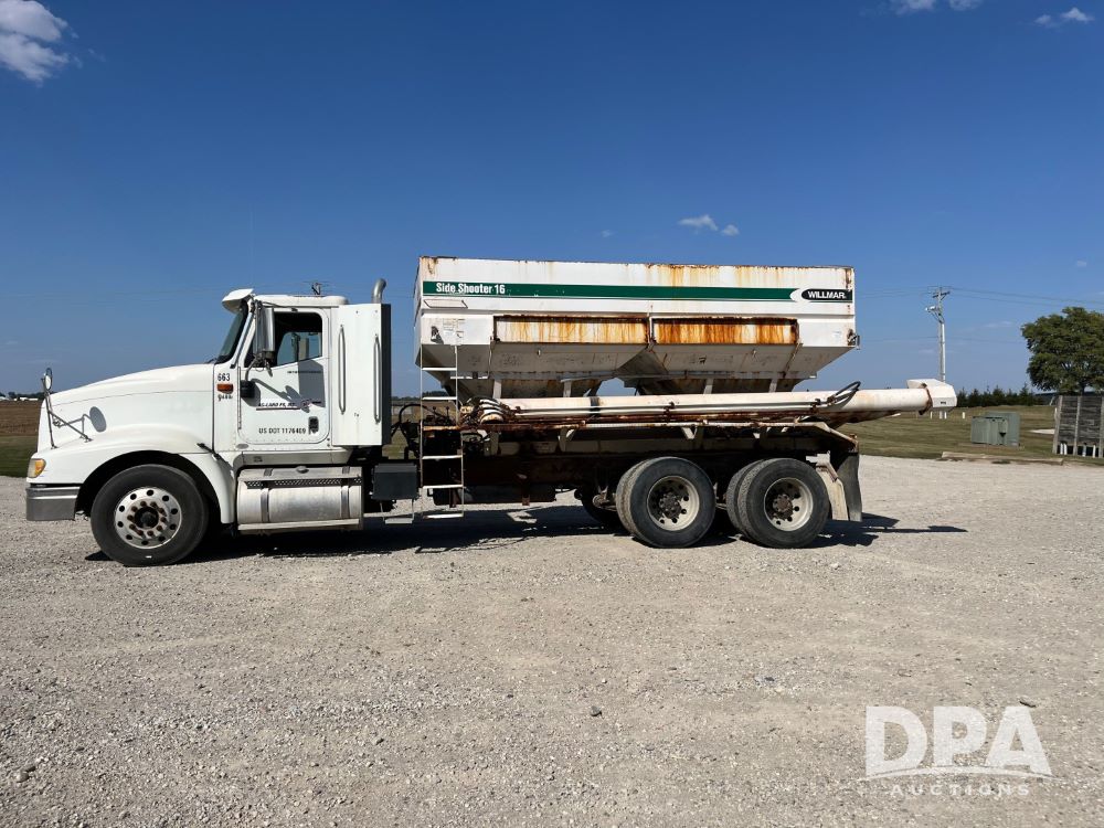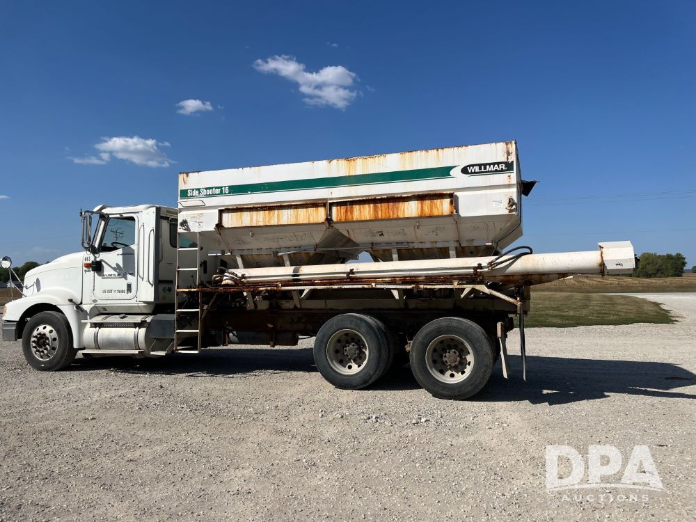 2007 IHC 9400i Dry Tender Truck (JN3147, Unit 663), Cummins diesel engine, Eaton Fuller 10 speed transmission, air conditioning, heat, Am/Fm CD radio, cruise control, engine brake, tandem axle, full screw, air ride suspension, Willmar 16 ton dry tender box, side discharge auger, all hydraulic, 295/75R22.5 tires, aluminum rims.