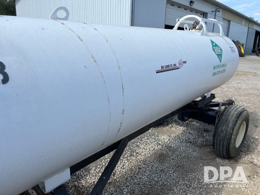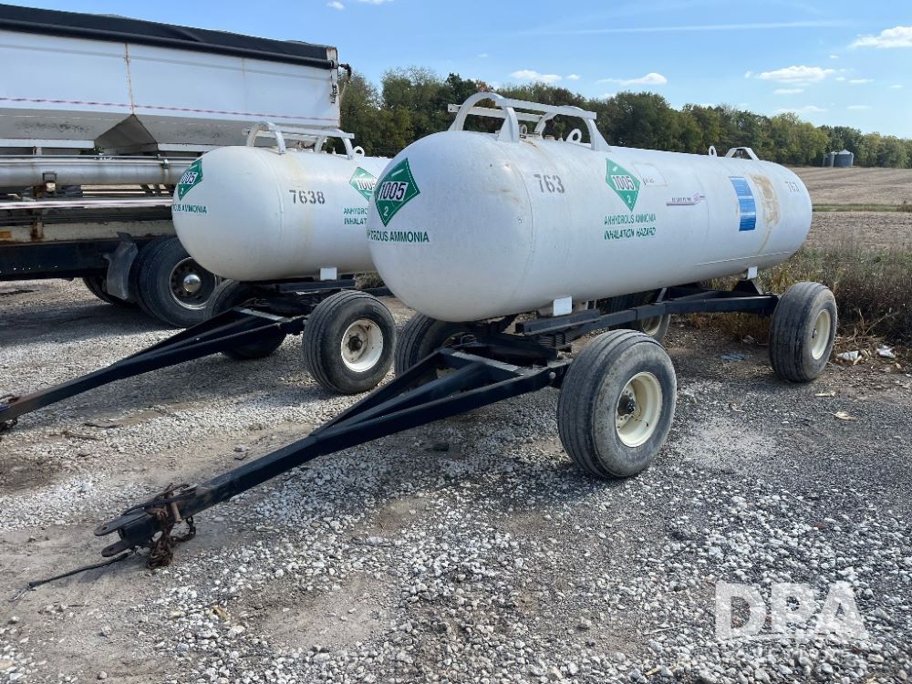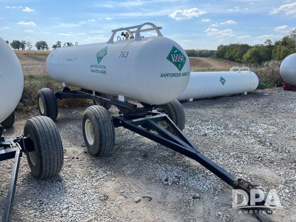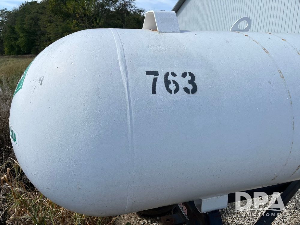 NH3 Nurse Tank (JN3163, Unit 763), 1000 gallon NH3 nurse tank, top front fill, data plate, B-B 5th wheel running gear, 12.5L-15 flotation tires.