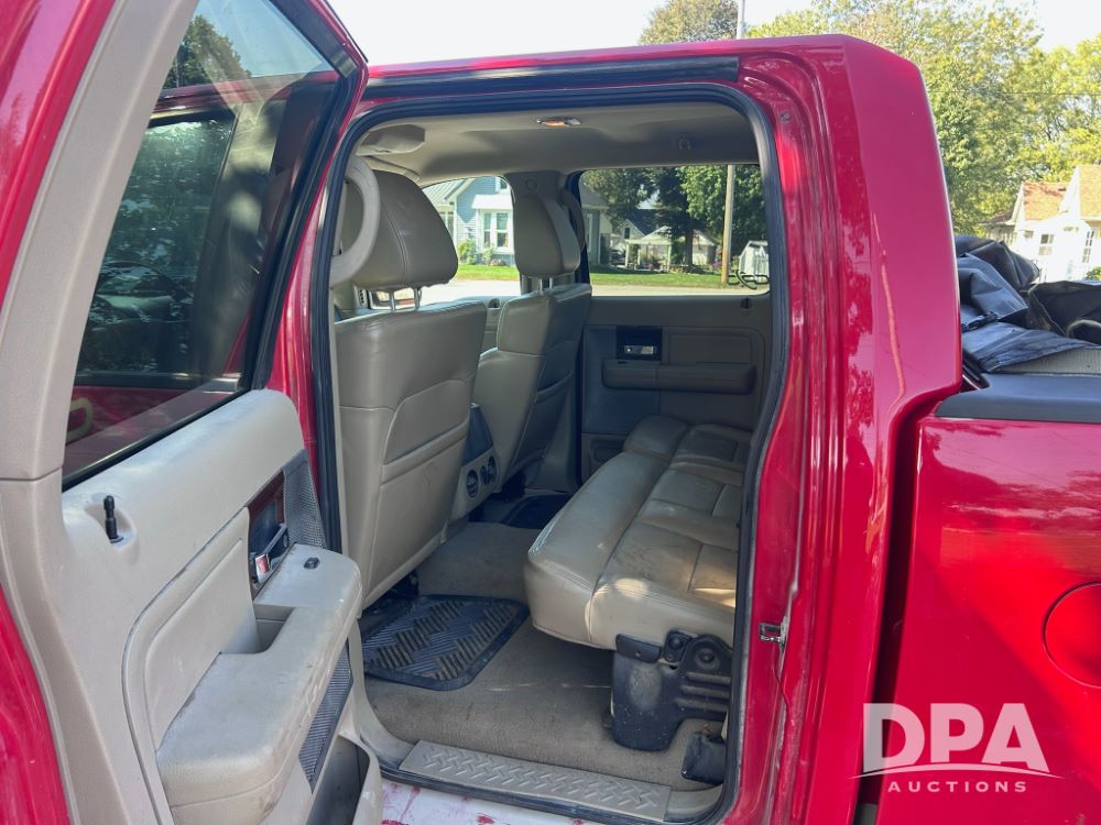 2007 Ford F150 Lariat Pickup (ED5264), 2007 Ford F150 Lariat pickup, Super Crew 4x4, 4 door, 5.4L engine, automatic, heat, air conditioning, radio, CD, leather, cruise control, heated and electric seats, controls on steering wheel, Patagonia 275/65R18 tires, shows 321,102 miles.