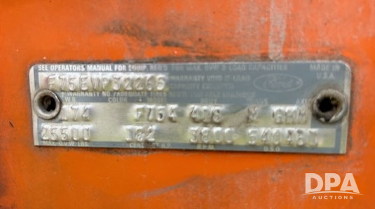 1972 Ford F750 Dump Truck (ED4436), 1972 F750 dump truck, V-8 engine, split standard transmission, heat, new hoses for the dump, new master cylinder for the brakes, hydraulic brakes was gone through, truck was tuned and runs great, shows 30,332 miles, shows 23,18 hours.
