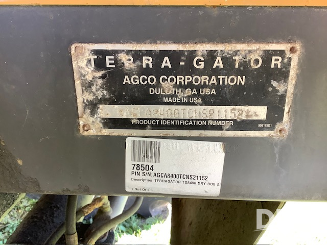 2012 TerraGator TG8400 Dry Floater (LT1432), twin bin air boom, CVT transmission, Viper monitor, Raven wiring still on machine, shows 4,040 hours.