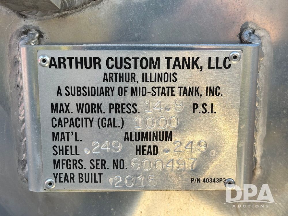 2015 Arthur Custom Tank Vac Tank (GP11575), 2015 Arthur Custom Tank, LLC vac tank (S/N 600497), 1,000 gallon capacity, aluminum.