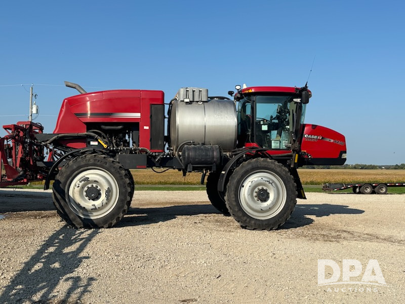 2012 CaseIH Patriot 4430 Sprayer (MN1122), diesel engine, hydrostatic transmission, luxury cab, air conditioning, heat, AM/FM radio, buddy seat, 1,200 gallon stainless steel liquid system, 120ft boom (60/90/120) tri-fold, right hand fence row nozzle, 20in spacing, top 70gal poly rinse tank, stainless steel chemical inductor, side 2in fill, foam markers (not used in last 5 years), poly foam tank, auto steer, auto height, auto shut off/on, 7 sections, AIM Command, Raven Viper 4 monitor, rear camera, shows 5,719.9 hours.