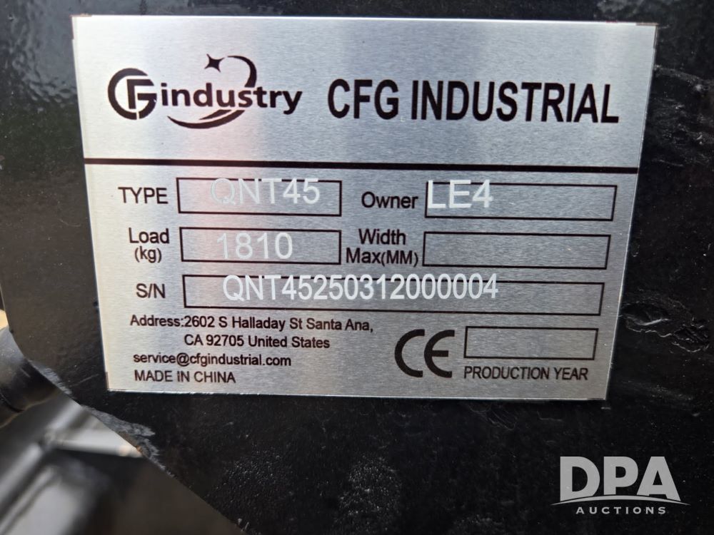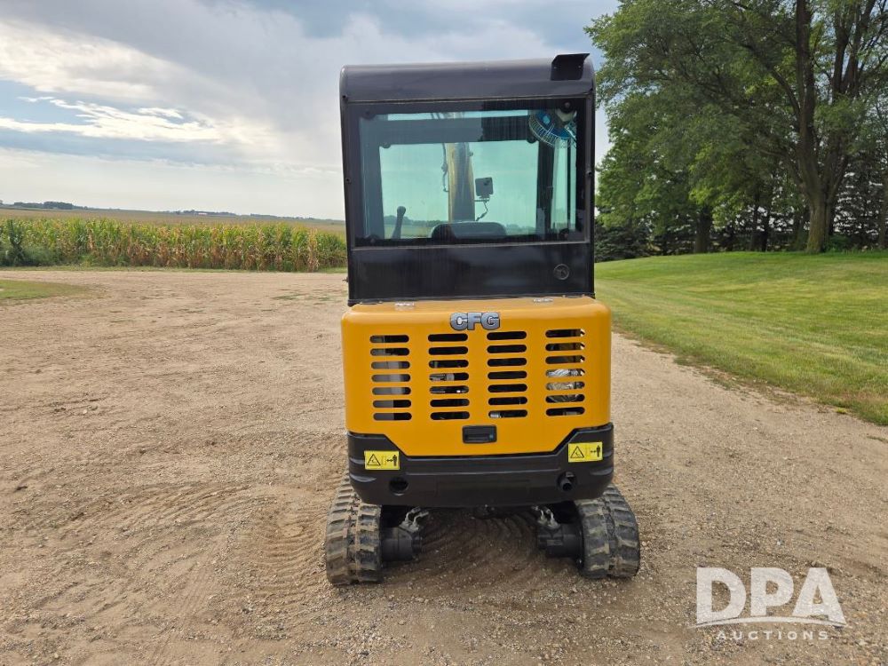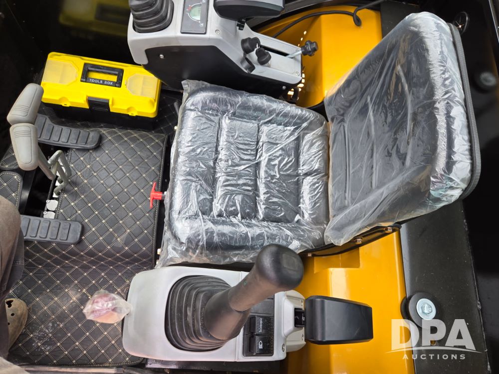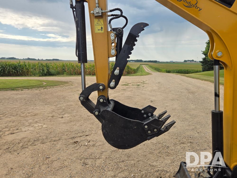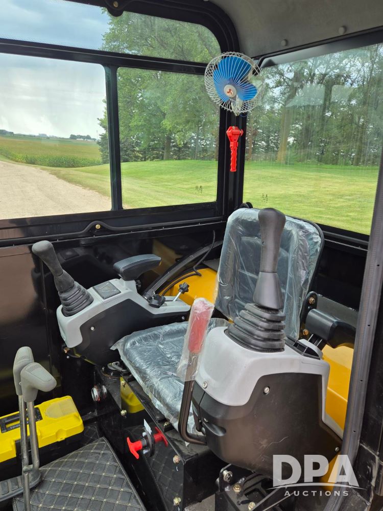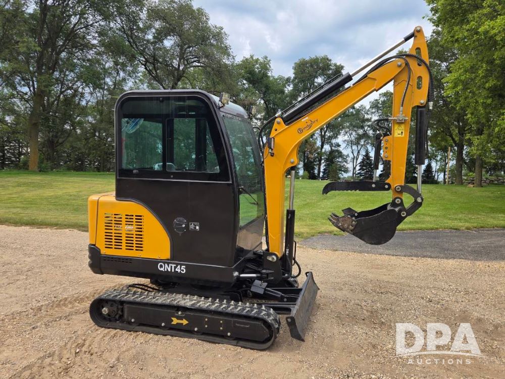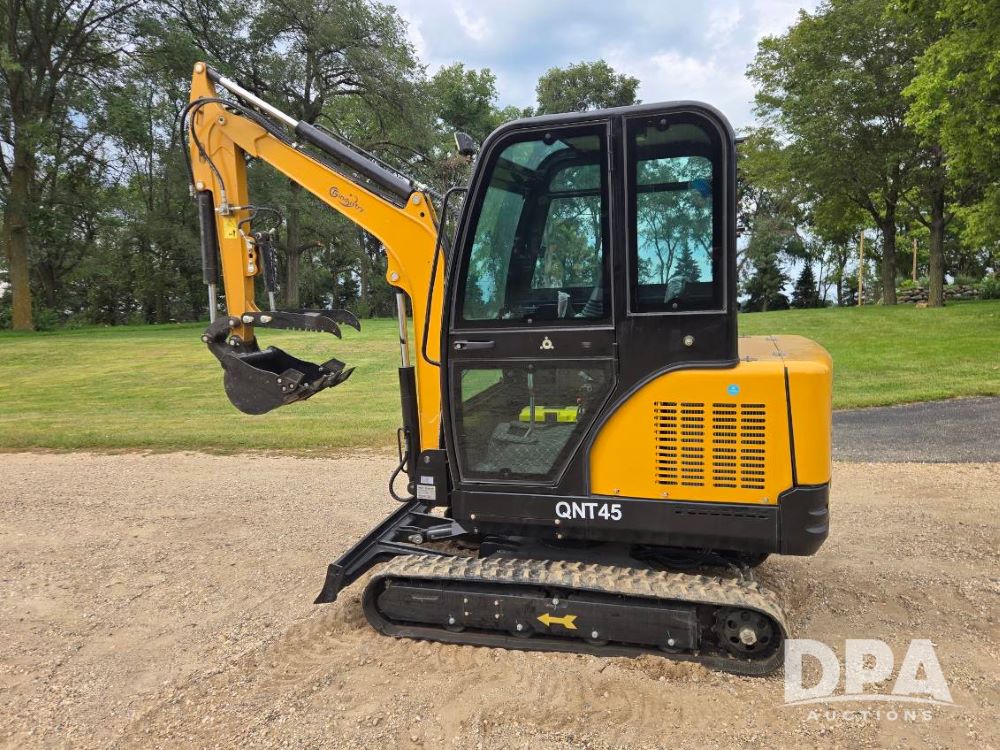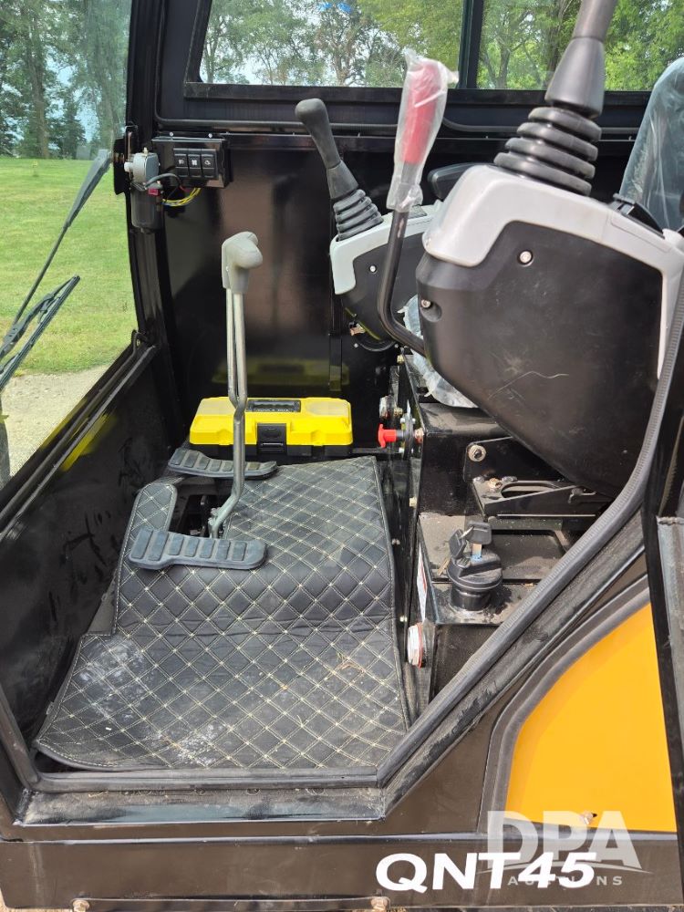 2024 QNT45 Mini Excavator (LLD1434), Kubota diesel engine, enclosed cab, hydraulic thumb, blade, 18 inch bucket, shows 3.6 hours.