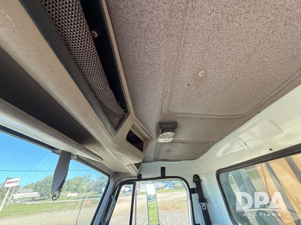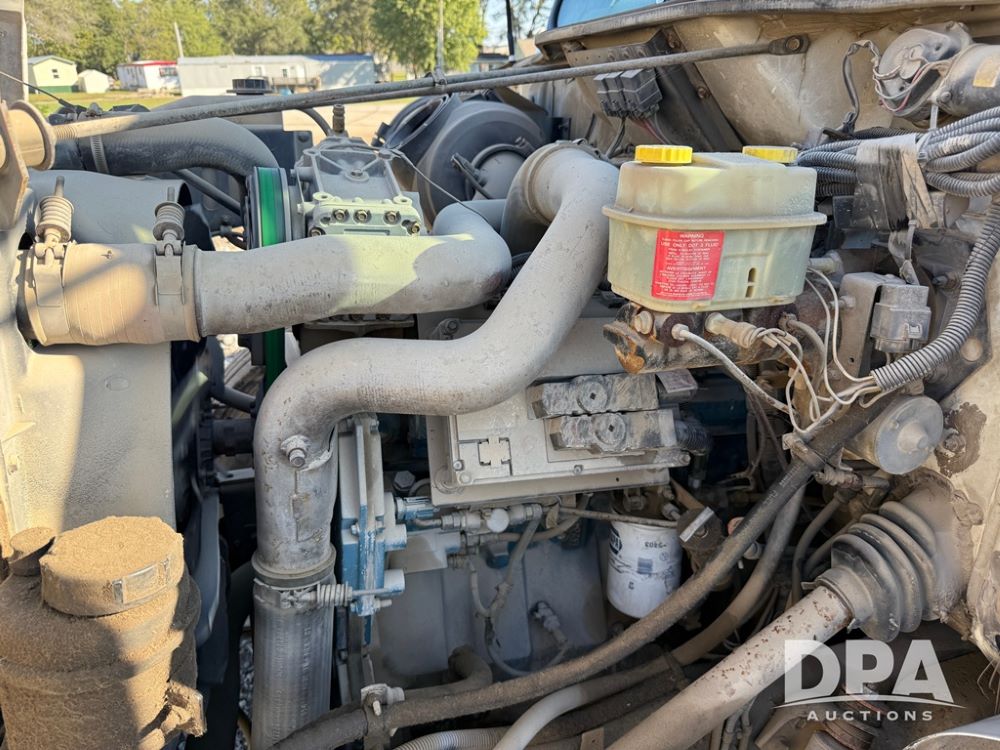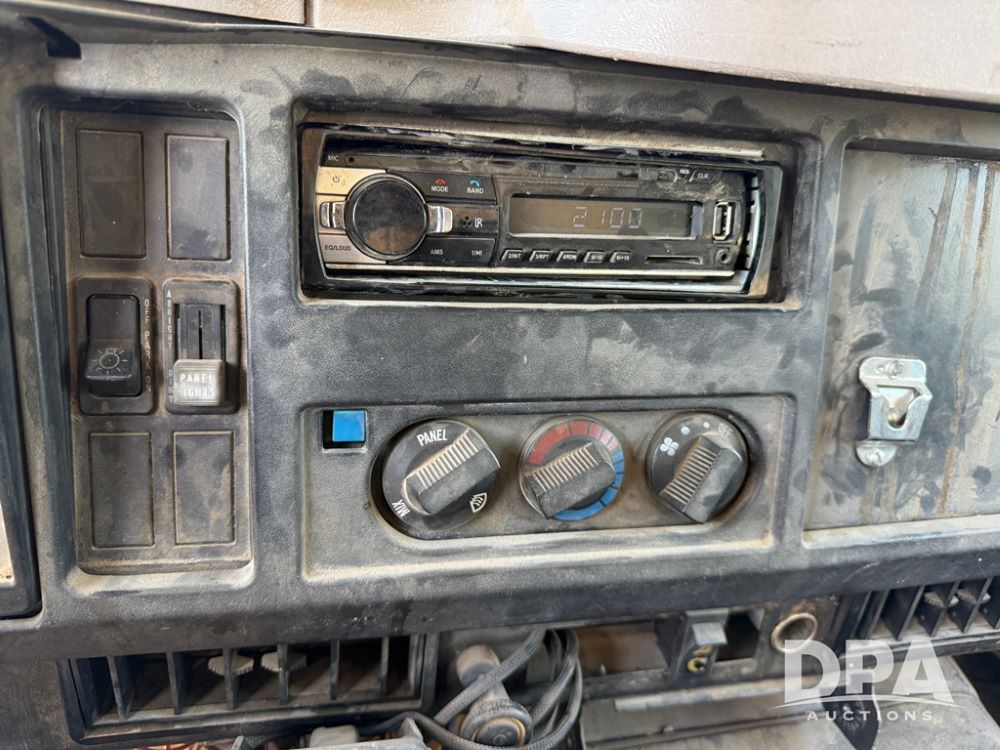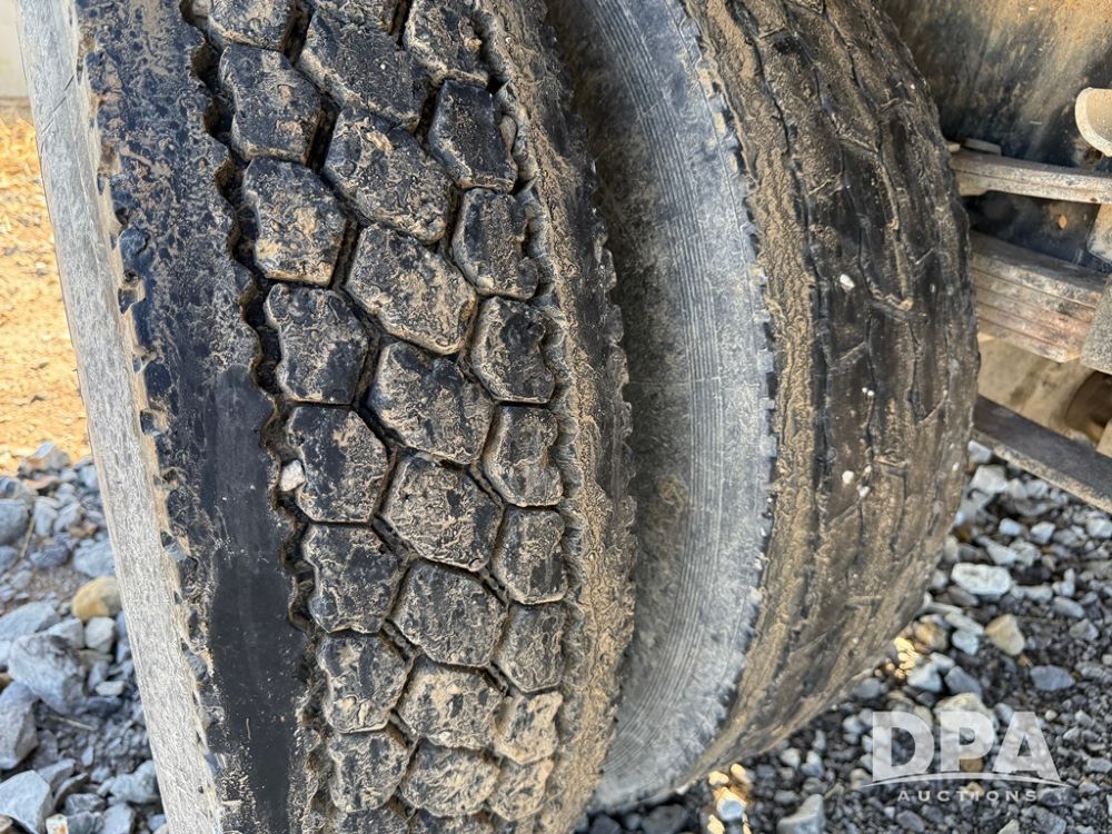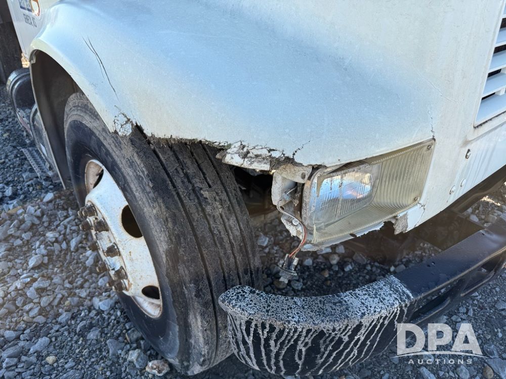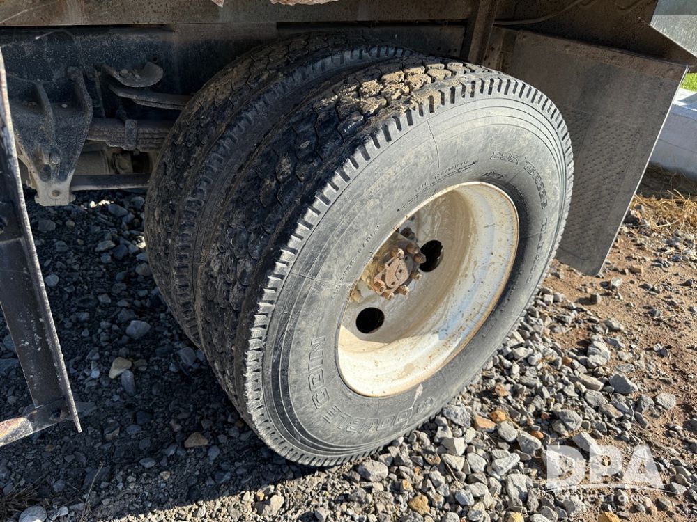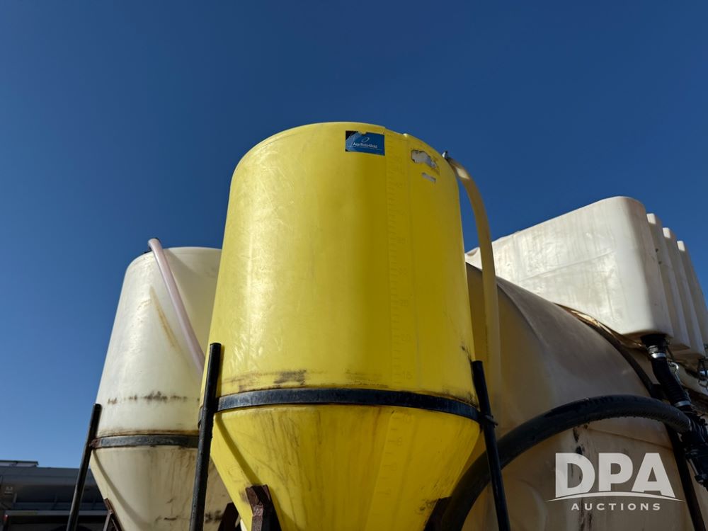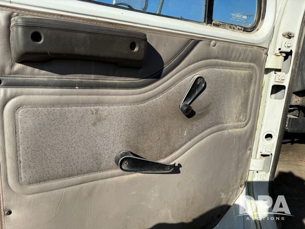 1999 International 4700 Liquid Nurse Truck (NP6161, Unit 283), IHC diesel engine, automatic transmission, heat, Am/Fm radio, single axle, spring suspension, rear flatbed, 1,600 gallon poly flat bottom liquid tank, top mount poly rinse tank, (2) cone bottom poly chemical inductor tanks w/ stands, 11R22.5 front tires, 295/75R22.5 rear tires, approx. 192" wheel base, shows 284,269 miles.