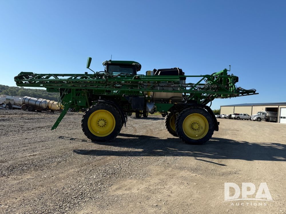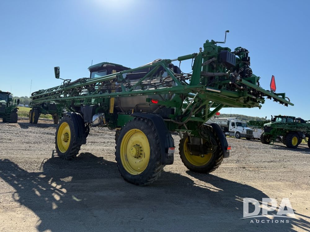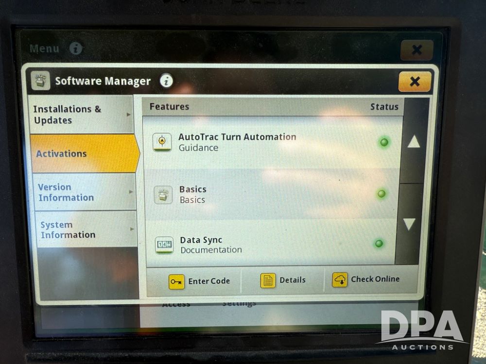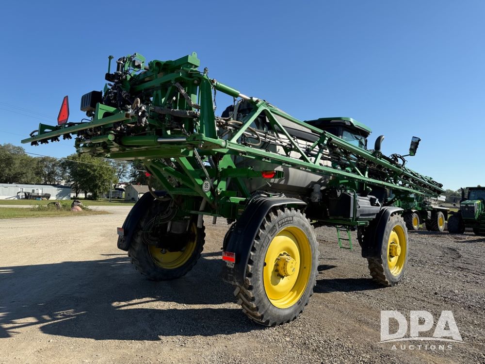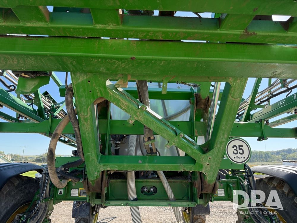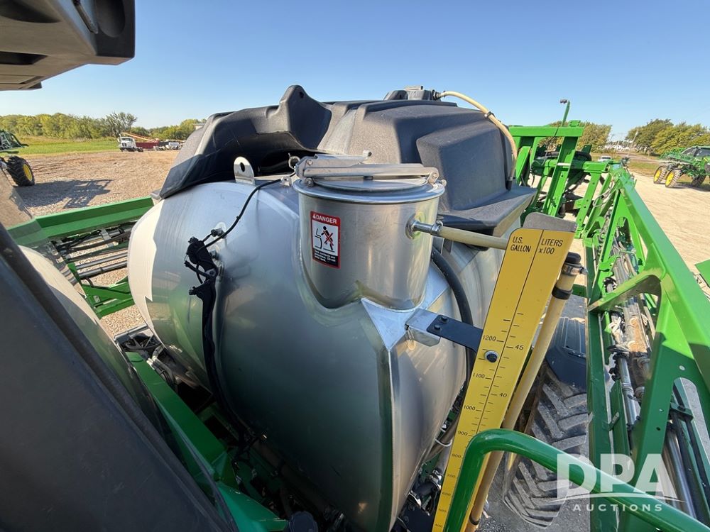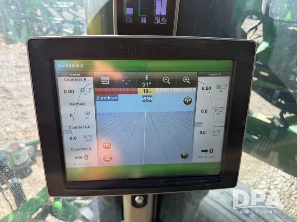 2022 John Deere 412R Sprayer (NP6164), John Deere diesel engine (S/N RG6090U120156), hydrostatic transmission, heat, air conditioning, Am/Fm radio, buddy seat, 1,200 gallon stainless steel liquid system, 120' boom, ExactApply nozzles, top mount poly rinse tank, stainless steel chemical inductor, automatic solution control, 380/90R46 tires, fenders, Lincoln Lube Systems, front fill option, StarFire 6000 globe, John Deere monitor with additional extension monitor, shows 1,766 hours.