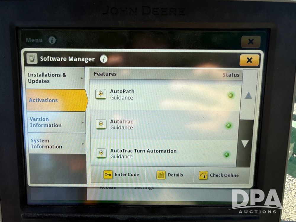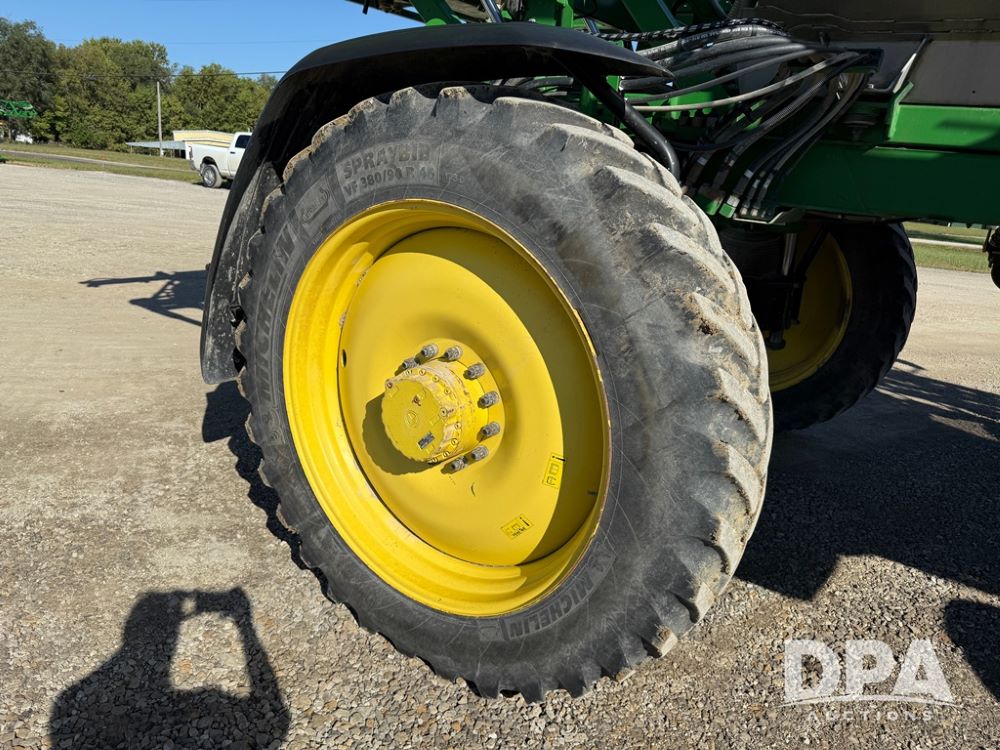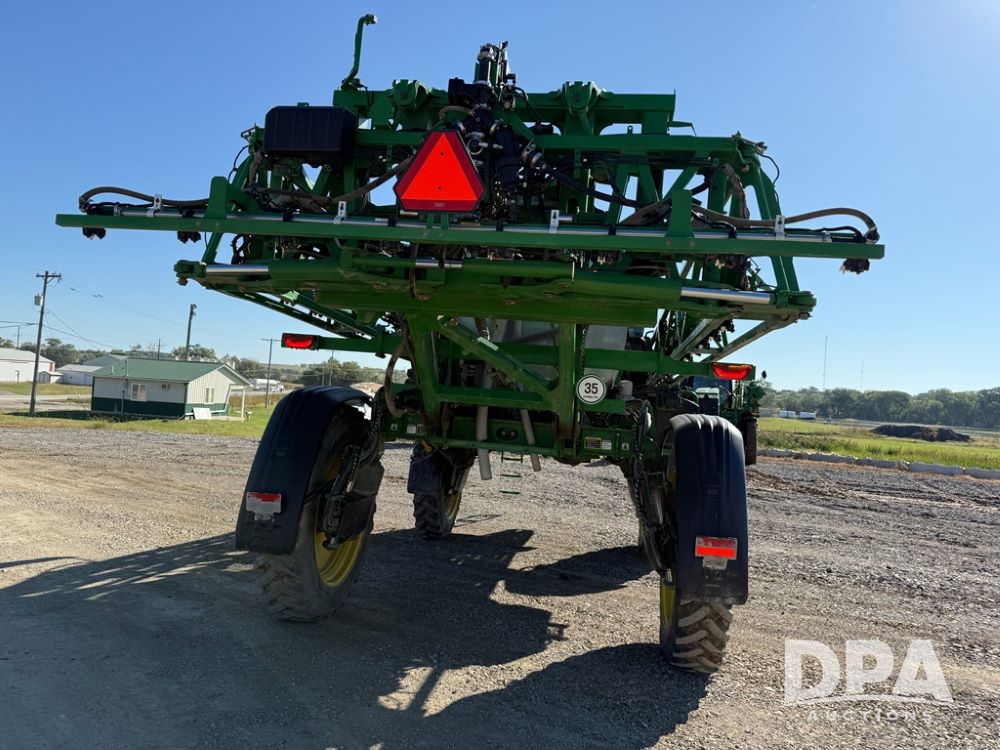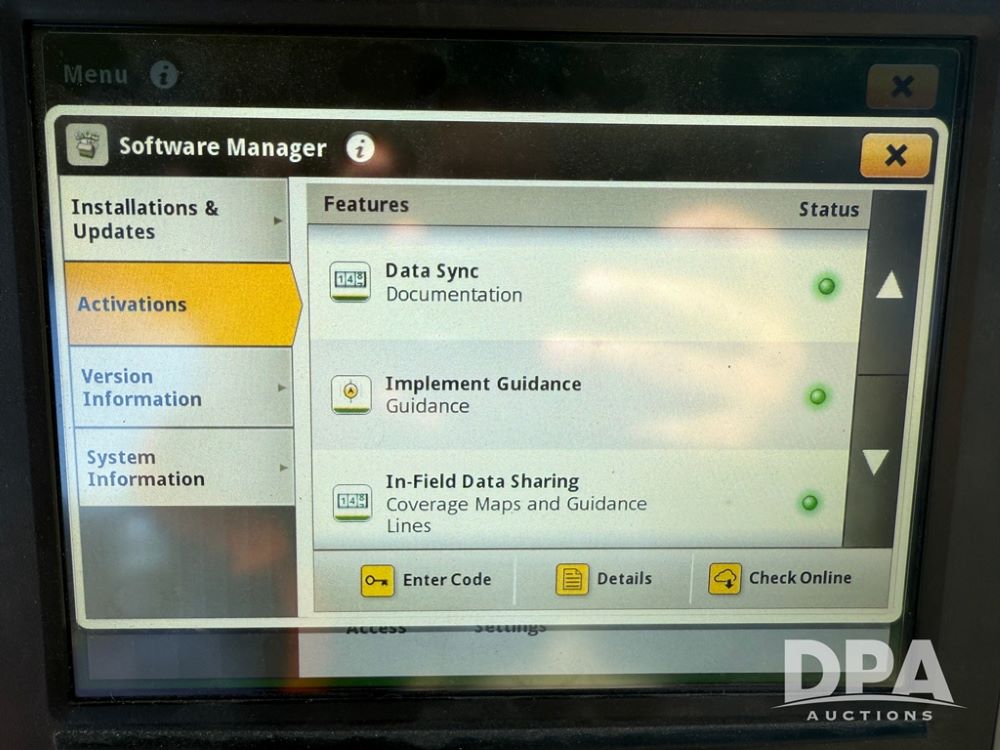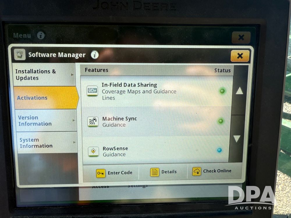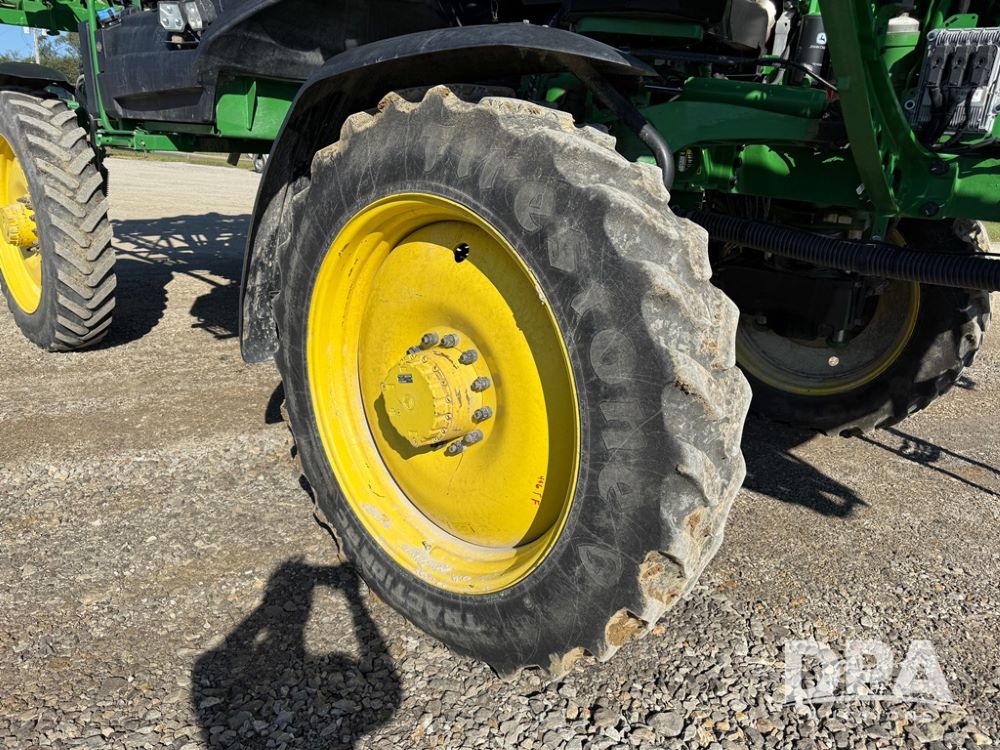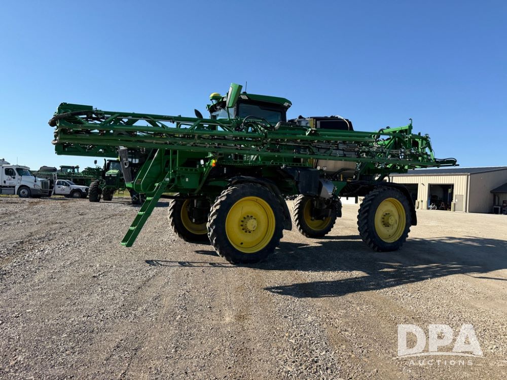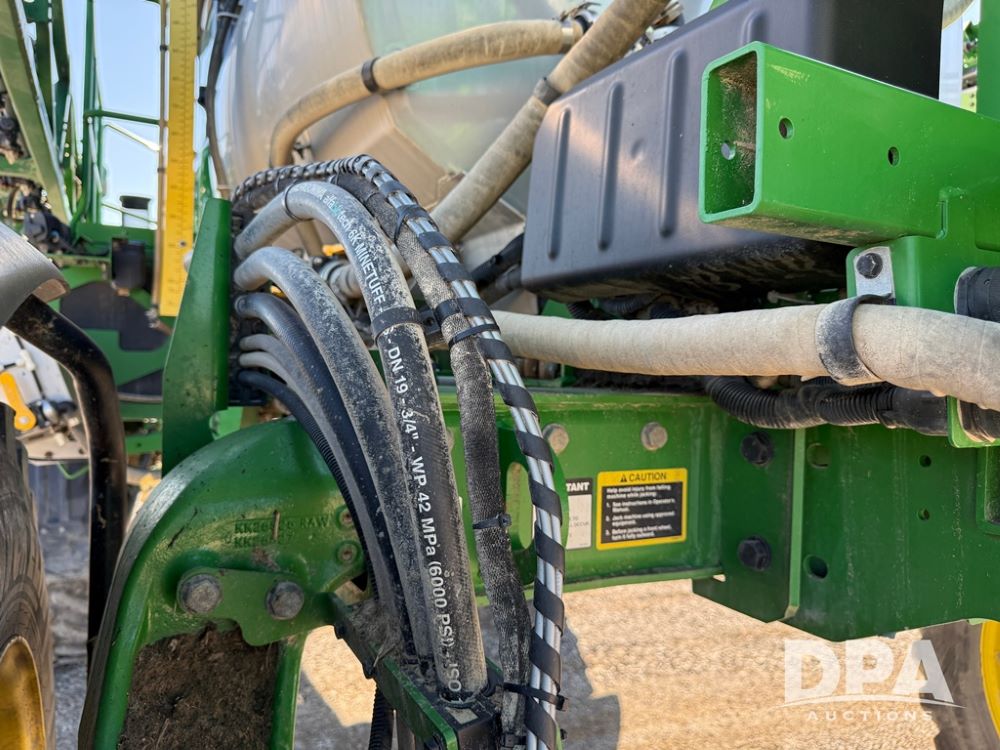 2022 John Deere 412R Sprayer (NP6164), John Deere diesel engine (S/N RG6090U120156), hydrostatic transmission, heat, air conditioning, Am/Fm radio, buddy seat, 1,200 gallon stainless steel liquid system, 120' boom, ExactApply nozzles, top mount poly rinse tank, stainless steel chemical inductor, automatic solution control, 380/90R46 tires, fenders, Lincoln Lube Systems, front fill option, StarFire 6000 globe, John Deere monitor with additional extension monitor, shows 1,766 hours.