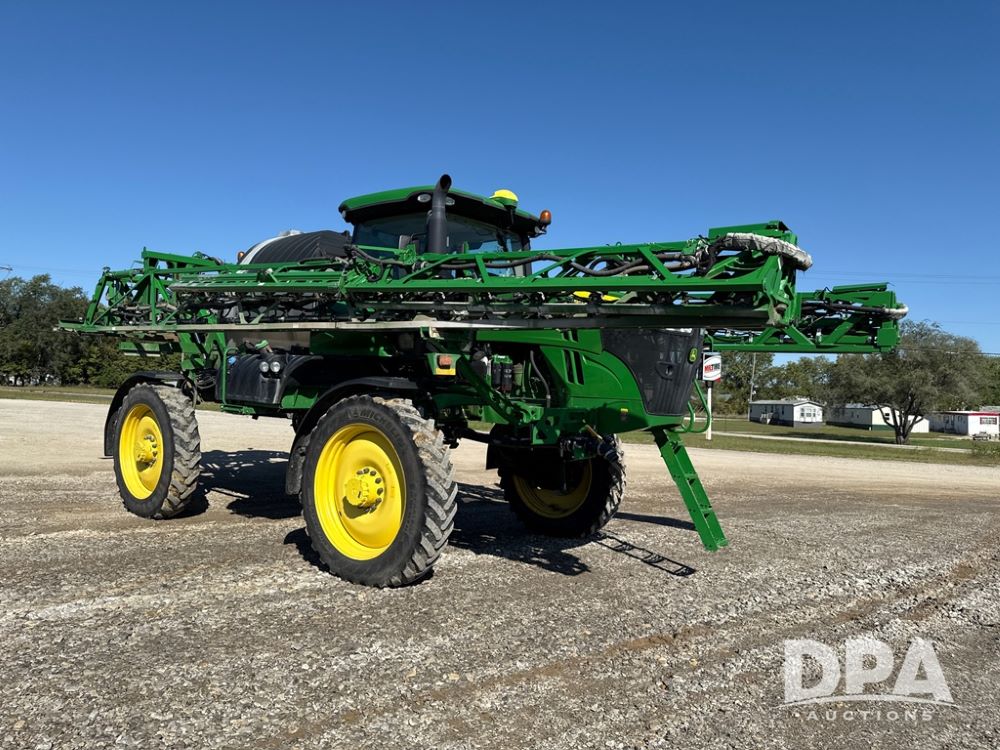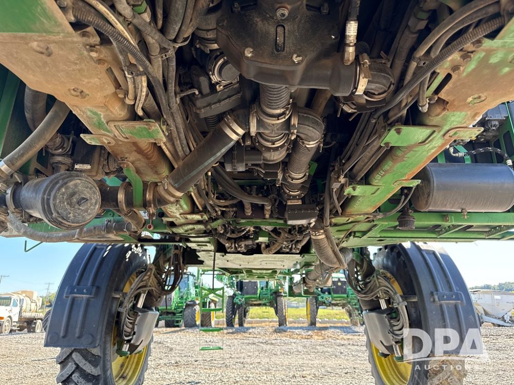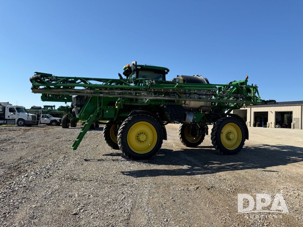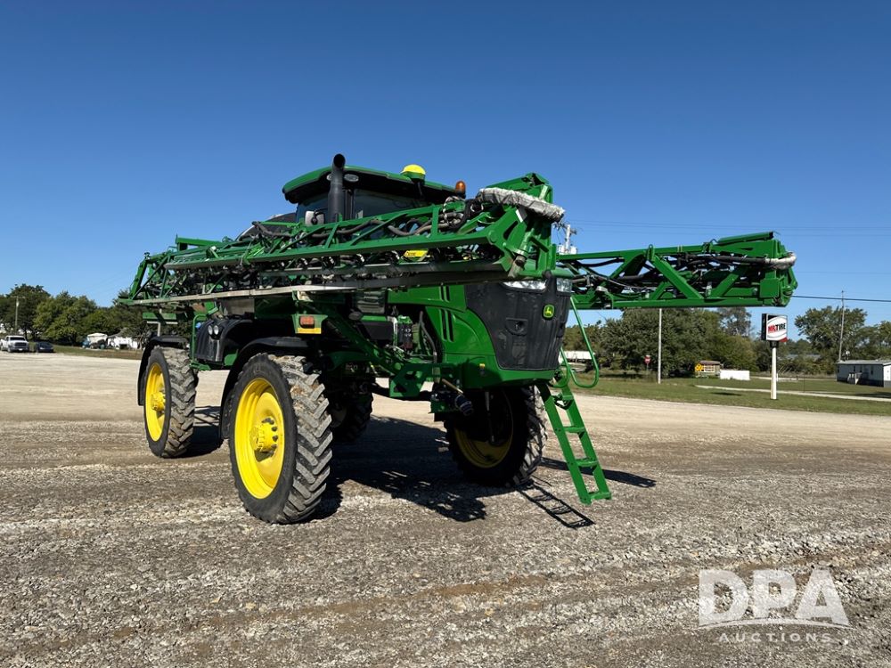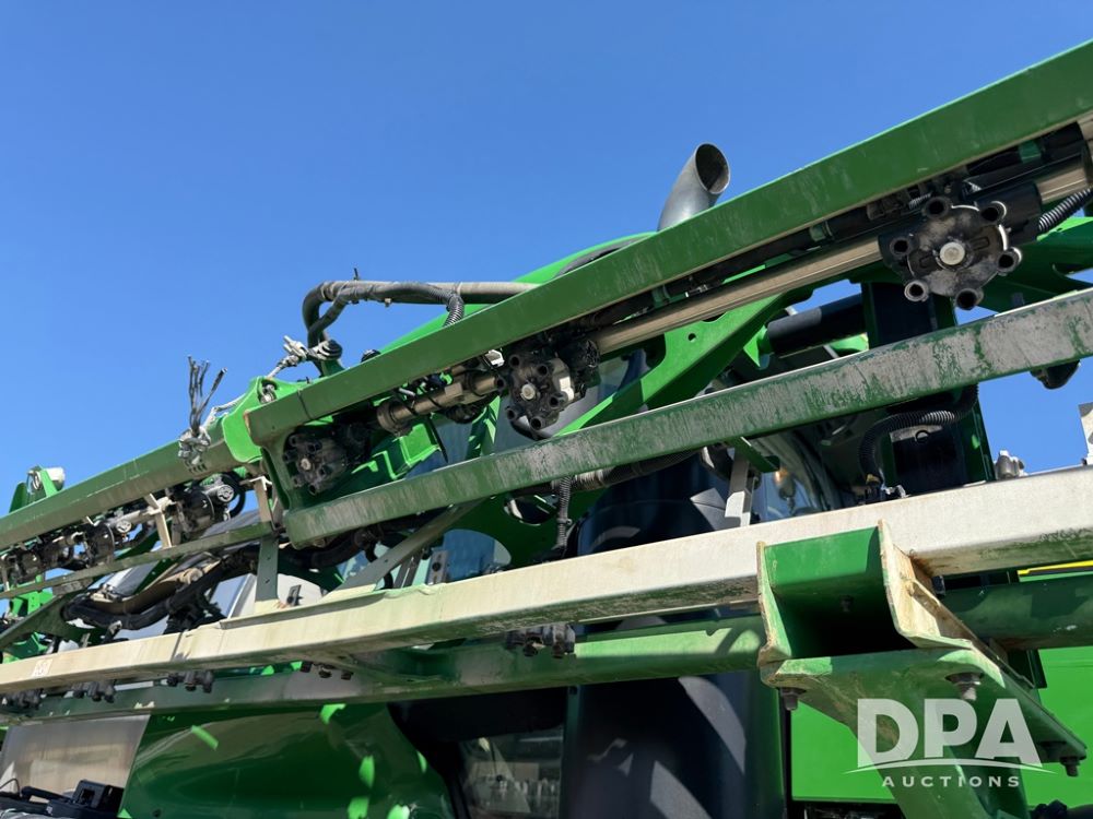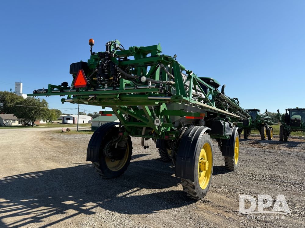 2021 John Deere R4044 Sprayer (NP6169), John Deere diesel engine, hydrostatic transmission, heat, air conditioning, Am/Fm radio, leather driver and buddy seat, 1,200 gallon stainless steel liquid system, 120' boom, ExactApply nozzles, top mount poly rinse tank, stainless steel chemical inductor, automatic solution control, 380/90R46 tires, fenders, front fill option, StarFire 6000 globe, John Deere monitor with additional extension monitor, shows 2,084 hours.