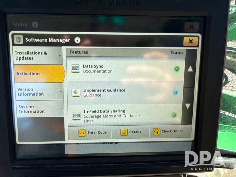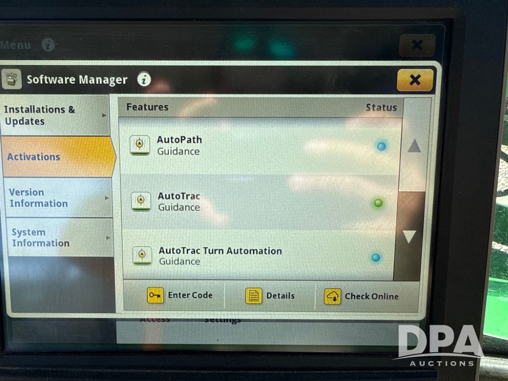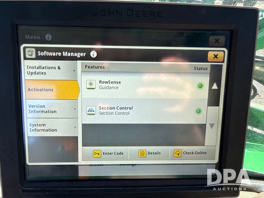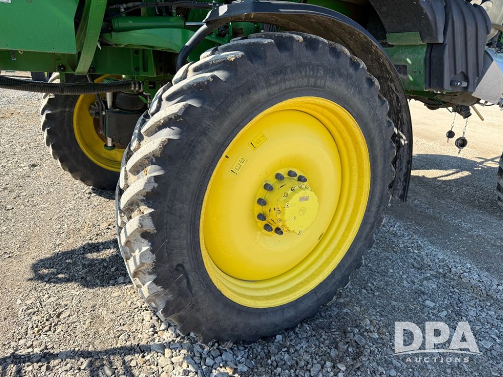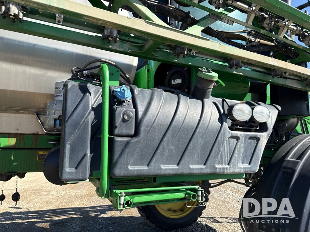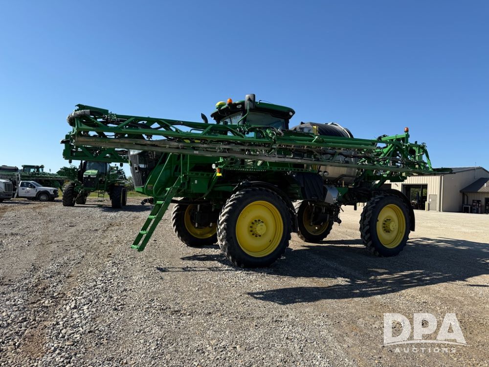 2021 John Deere R4044 Sprayer (NP6169), John Deere diesel engine, hydrostatic transmission, heat, air conditioning, Am/Fm radio, leather driver and buddy seat, 1,200 gallon stainless steel liquid system, 120' boom, ExactApply nozzles, top mount poly rinse tank, stainless steel chemical inductor, automatic solution control, 380/90R46 tires, fenders, front fill option, StarFire 6000 globe, John Deere monitor with additional extension monitor, shows 2,084 hours.