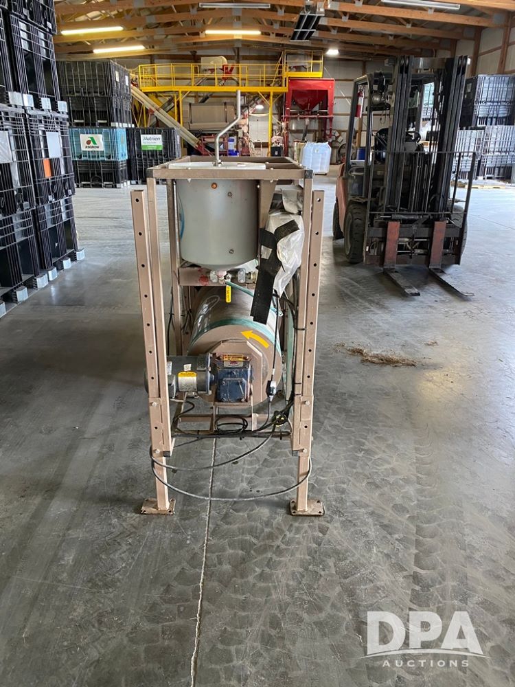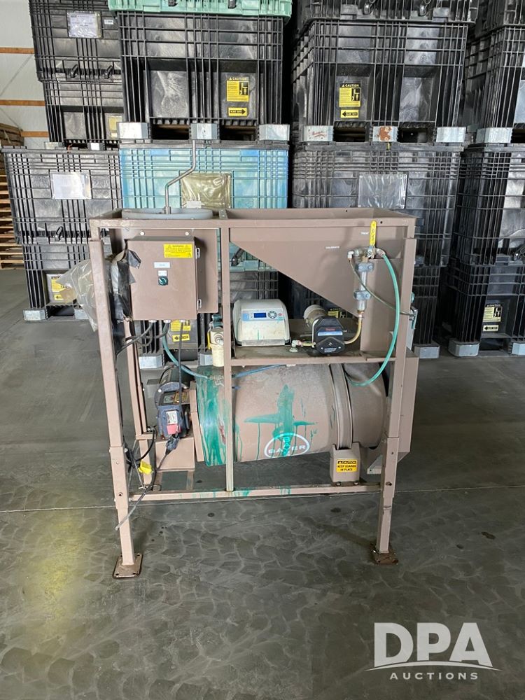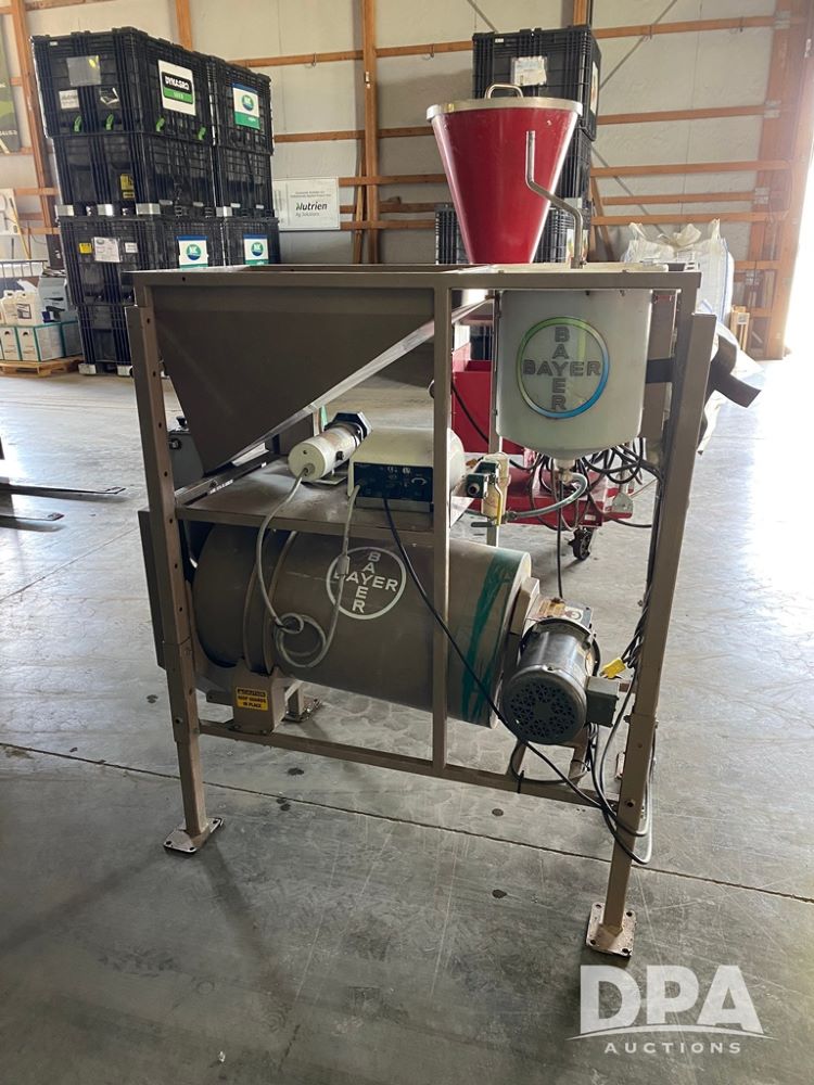 Bayer Drum Treating System (PZ13935), Bayer All-In-One self contained continuous-flow seed treating system, chemicical tank with manual agitation, hopper, 2-way bagging discharge assembly, pump, adjustable height.