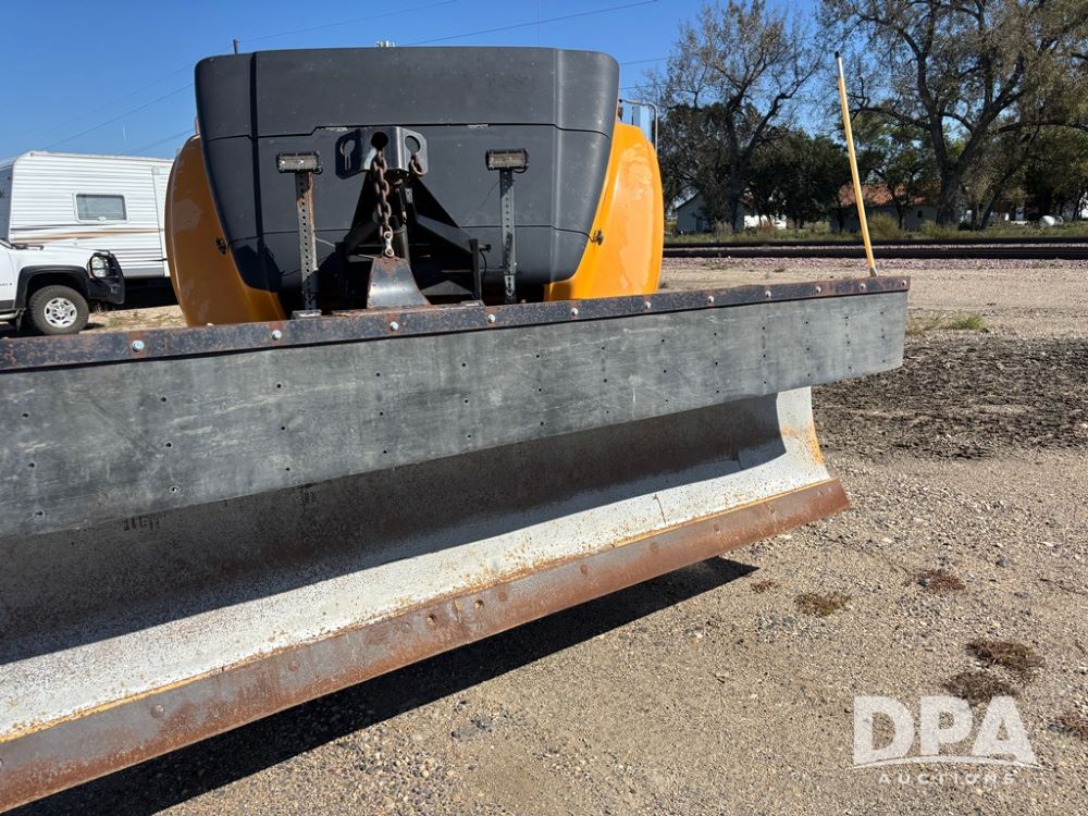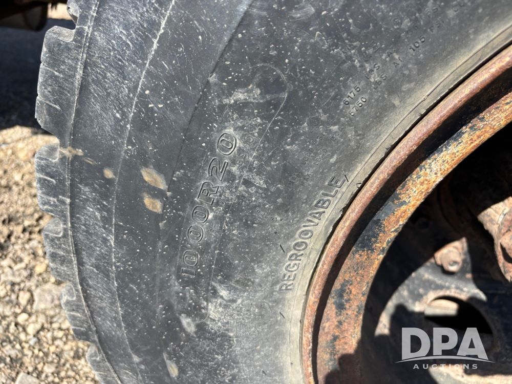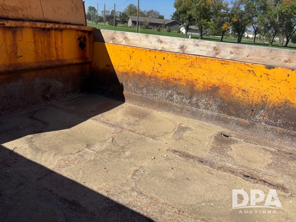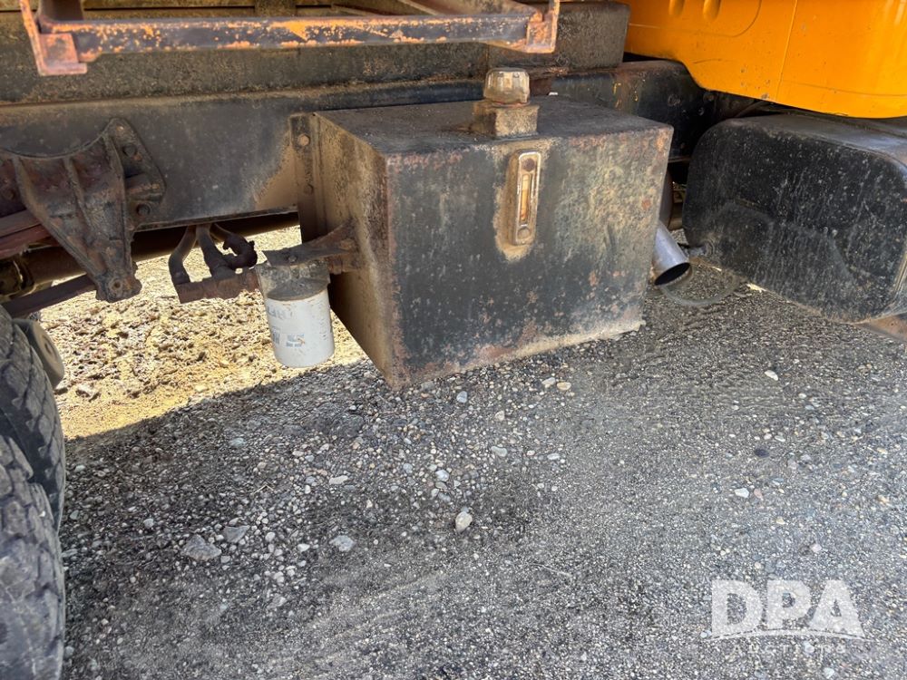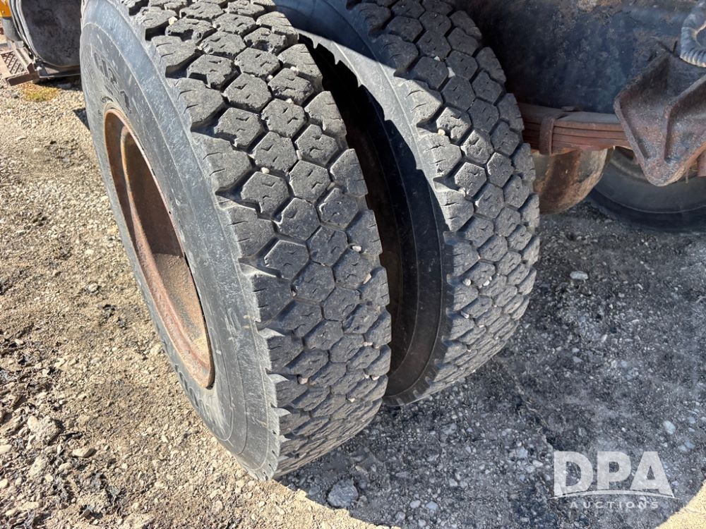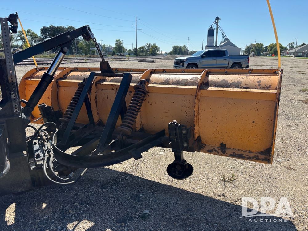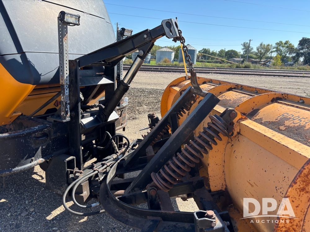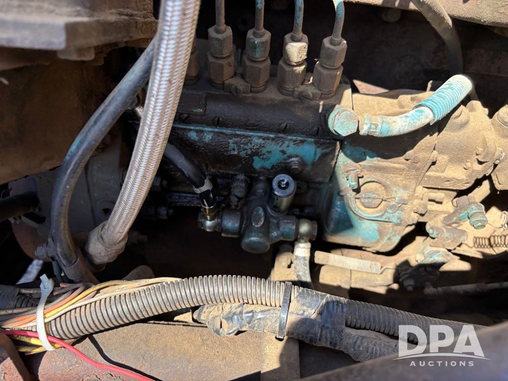 1990 International 4700 Plow Truck (DR12260), DT466 diesel engine, 5 speed 4 range transmission, single axle, air brakes, 12' front hydraulic blade, 10' steel dump box, rear pintle hitch, cab hat/air conditioning, 10.00R 20 tires, odometer reads 123,265 miles.