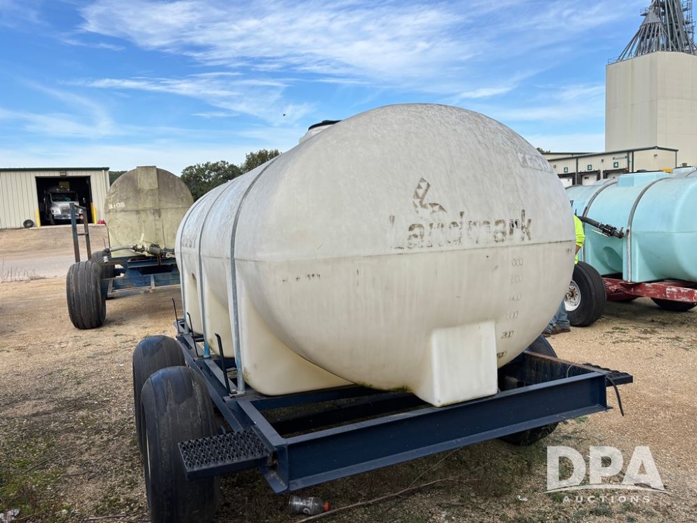 Liquid Nurse Trailer (DR12330), 1,300 gallon poly liquid tank, tank has a hole near the top seen in pictures, Duo Lift tandem axle running gear, 12.5L-15 tires.