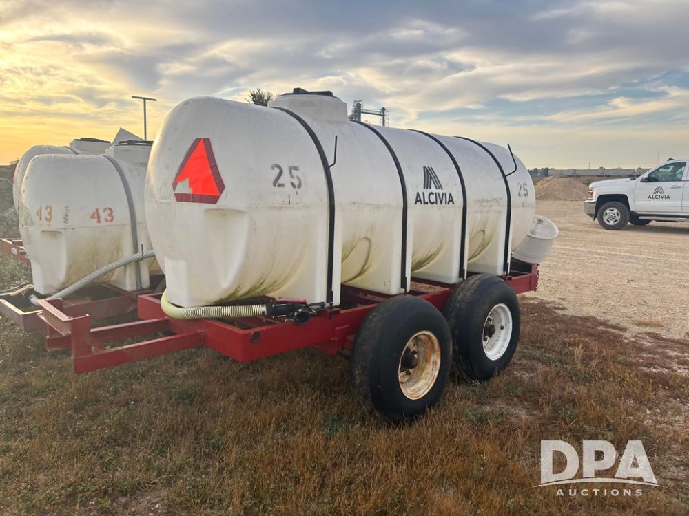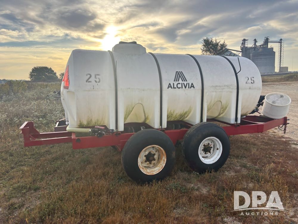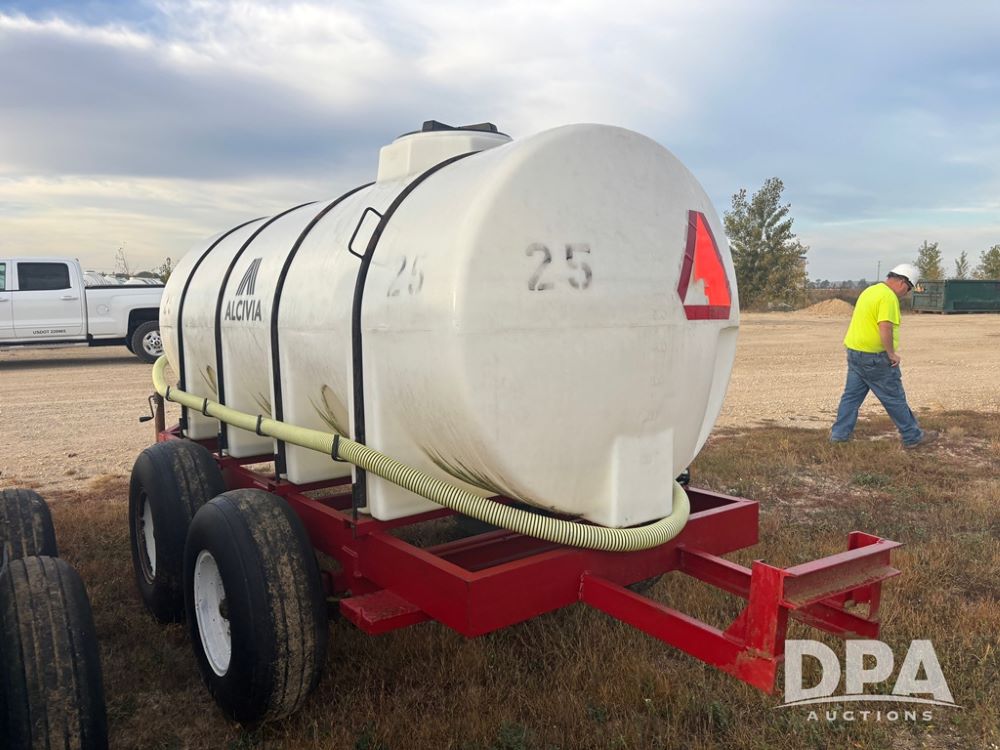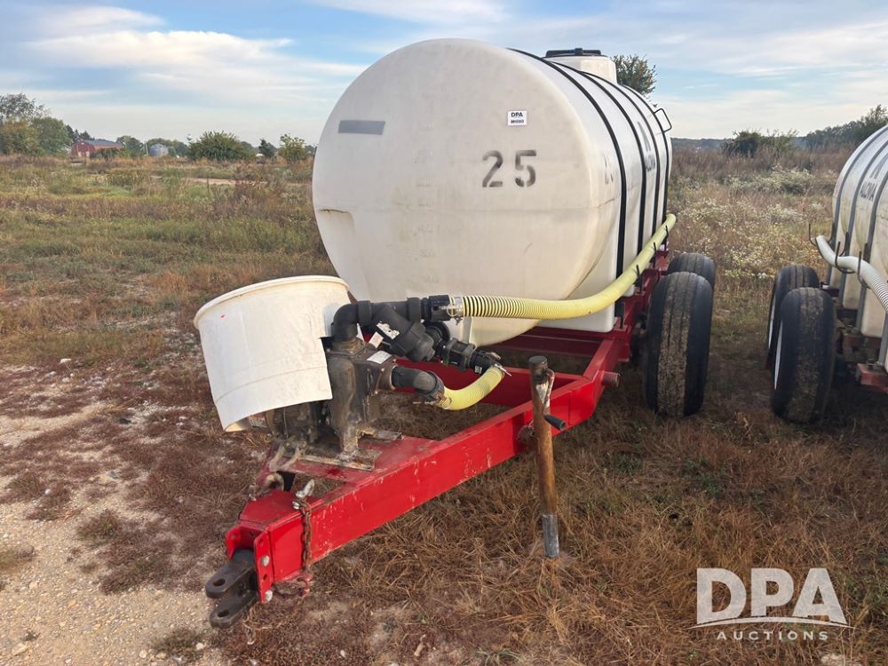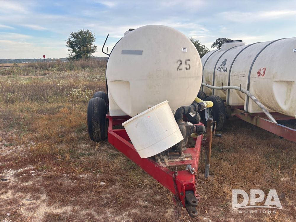 Liquid Nurse Trailer (DR12323 Unit 25), 1,000 gallon poly liquid nurse tank, gas engine (needs work), liquid pump, tandem axle gear, 12.5L-15 tires.