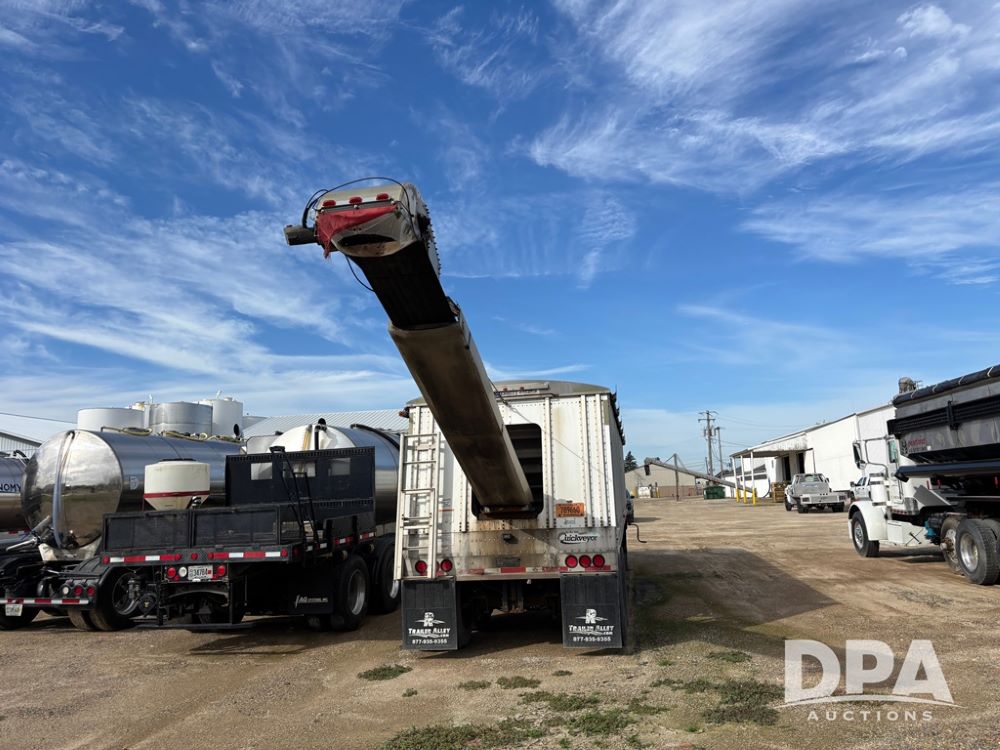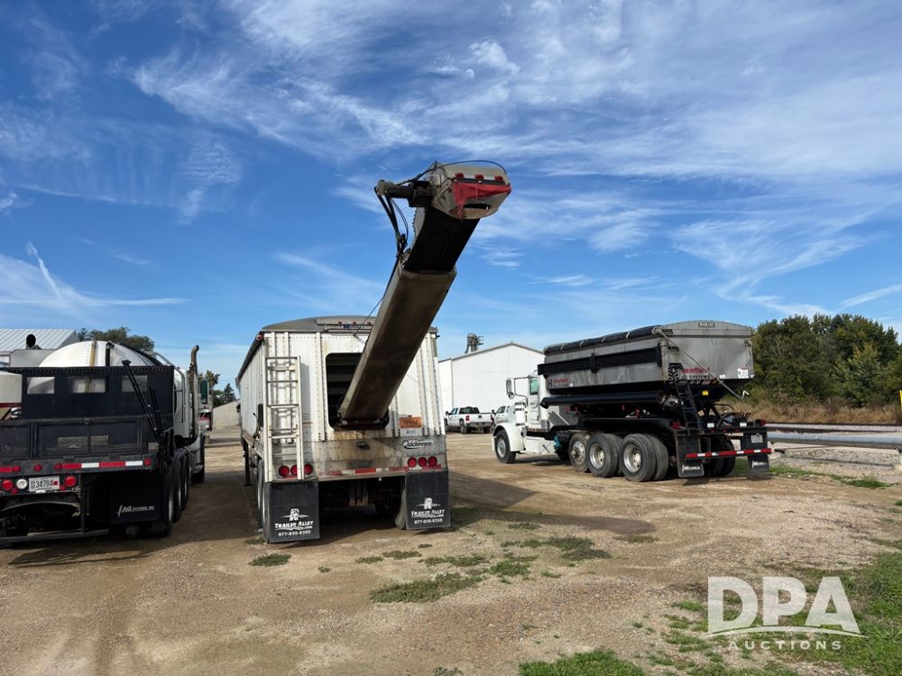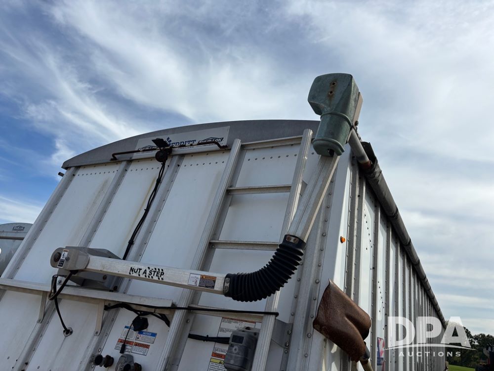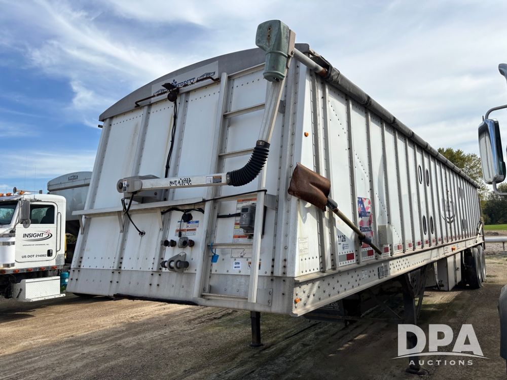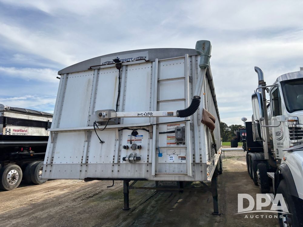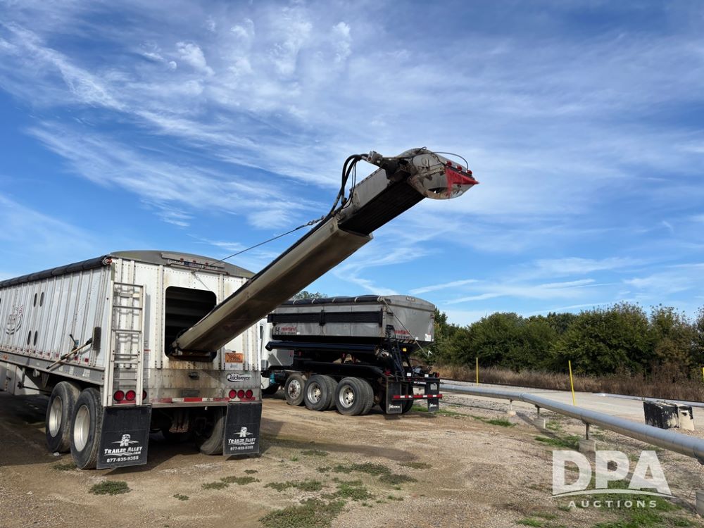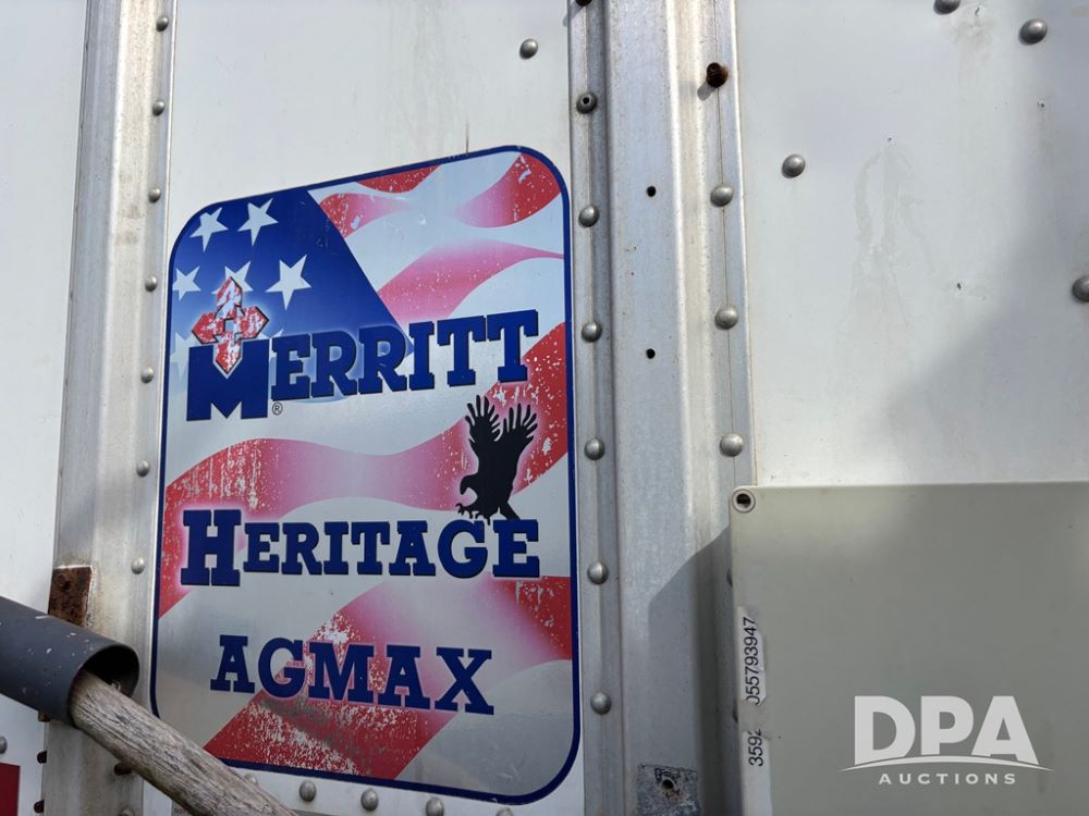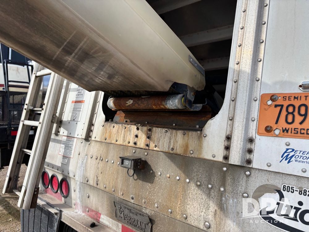 2018 Merritt Dry Trailer (DR12333 Unit 4826), 40' aluminum hopper trailer, Quick Veyor hydraulic components, self contained hydraulics w/gas engine and electric start, rear discharge conveyor, electric roll tarp, hopper vibrators, wired for rear camera, tandem axle, air ride suspension, 22.5 tires, aluminum wheels.
