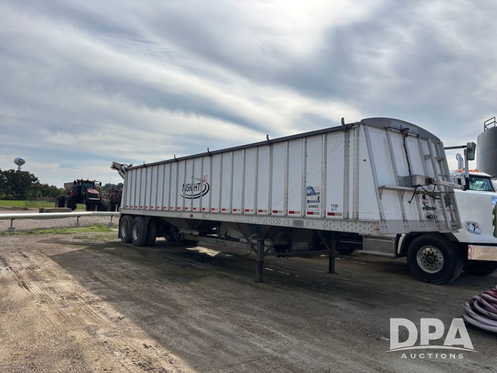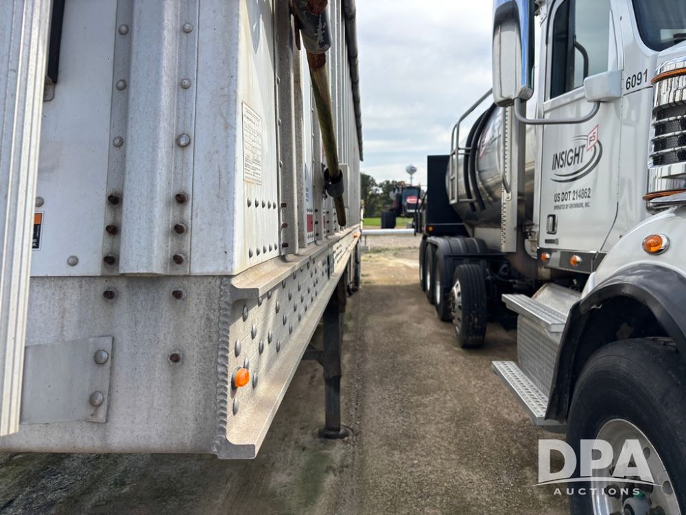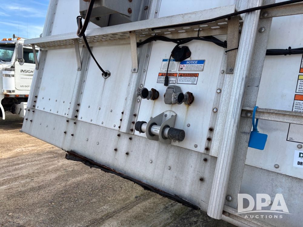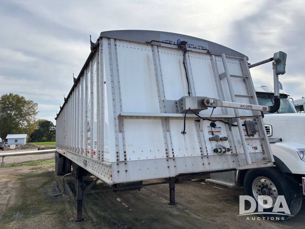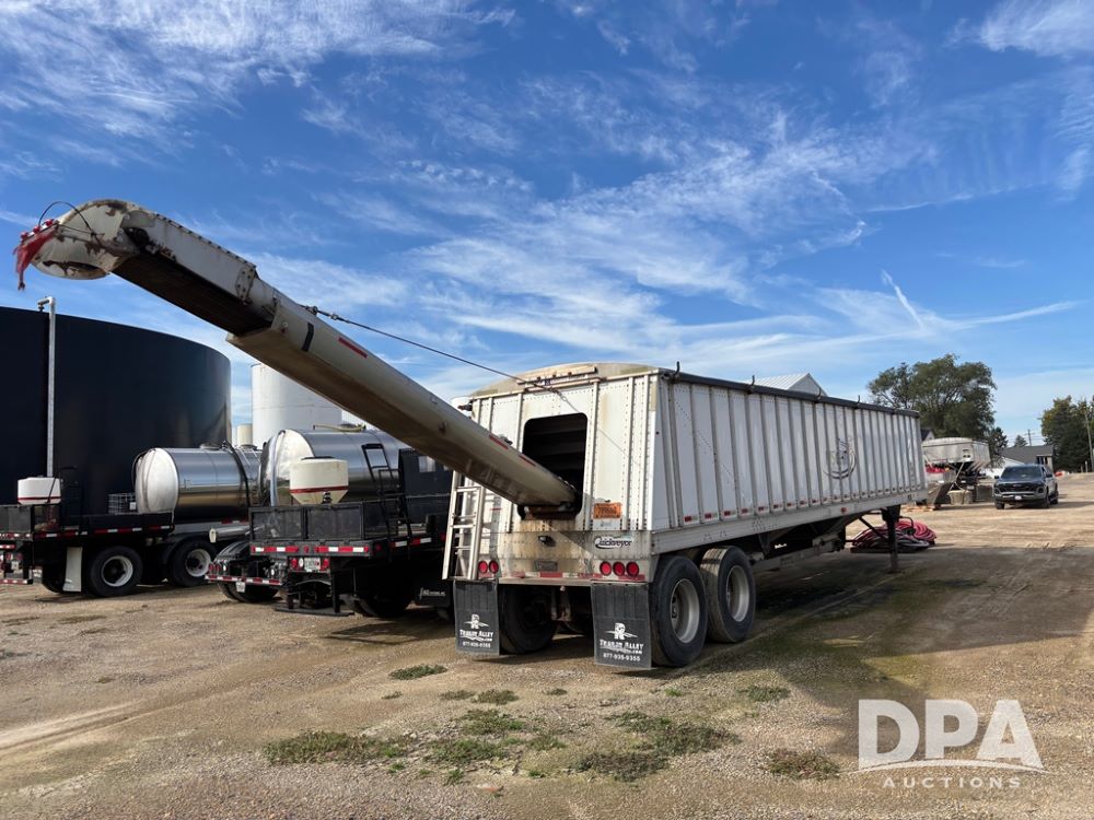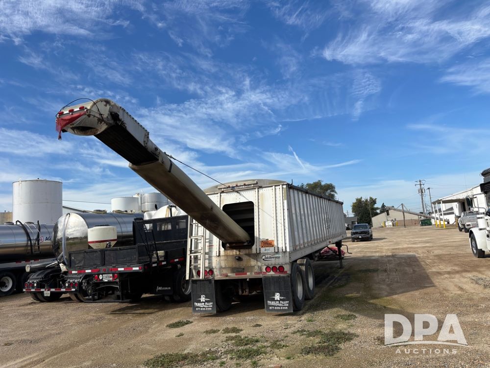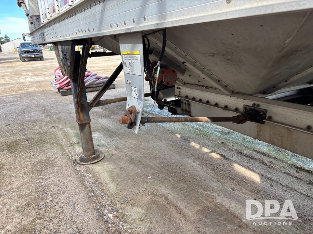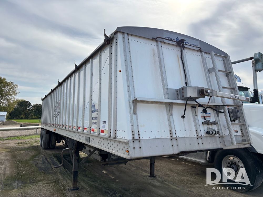 2018 Merritt Dry Trailer (DR12333 Unit 4826), 40' aluminum hopper trailer, Quick Veyor hydraulic components, self contained hydraulics w/gas engine and electric start, rear discharge conveyor, electric roll tarp, hopper vibrators, wired for rear camera, tandem axle, air ride suspension, 22.5 tires, aluminum wheels.