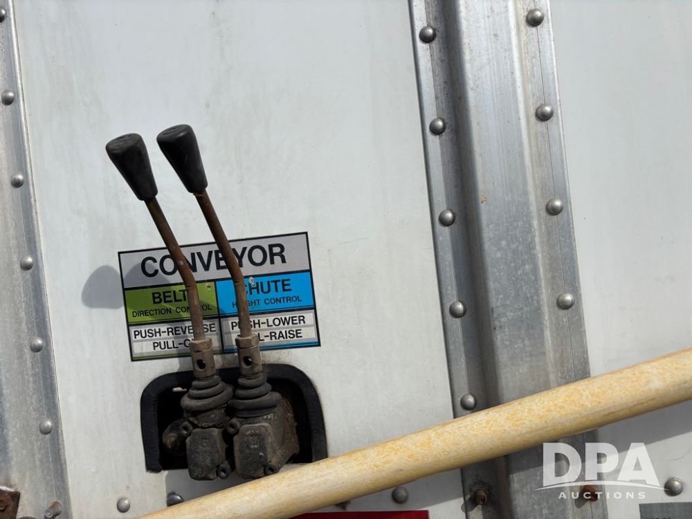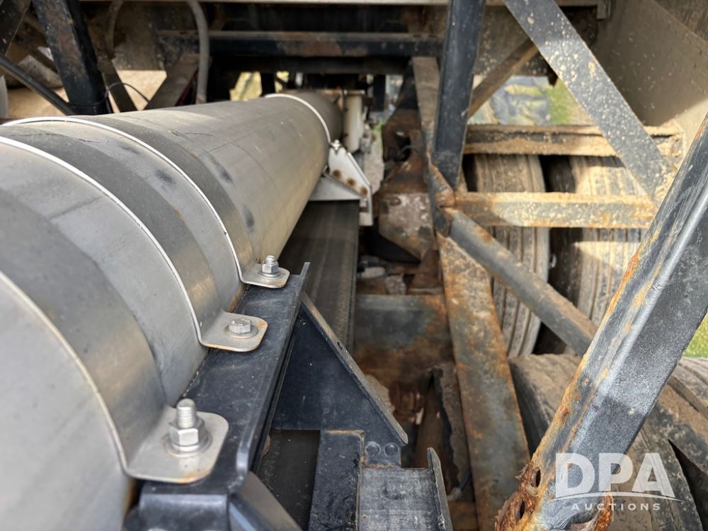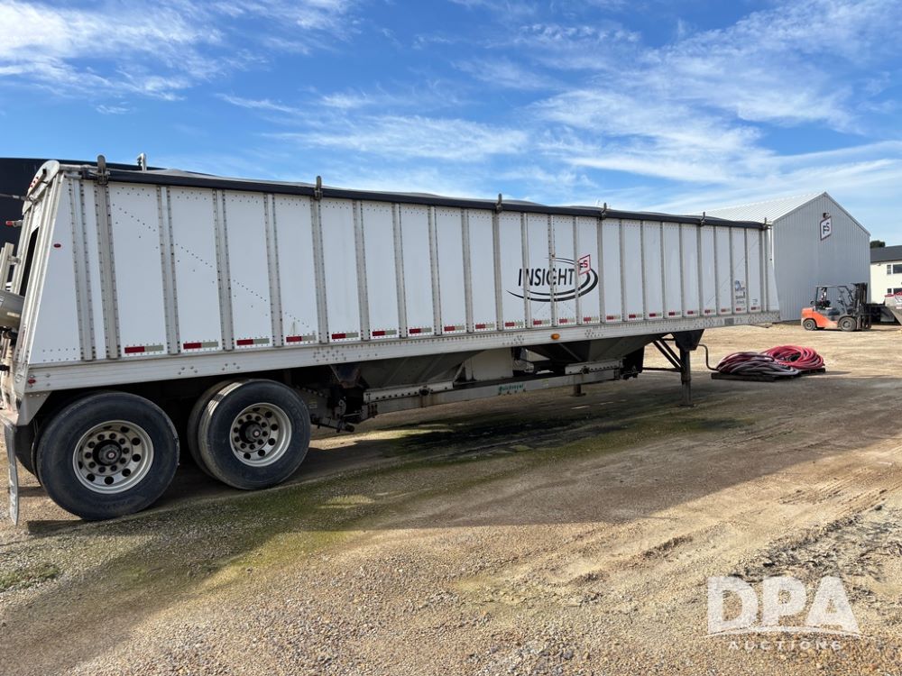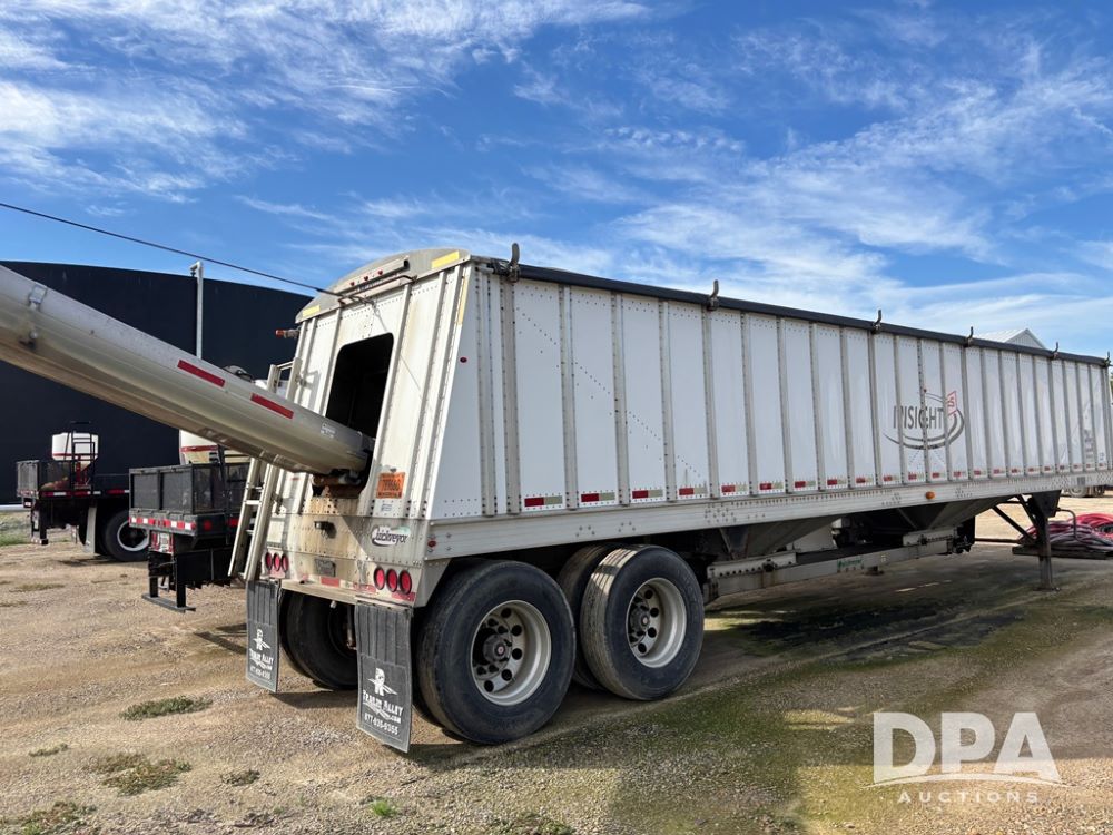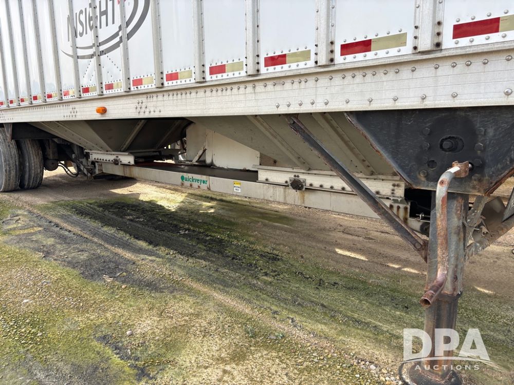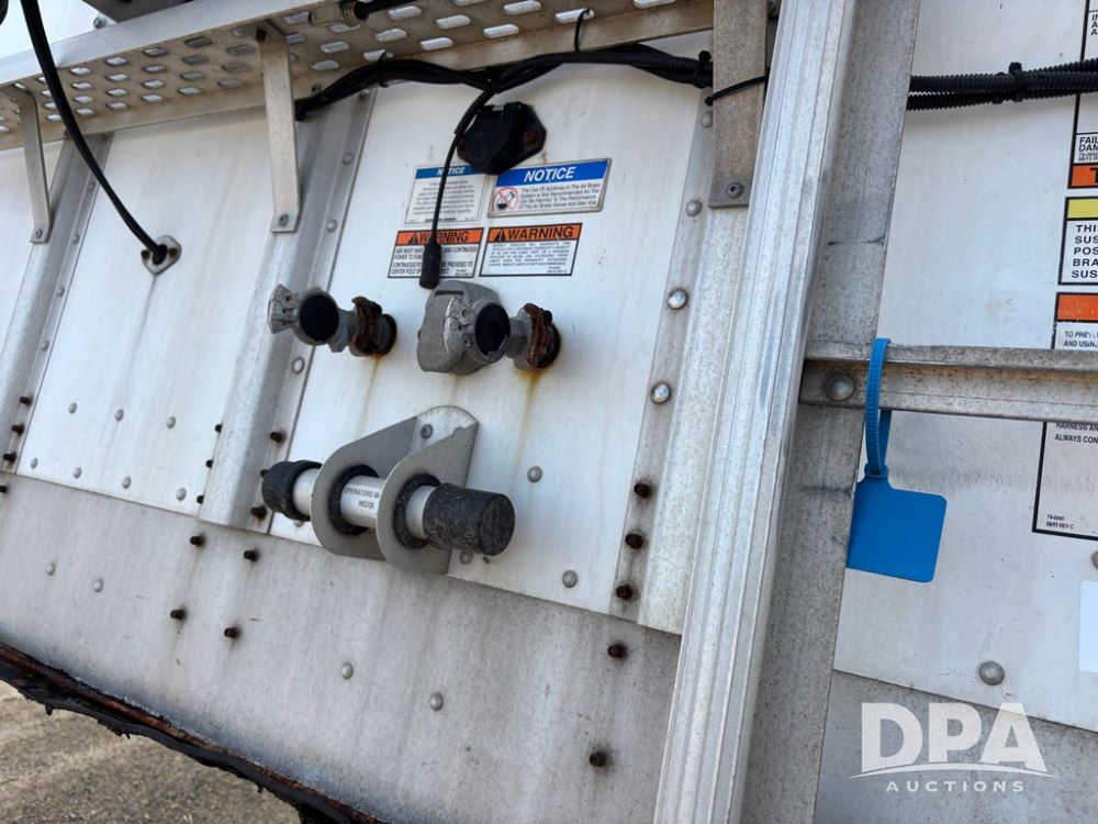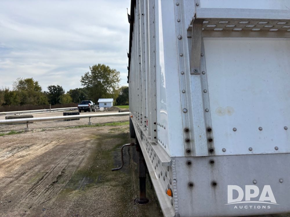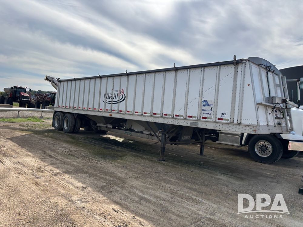 2018 Merritt Dry Trailer (DR12333 Unit 4826), 40' aluminum hopper trailer, Quick Veyor hydraulic components, self contained hydraulics w/gas engine and electric start, rear discharge conveyor, electric roll tarp, hopper vibrators, wired for rear camera, tandem axle, air ride suspension, 22.5 tires, aluminum wheels.