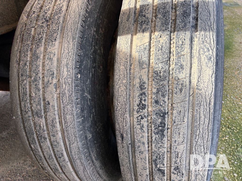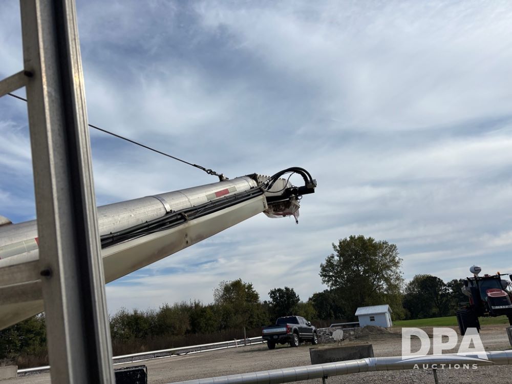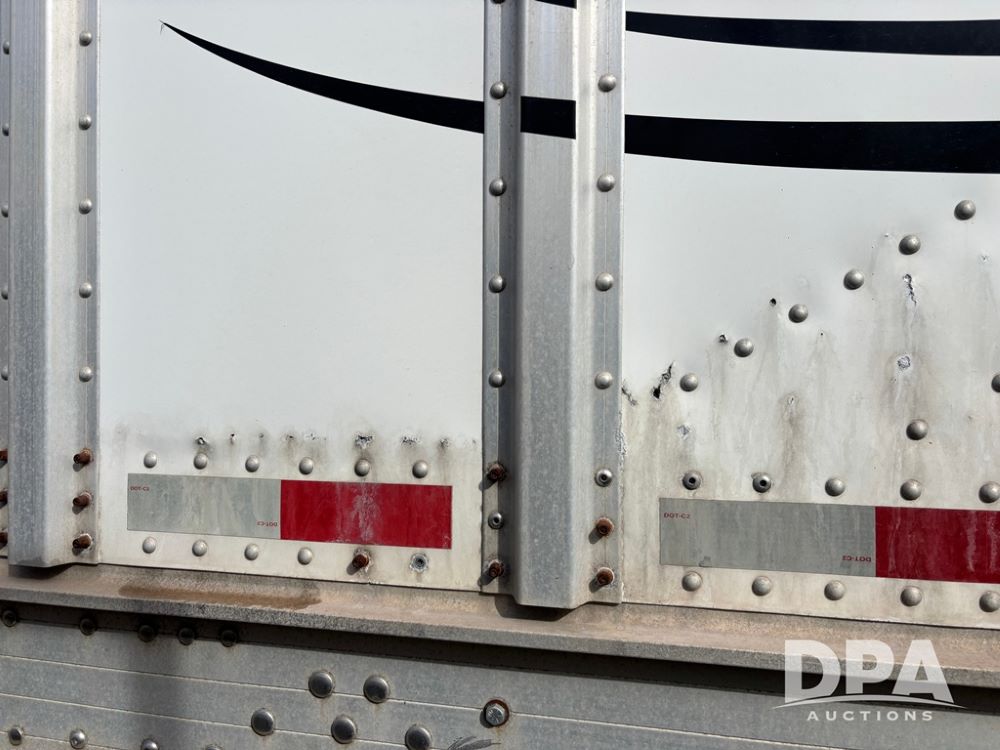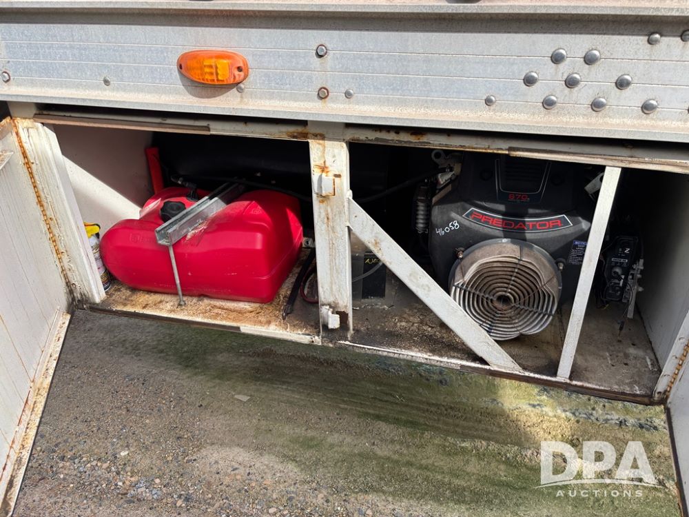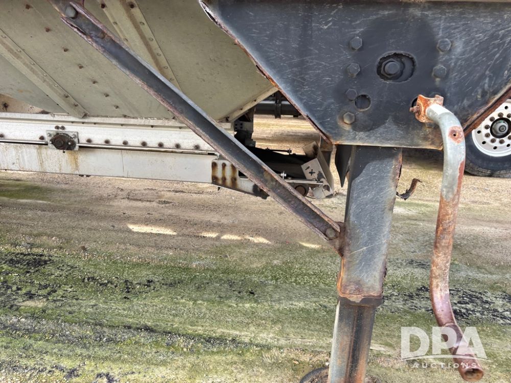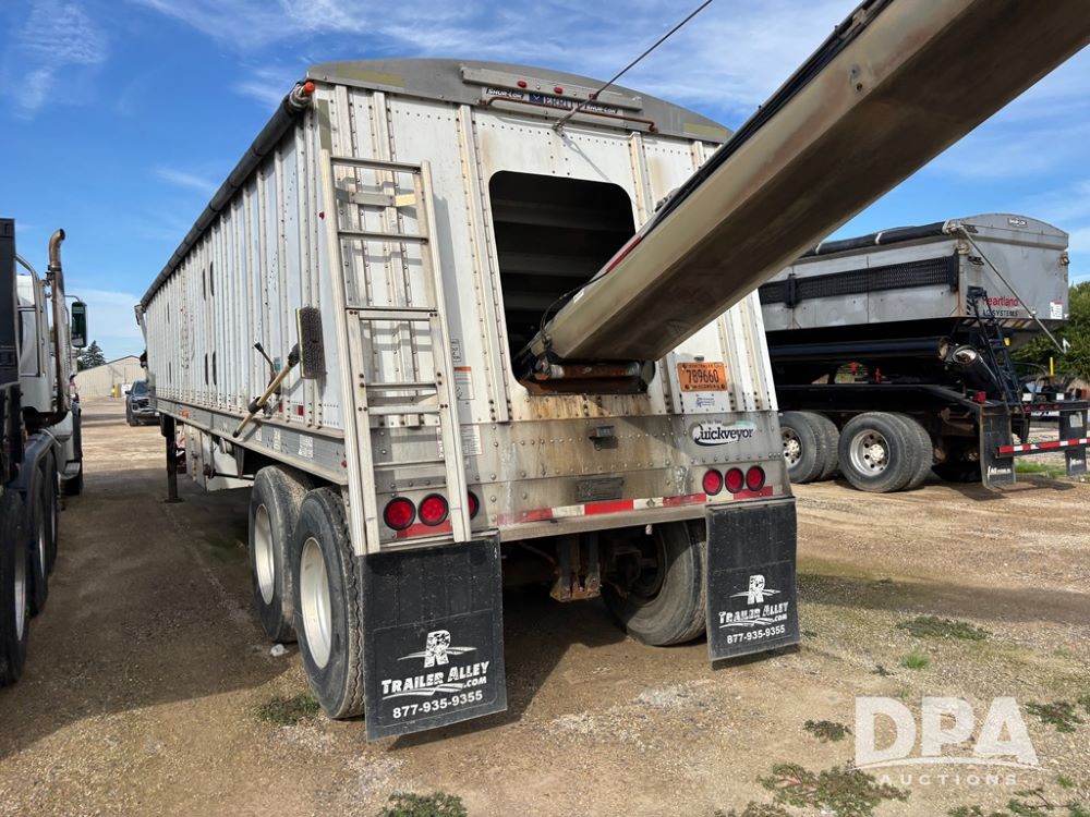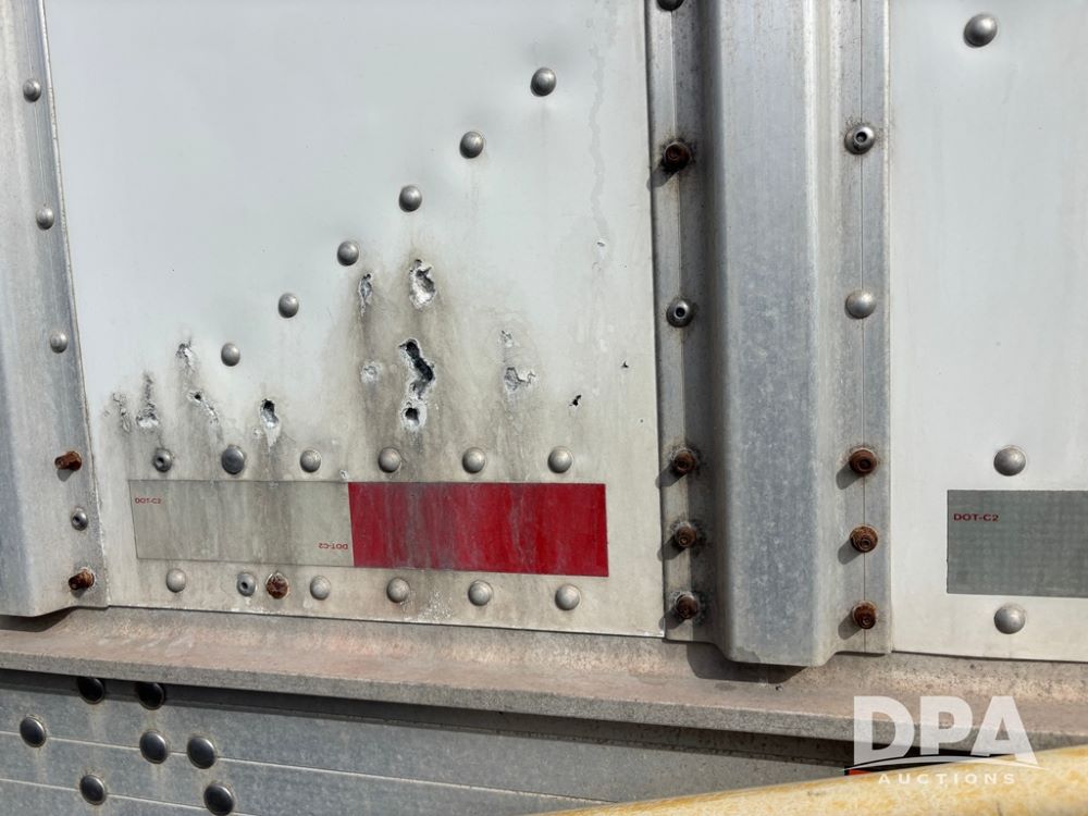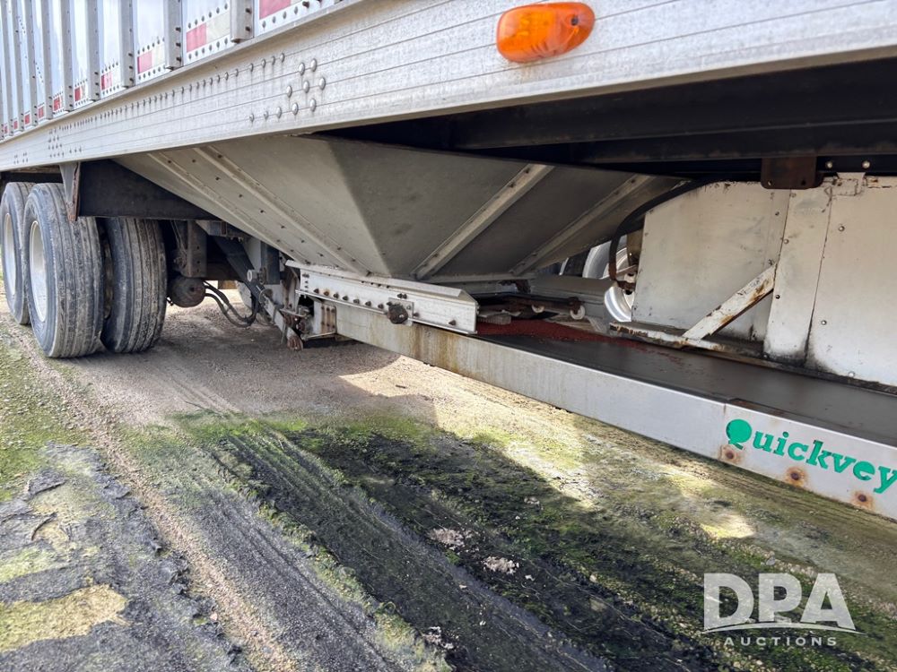 2018 Merritt Dry Trailer (DR12333 Unit 4826), 40' aluminum hopper trailer, Quick Veyor hydraulic components, self contained hydraulics w/gas engine and electric start, rear discharge conveyor, electric roll tarp, hopper vibrators, wired for rear camera, tandem axle, air ride suspension, 22.5 tires, aluminum wheels.