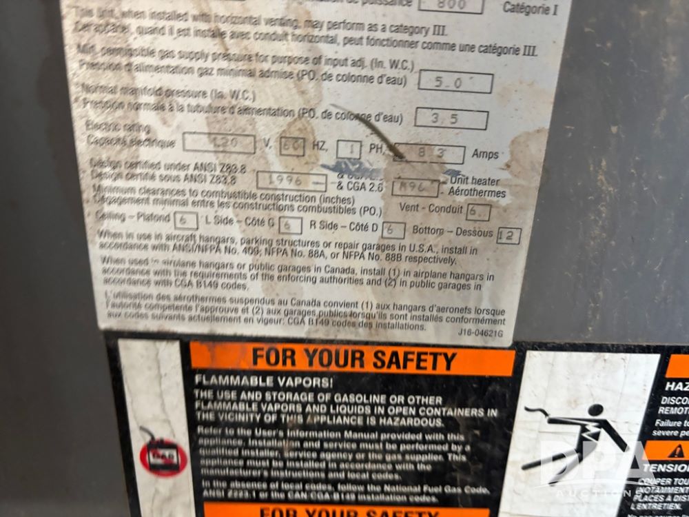 Sterling Furnace (DR12345), model TF-250 hanging shop furnace, set up on Natural gas, 202,500 BTU output.