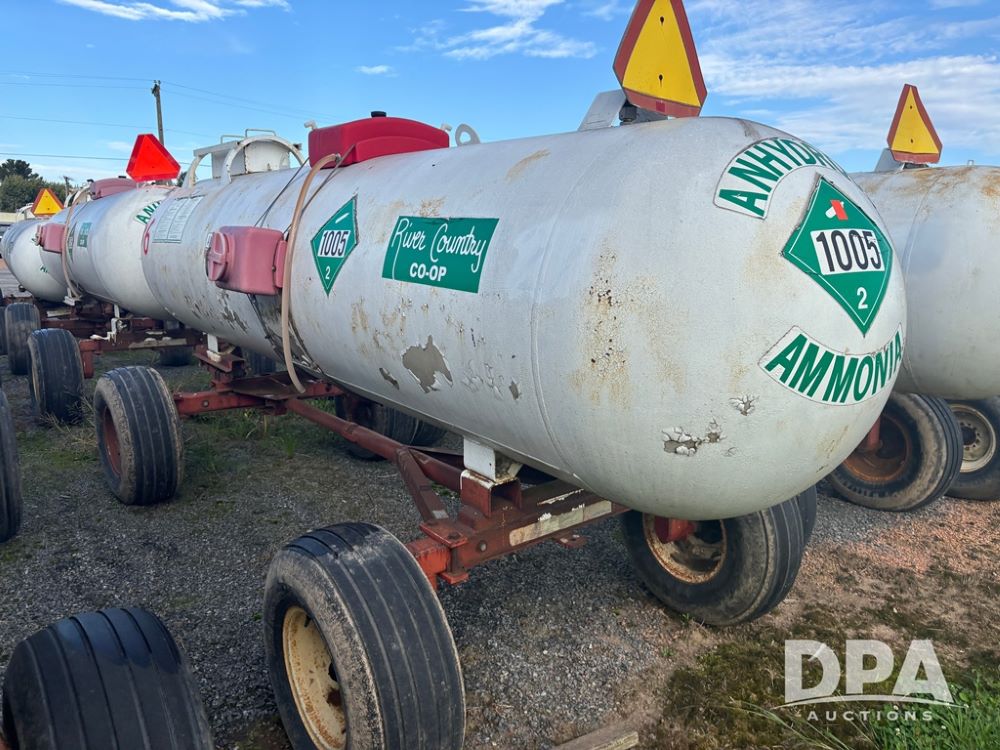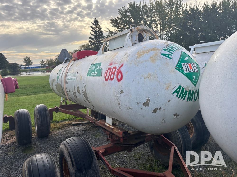 Nh3 Nurse Tank (DR12360 Unit DB-6), 1,000 gallon top front fill Nh3 tank, data tag, 5th wheel running gear w/adjustable axles, 12.5L-15 tires.
