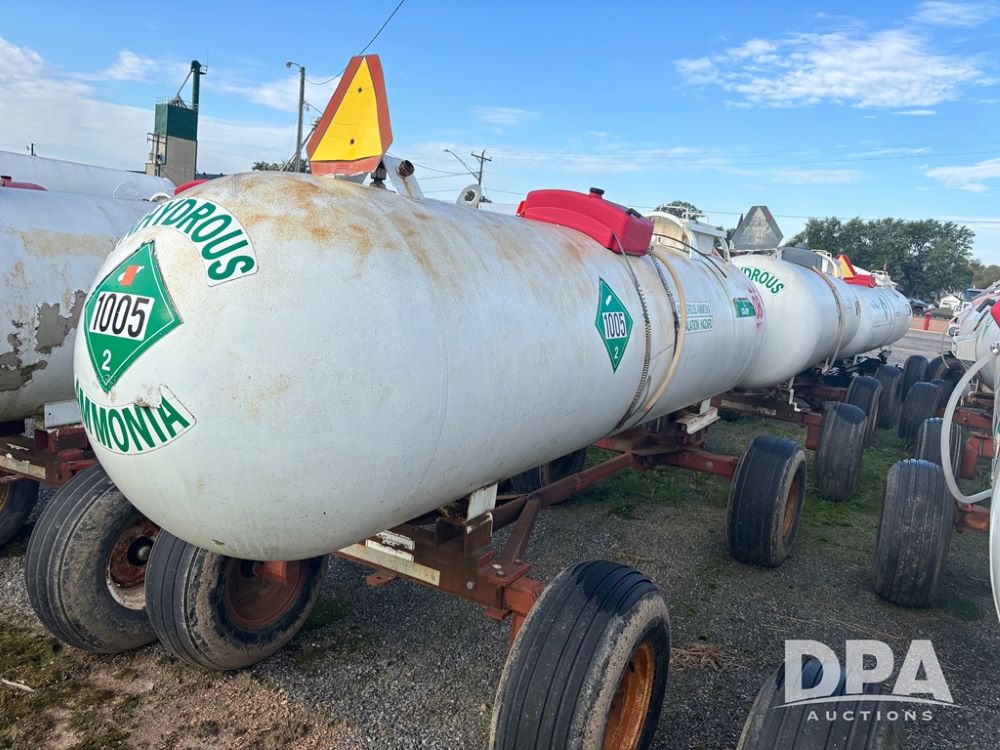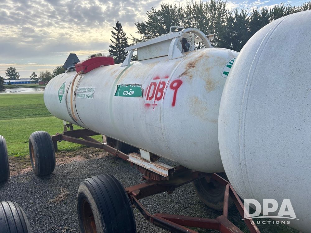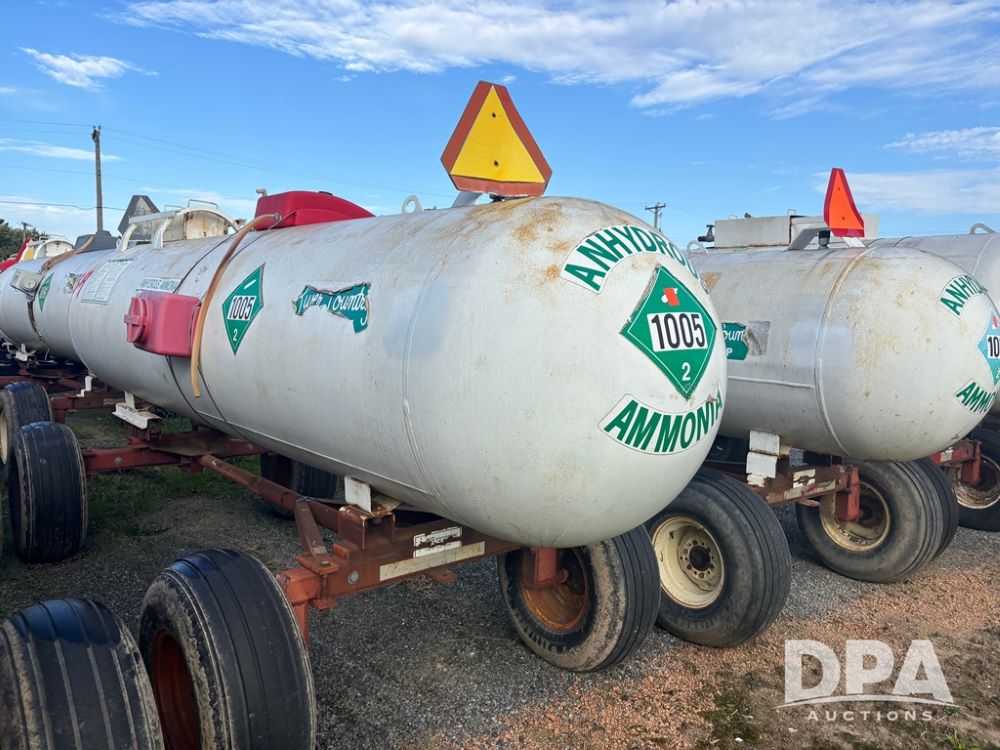 Nh3 Nurse Tank (DR12365 Unit DB-9), 1,000 gallon top front fill Nh3 tank, data tag, 5th wheel running gear w/adjustable axles, 12.5L-15 tires.