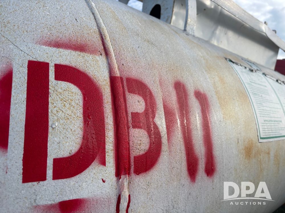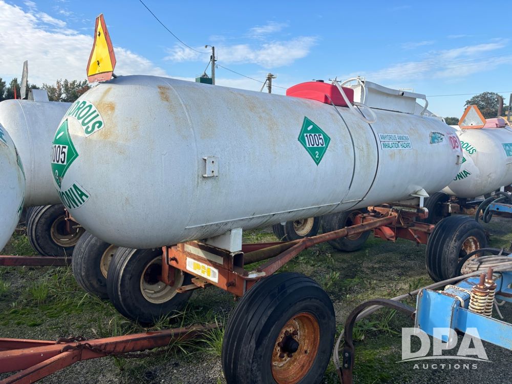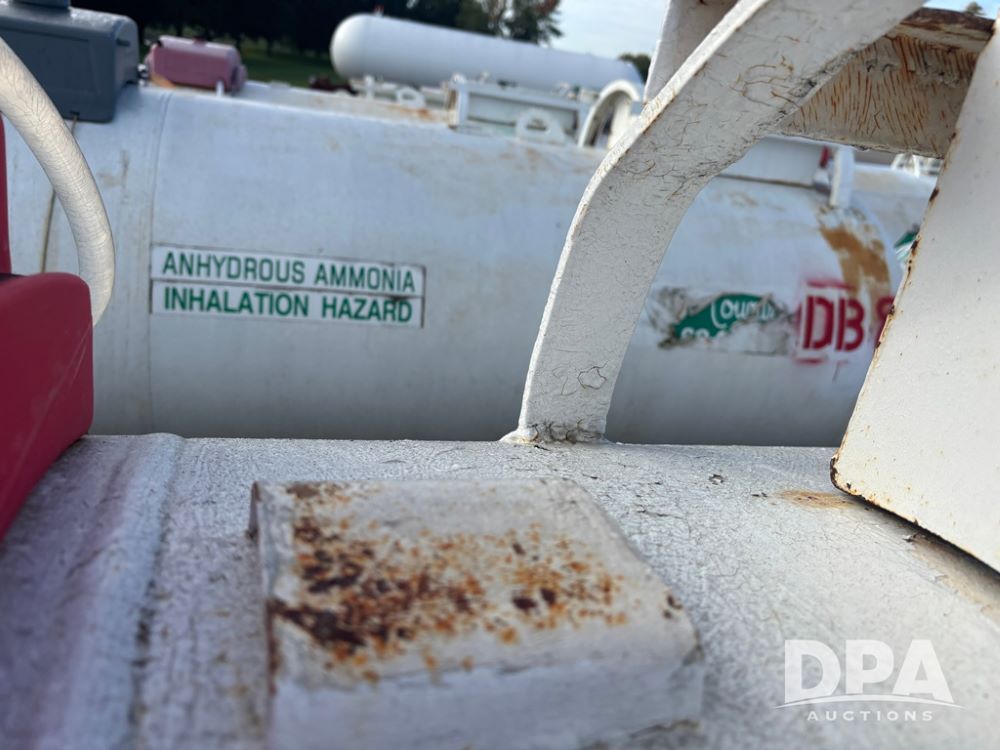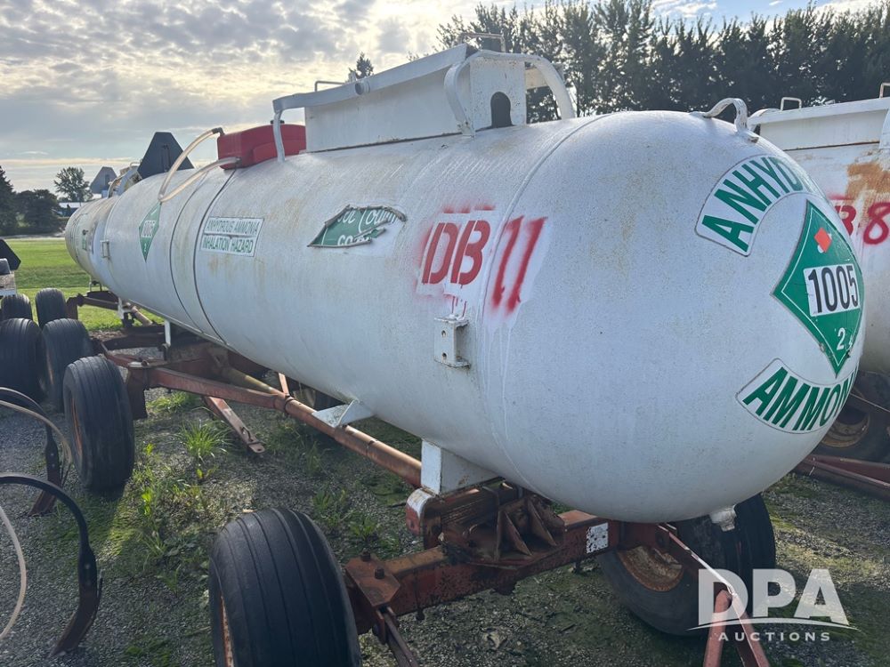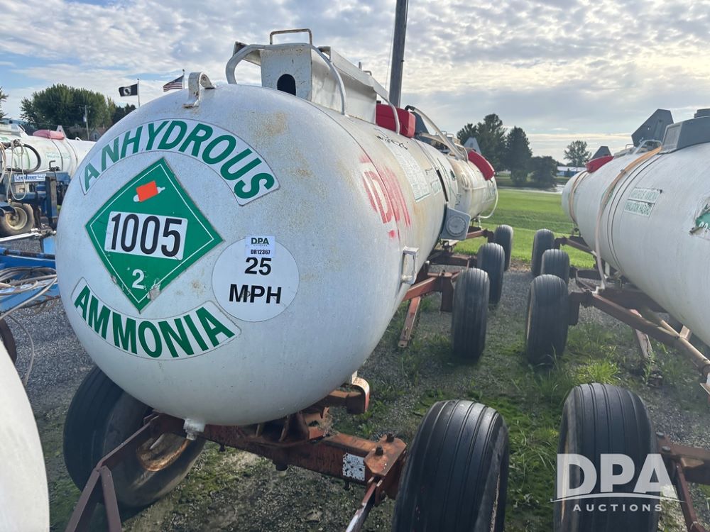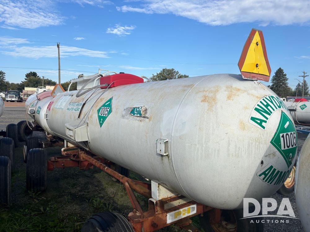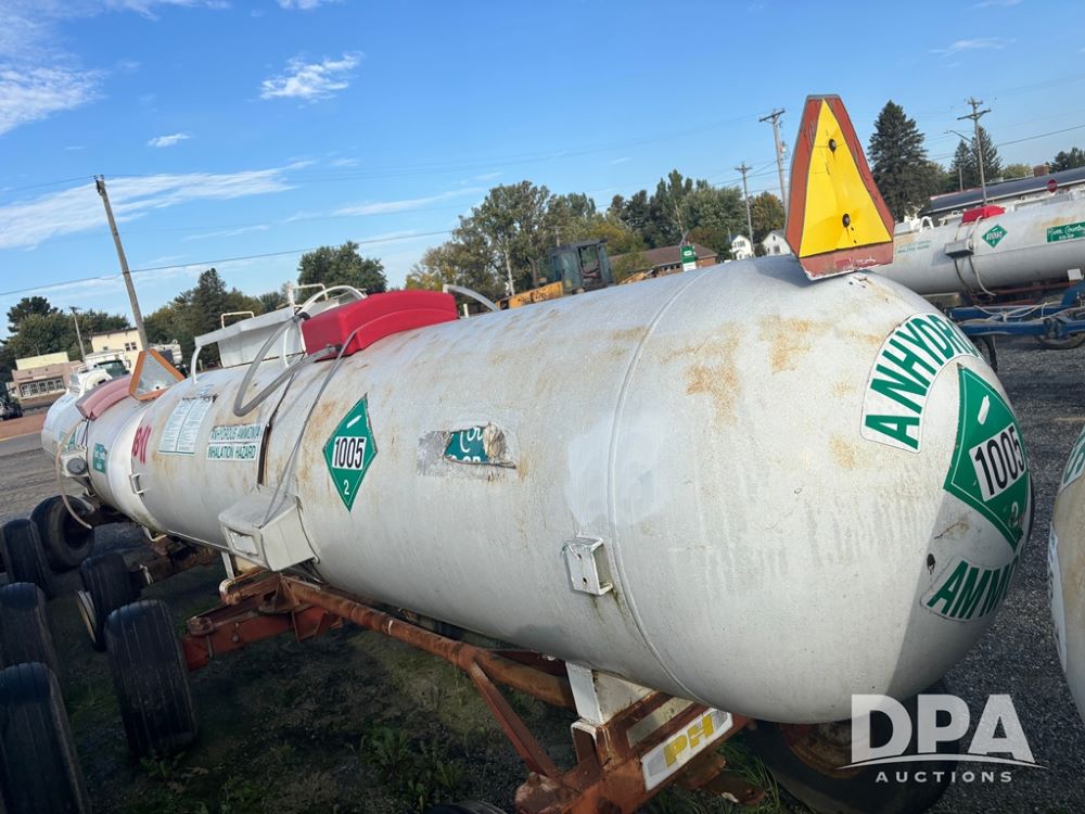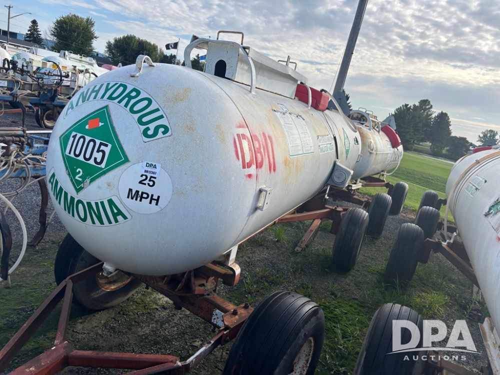 Nh3 Nurse Tank (DR12367 Unit DB-11), 1,000 gallon top front fill Nh3 tank, data tag, 5th wheel running gear w/adjustable axles, 12.5L-15 tires.