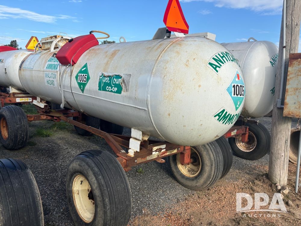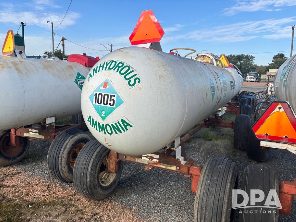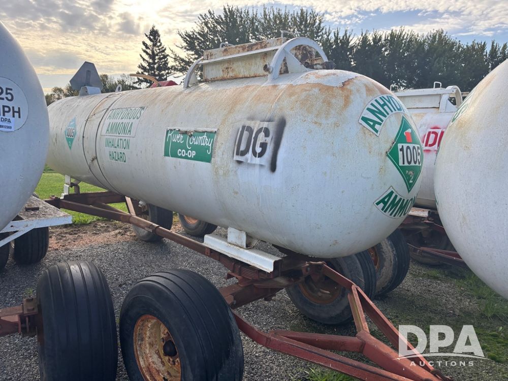 Nh3 Nurse Tank (DR12368 Unit DG-1), 1,000 gallon top front fill Nh3 tank, NO data tag, 5th wheel running gear w/adjustable axles, 12.5L-15 tires.