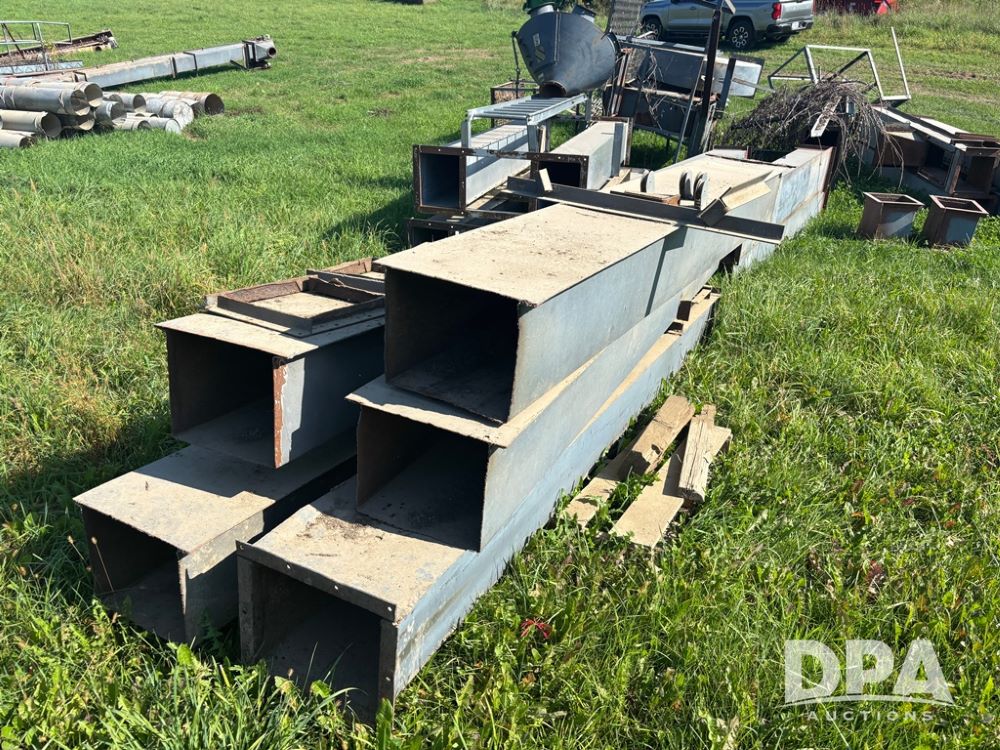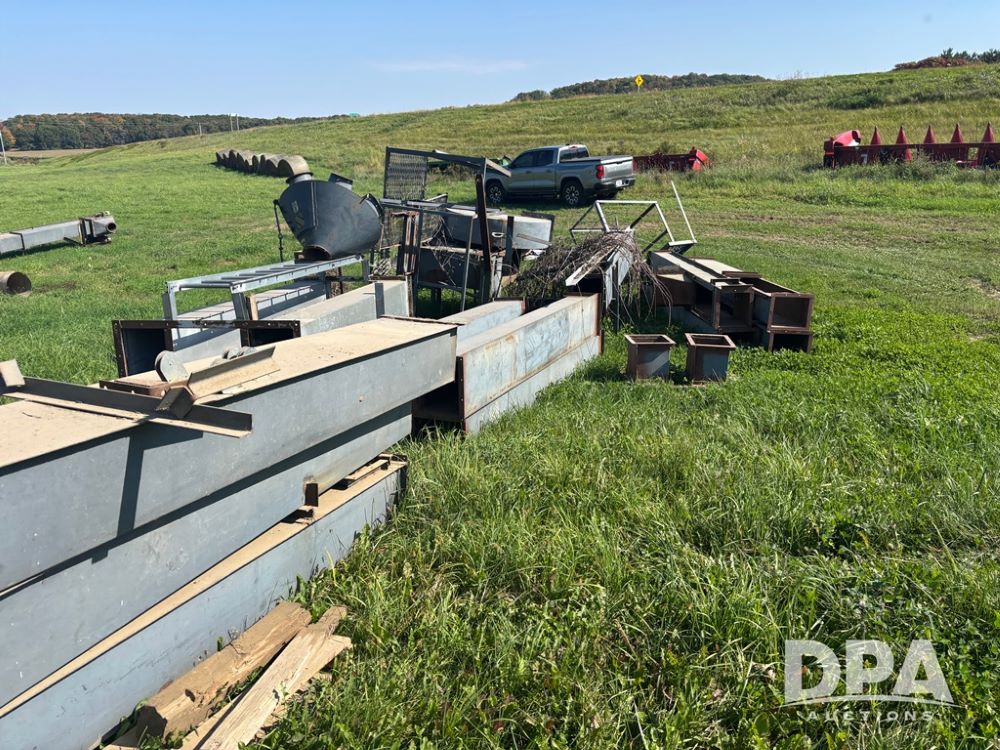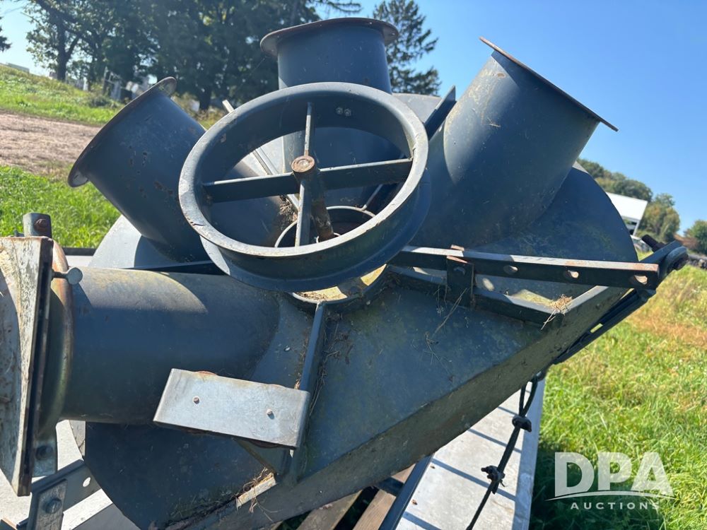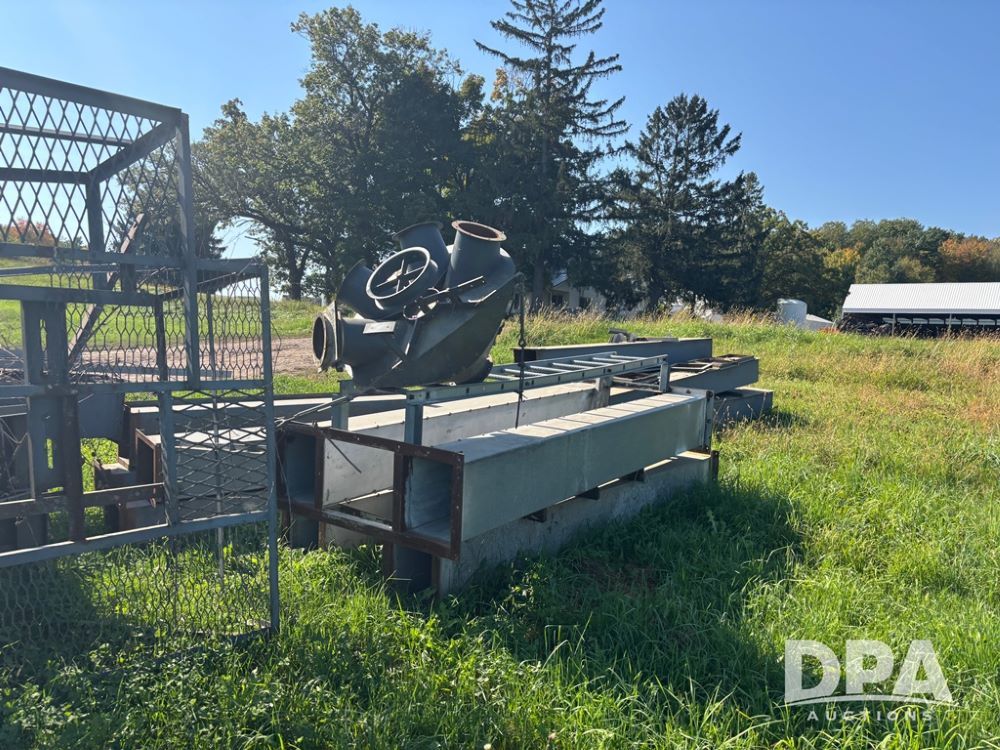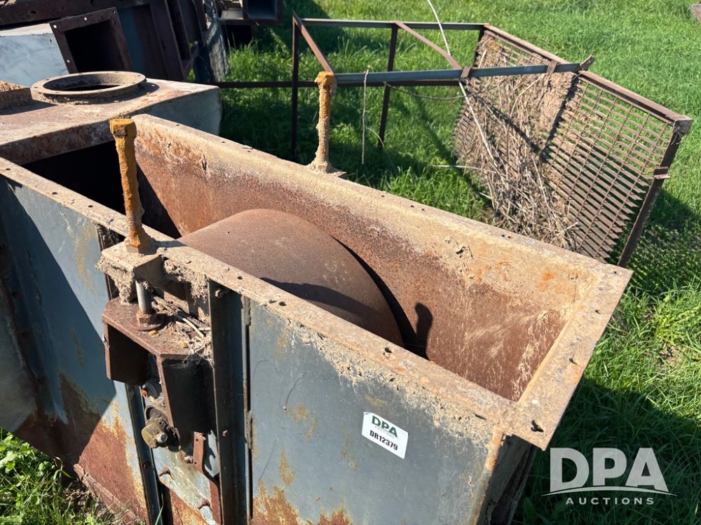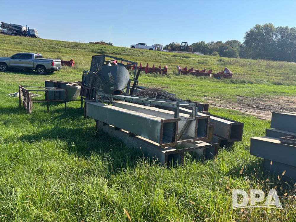 Grain Leg (DR12379), approximately 90' receiving leg, 3500 BPH capacity, has belt and cups stored inside, has head drive but NO electric motor, includes 4 hole 8'' distributor, top work platform, many of the ends of trunk have been redone.