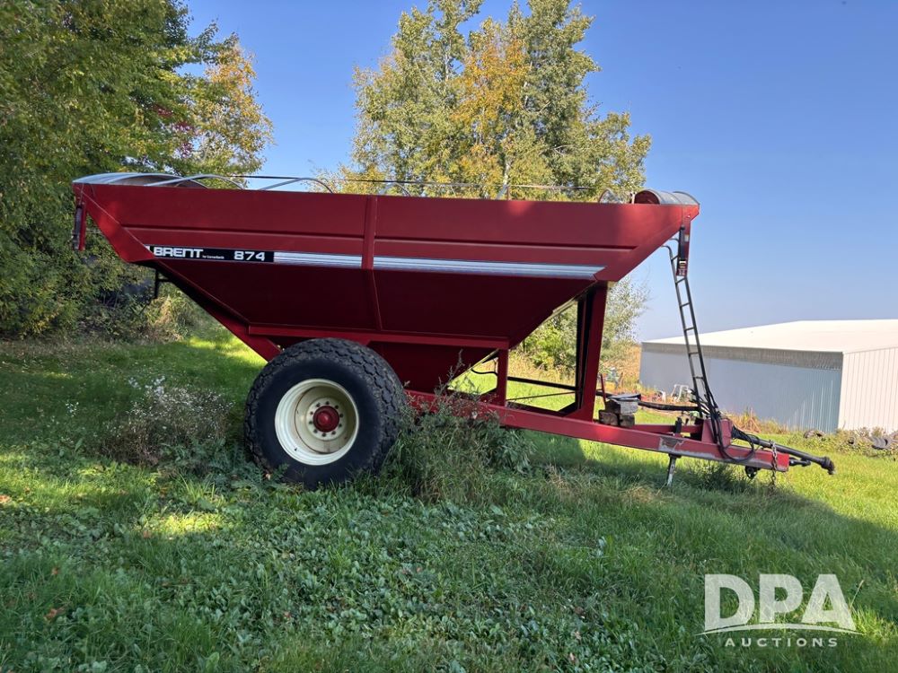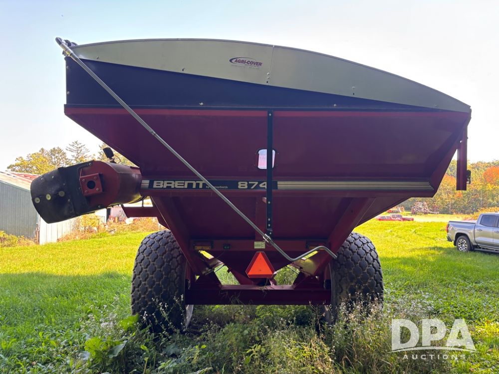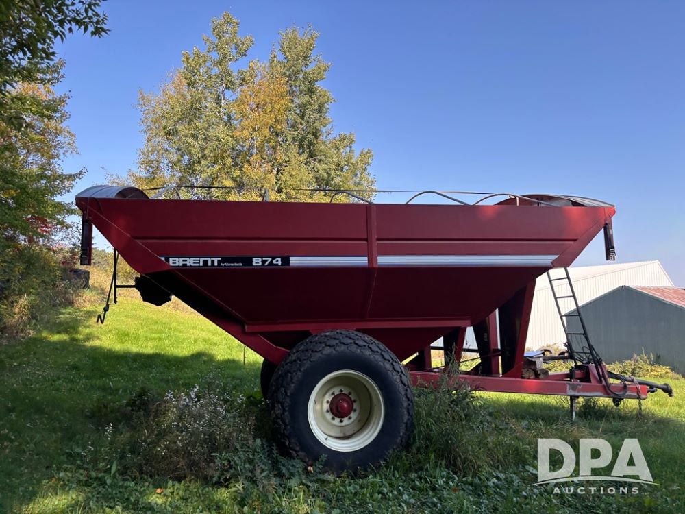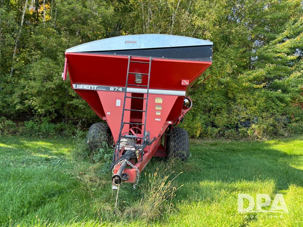 Brent 874 Grain Cart (DR12393), hydraulic grain cart, side extensions and roll tarp, Central City scale, includes Libra system, rear camera, PTO drive, 30.5L-32 tires.