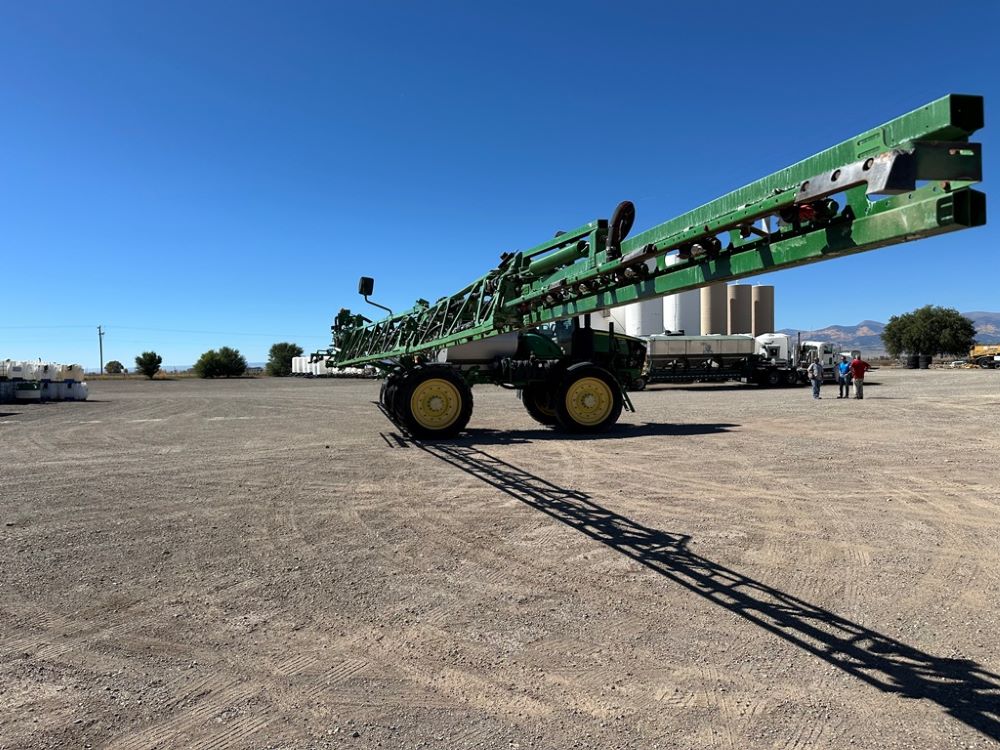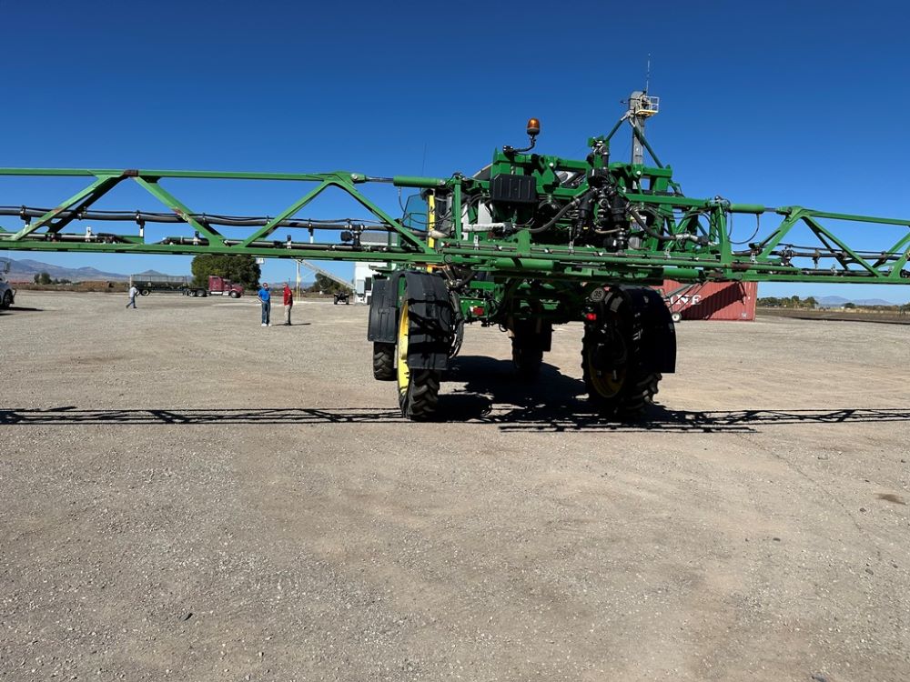 2015 John Deere R4045 (CP1152), John Deere diesel engine, 1200 gallon stainless steel liquid system, 120' boom, 5 way nozzle bodies, saddle mounted poly rinse tank, Star 3000 receiver, John Deere Green Star controller, leather interior, buddy seat, cab heat/air conditioning, AM/FM CD radio, 380/105R50 row crop tires, shows 6232 hours.