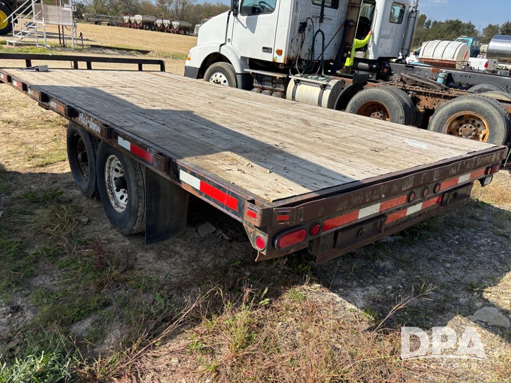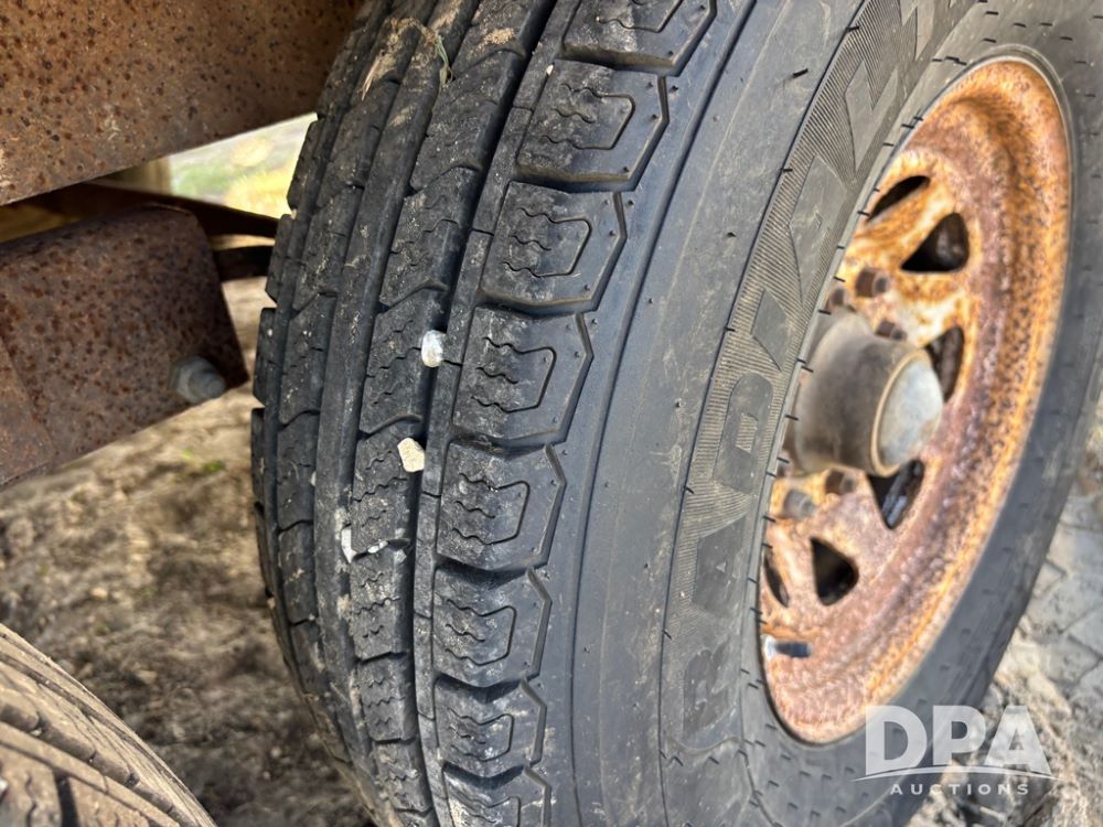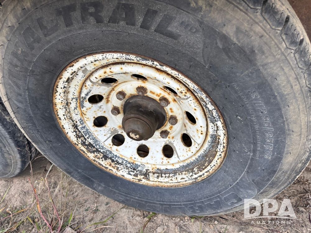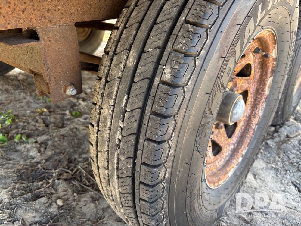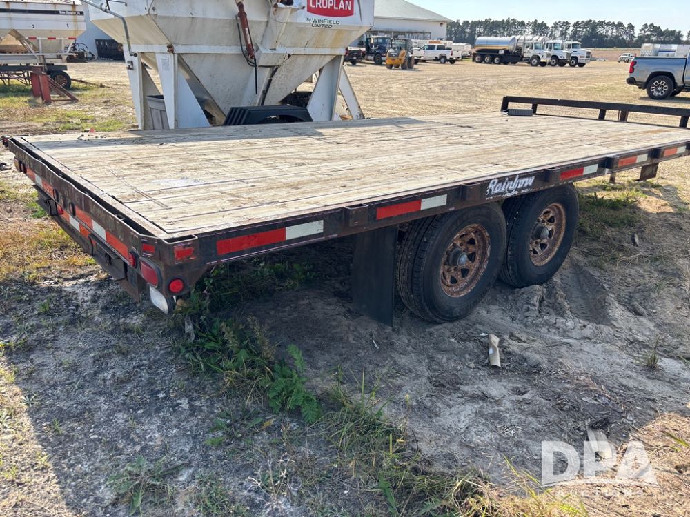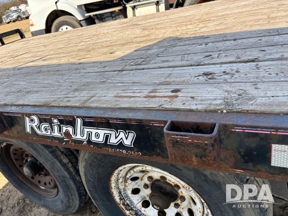 Rainbow Brand Trailer (DR12404 Unit 5035), 18' X 96'', wood deck trailer, rear pull out ramps, side stake pockets, tandem axle 235/85R16 tires.
