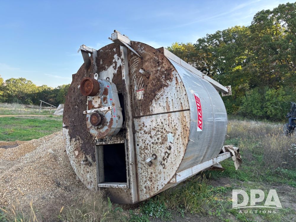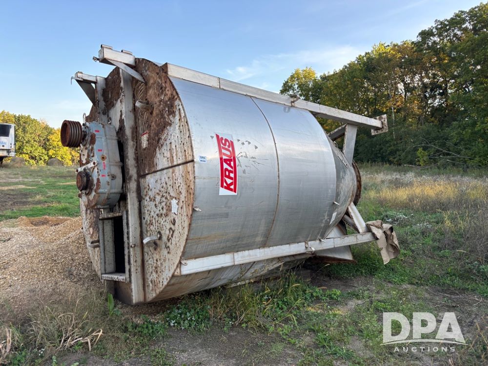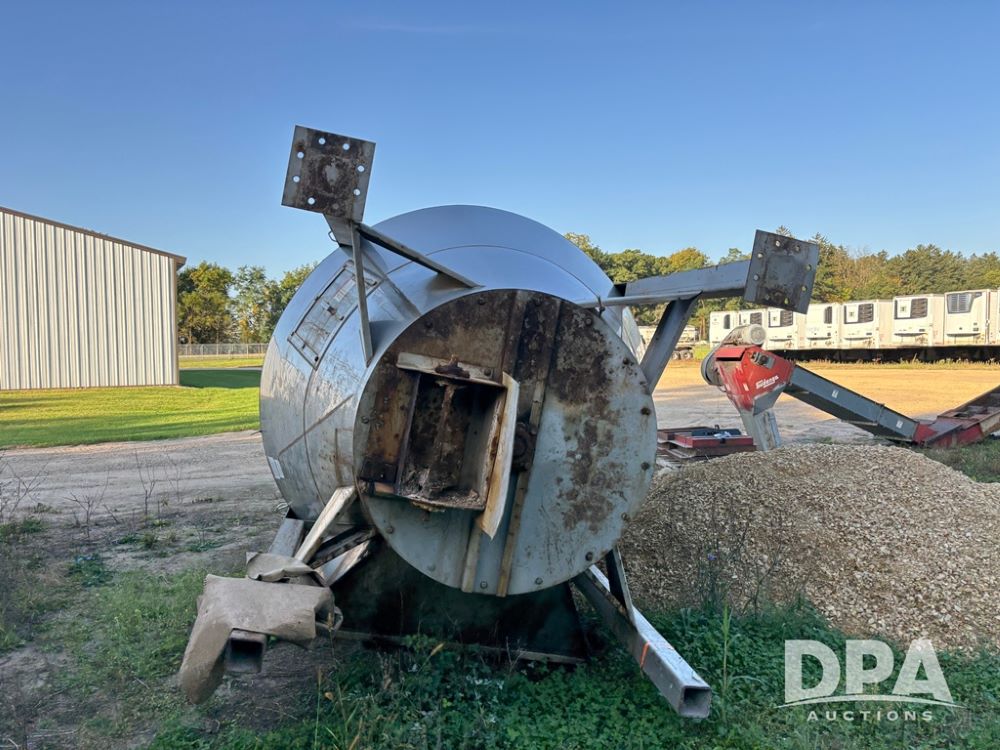 Krause Dry Blender (DR12429), 10 ton stainless steel vertical dry blender, top drive motor and gear reducer, receiving hopper, control box, scale frame and digital scale head is inside.