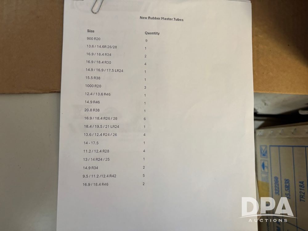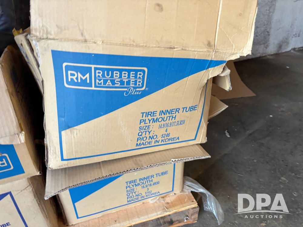NEW Inner Tubes (DR12415), pallet lot of NEW never used Rubber Master brand tubes, approximately 50 in all, complete list can be seen in pictures.