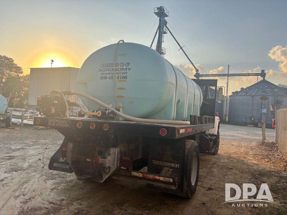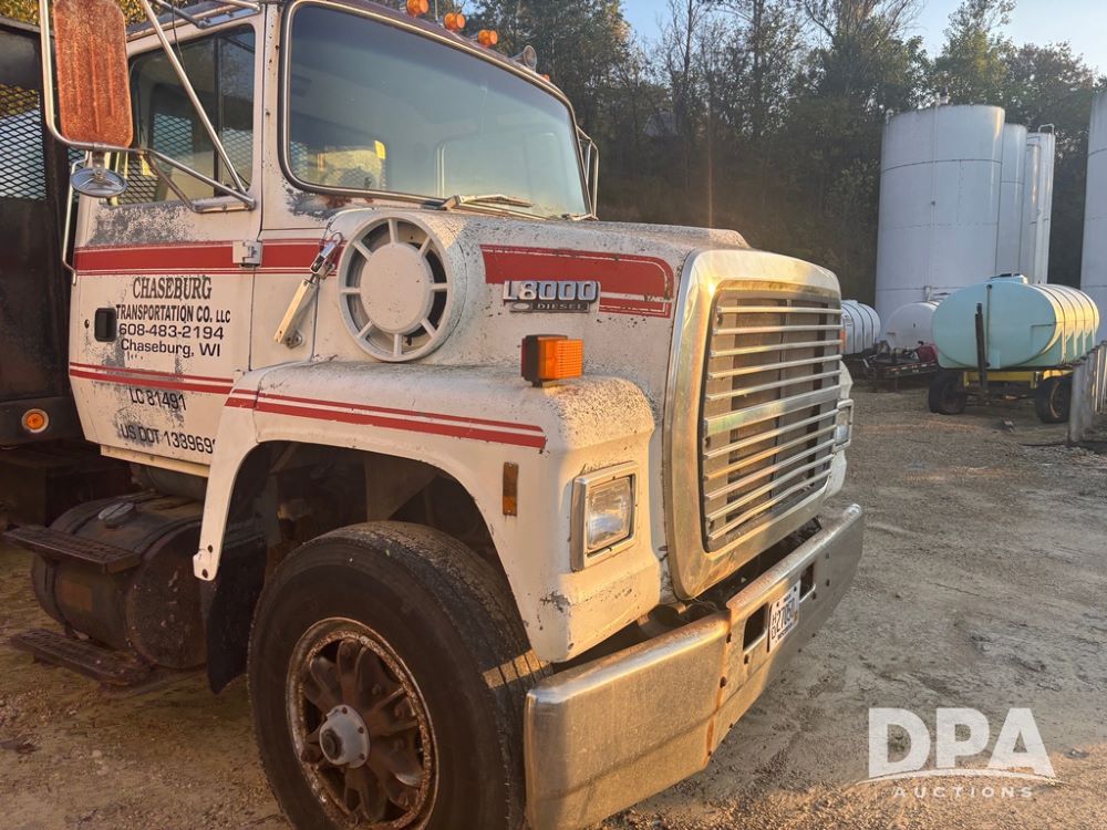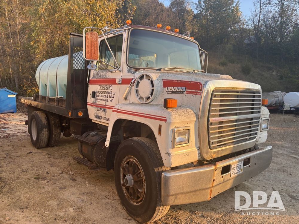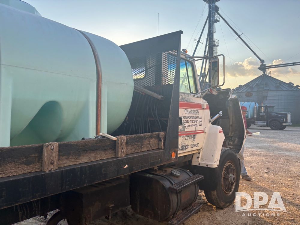 Ford L8000 (DR12418), diesel engine, 5 speed transmission, single axle, air brakes, 1,200 gallon poly liquid tank, gas engine w/liquid pump, 22.5 tires on Dayton wheels.