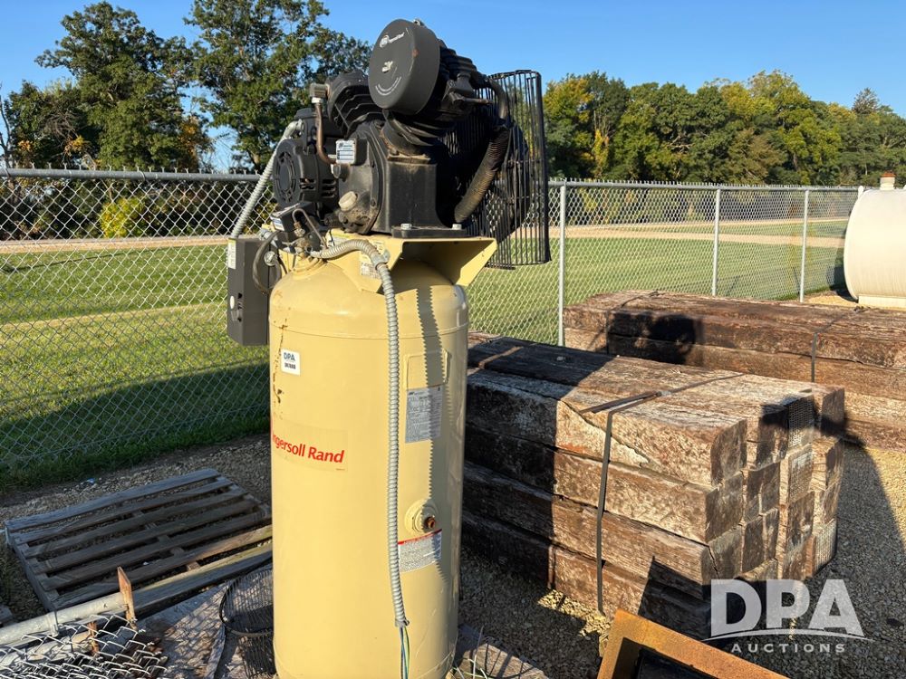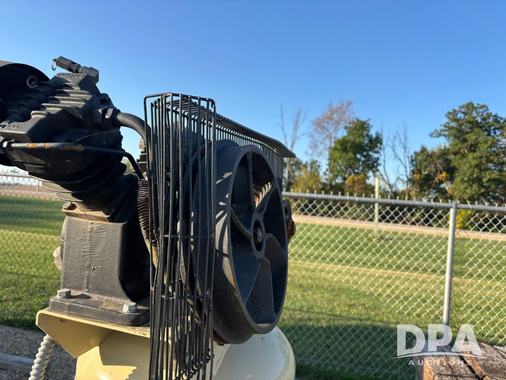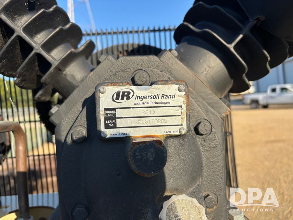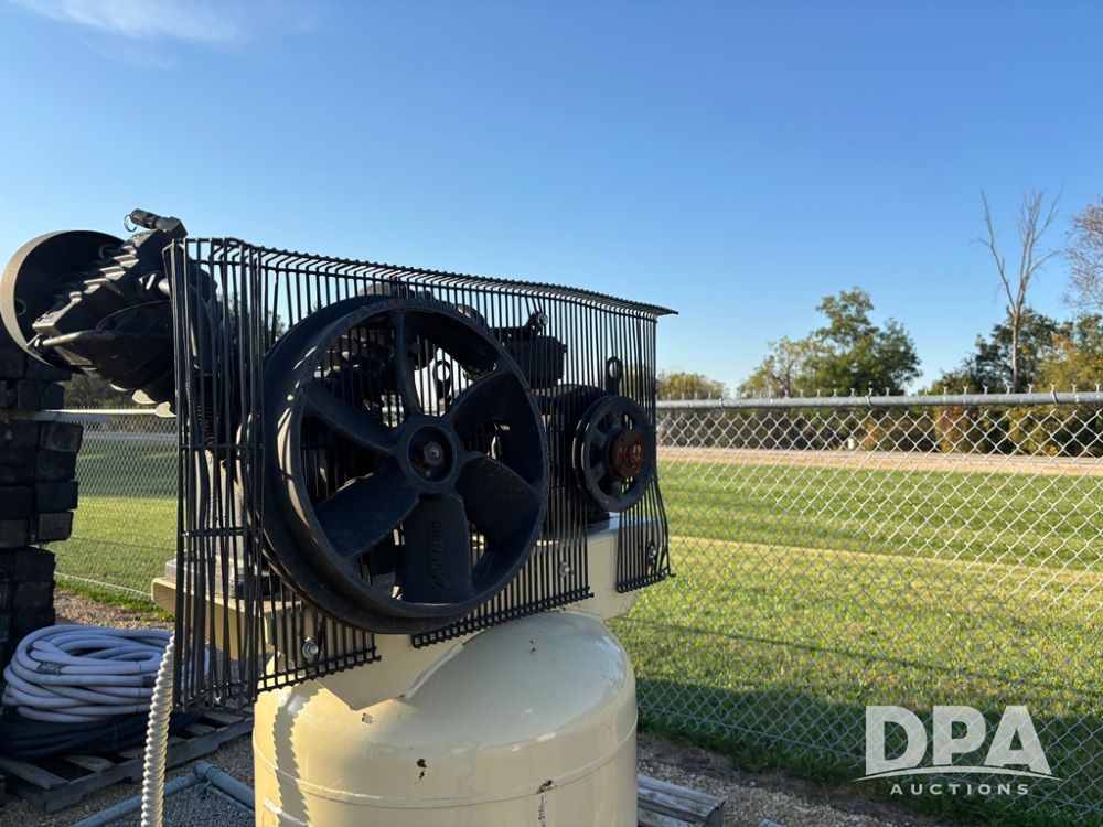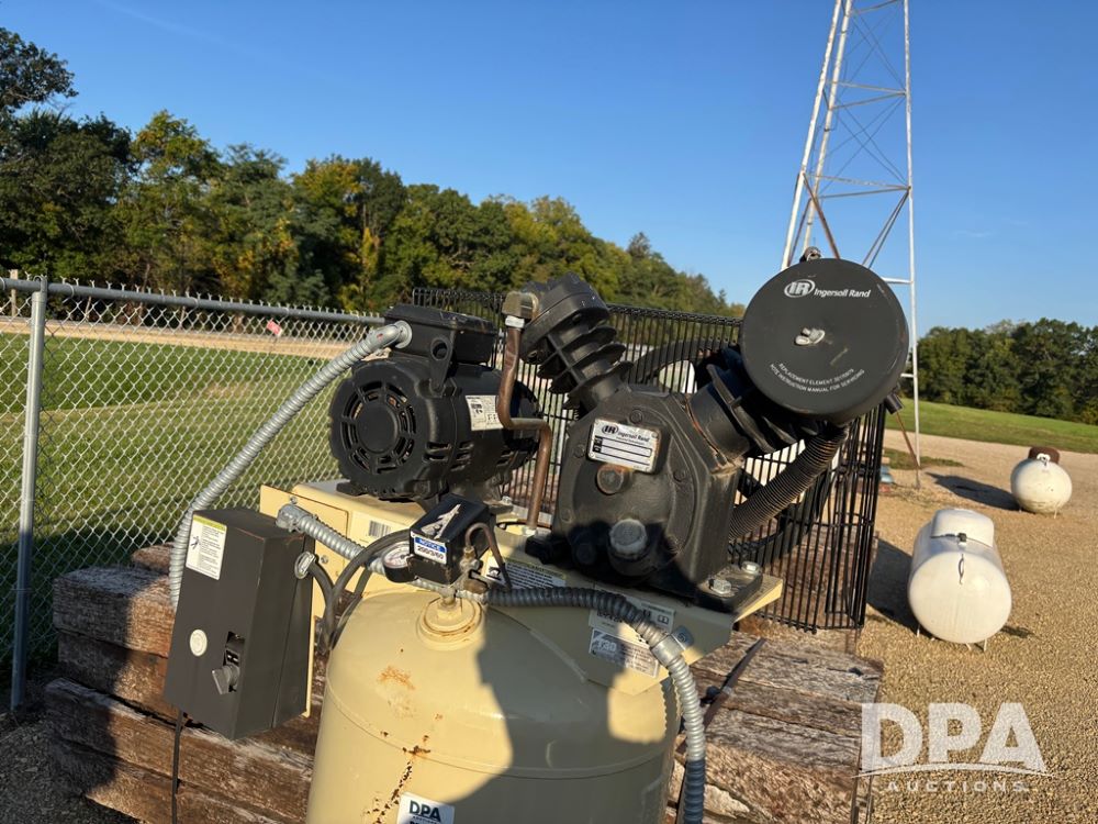 Ingersoll Compressor (DR7888), upright shop air compressor, model 2340 2 cylinder compressor, electric drive motor, 2 pallets fuel delivery hoses and 1'' air hoses.