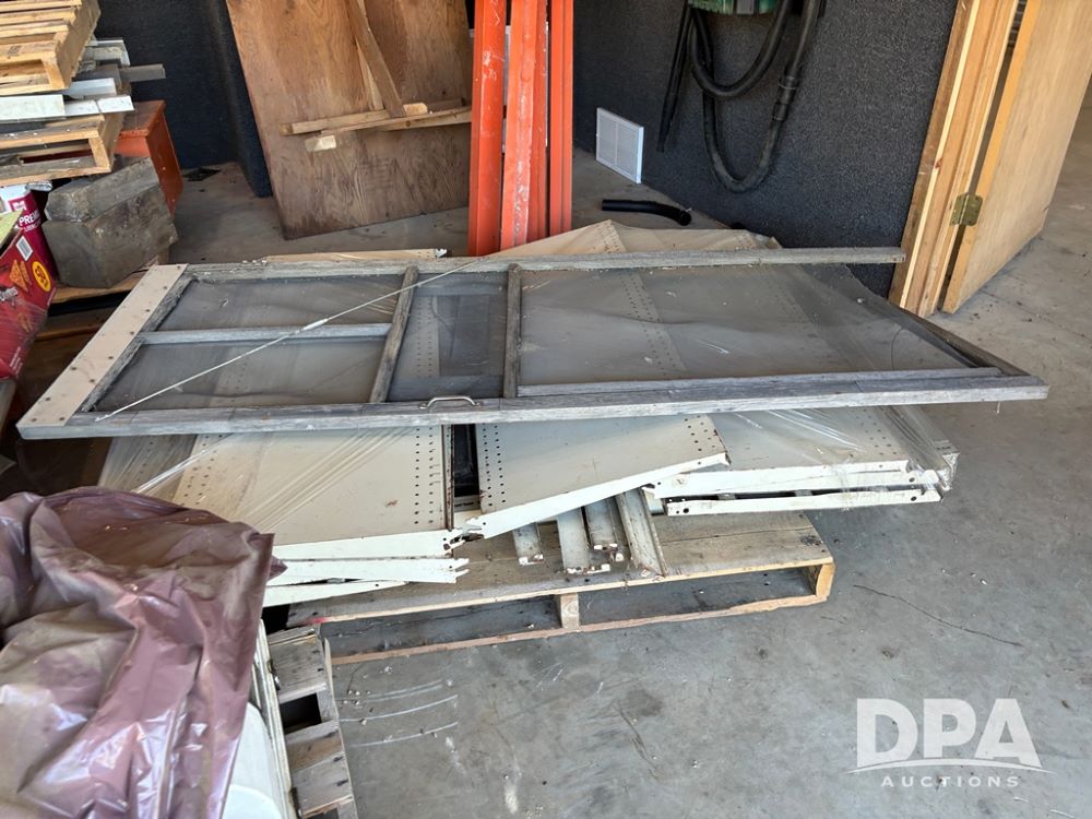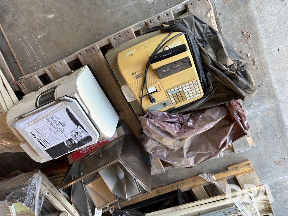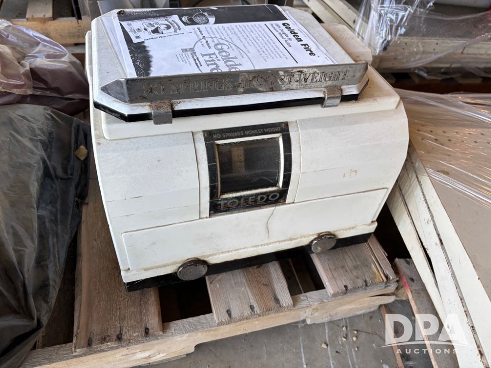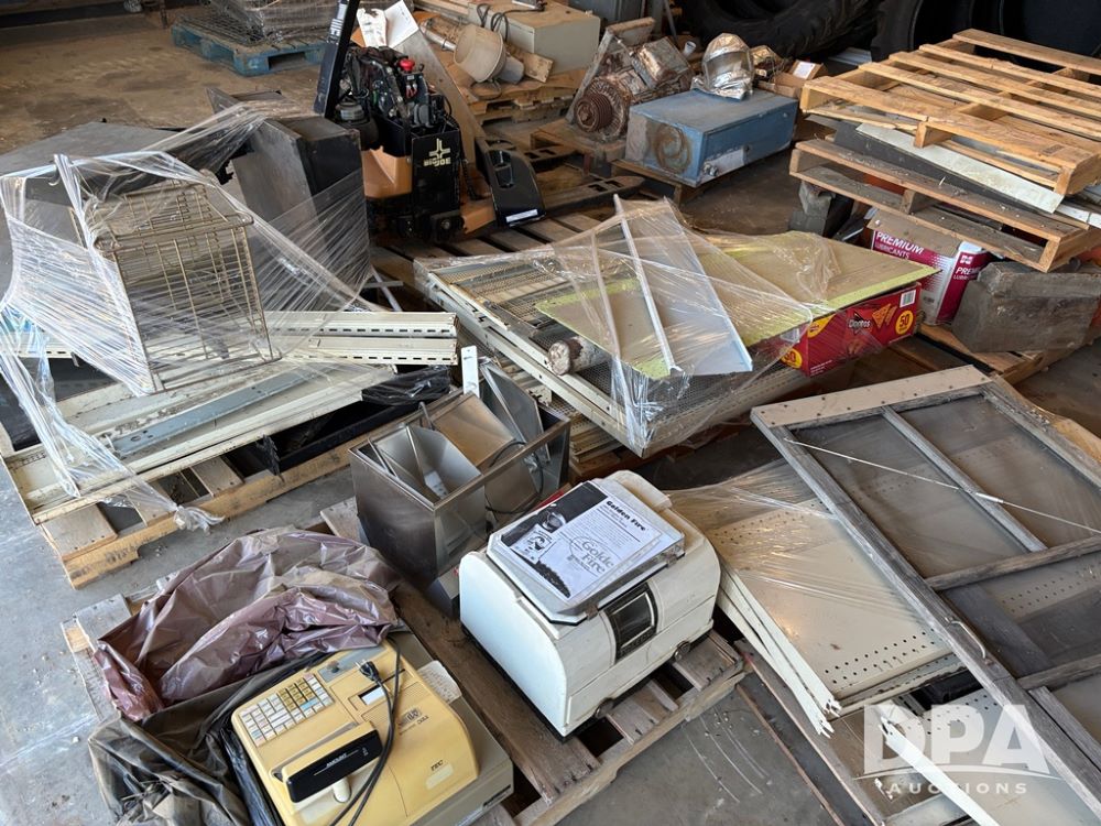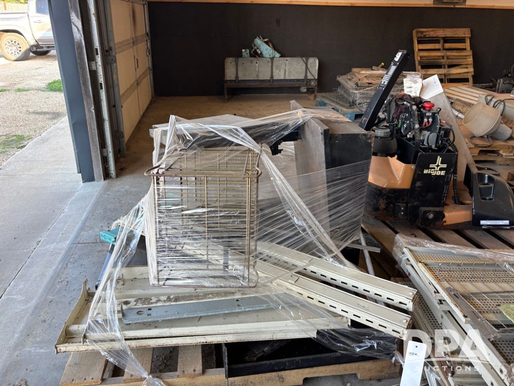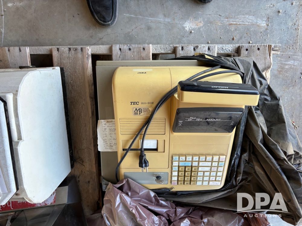 Steel Shelving (DR12427), (3) pallets of steel shelving, Toledo scale, and cash register.