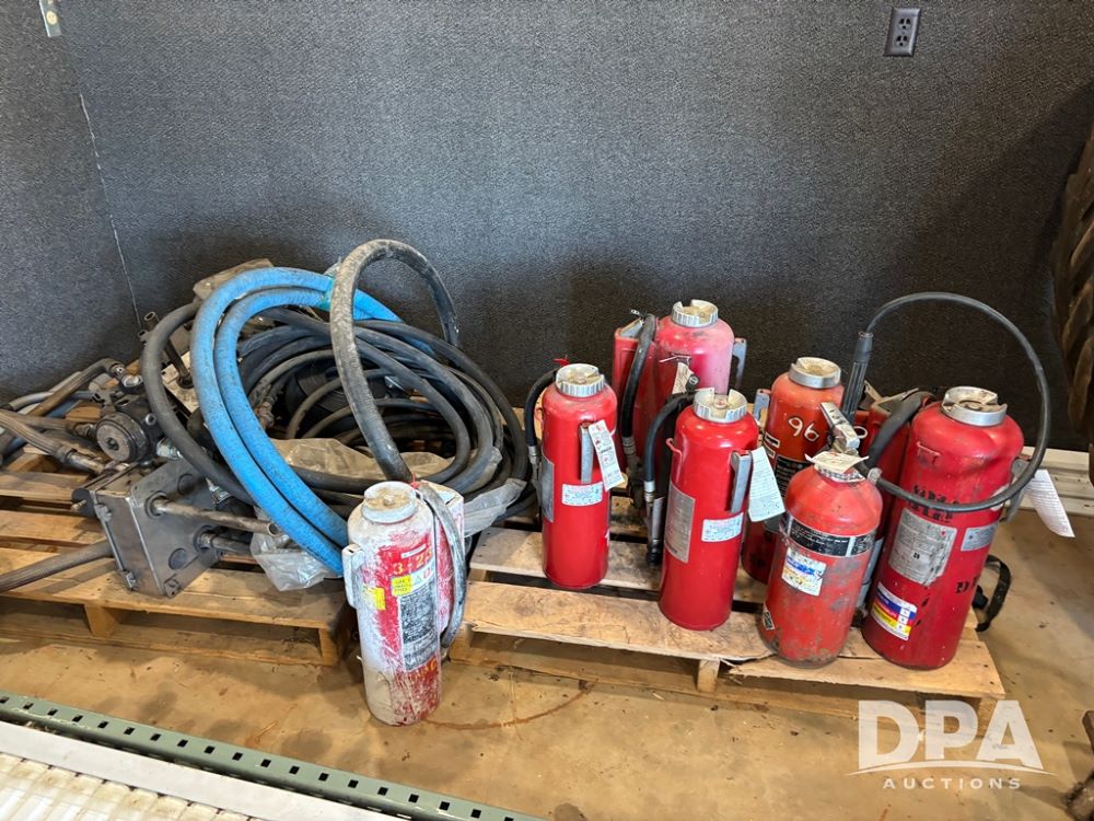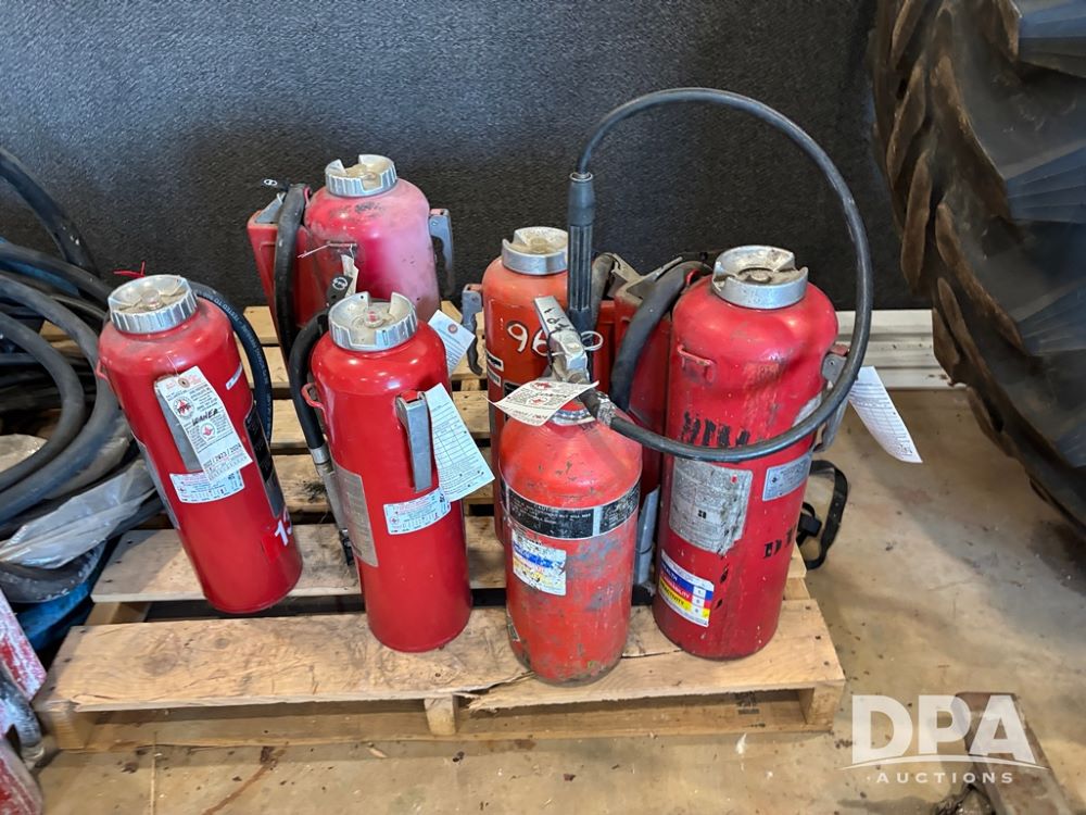 Fire Extinguishers (DR12428), pallet of fire extinguishers and fuel monitors.