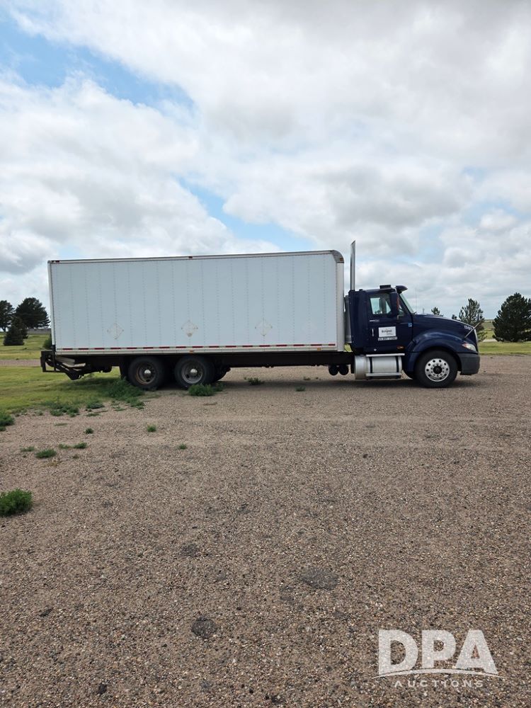 2010 International Pro Star (DR12436 Unit 13481), diesel engine, automatic transmission, tandem axle full screw, 24' van box, rear roll up door, light panel roof, Tommy lift gate, dual aluminum fuel tanks, cab heat/air conditioning, cruise control, odometer reads 960,671 miles.