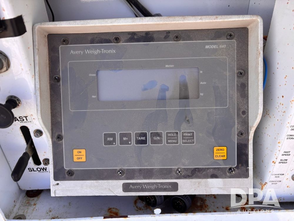 1993 Par-Kan Weigh Wagon (GP11351, Unit 98158), 1993 Par-Kan weigh wagon, side discharge conveyor, Vanguard 18 hp electric start gas engine, Avery Weigh-Tronix model 640 digital readout, shows 157 hours, tandem axle, ST235/80R16 tires.
