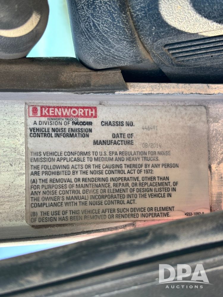 2015 Kenworth T4 Dry Floater (GP11594, Unit 60-01), Paccar diesel engine, Allison automatic transmission, air conditioning, heat, Am/Fm CD radio, cruise control, engine brake, power windows & locks, Good Year 48x31.00R20 front tires, Alliance Agri-Star 1000/50R25 rear tires.