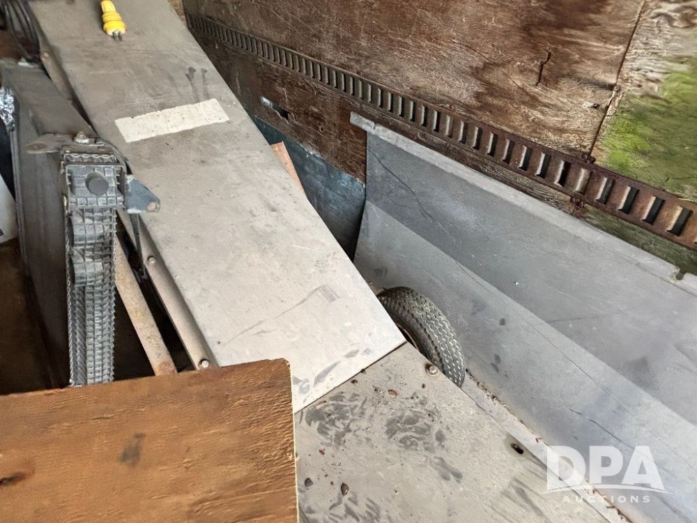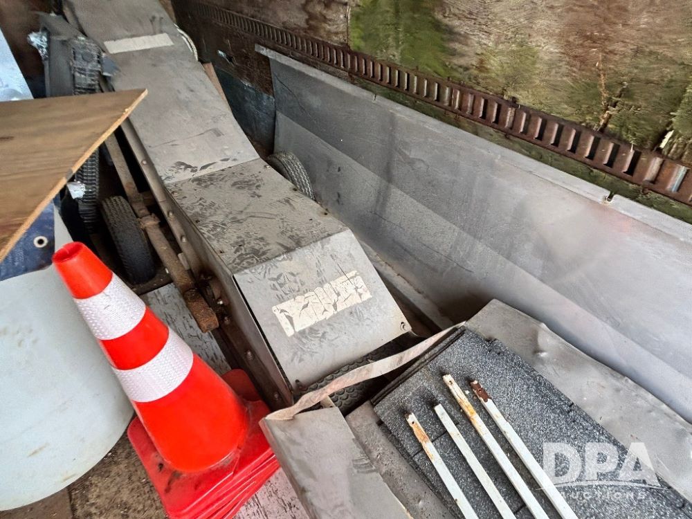 Kraus Undercar Belt Conveyor (GP11599), Kraus 8x8x16D11 stainless steel undercar conveyor, Toshiba electric motor, cord, portable.
